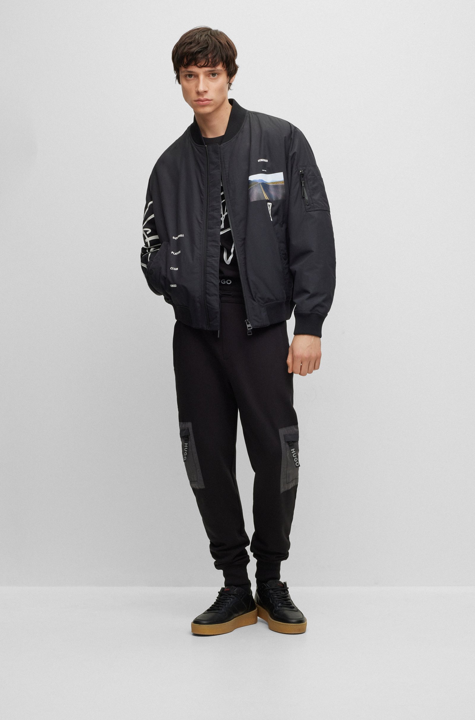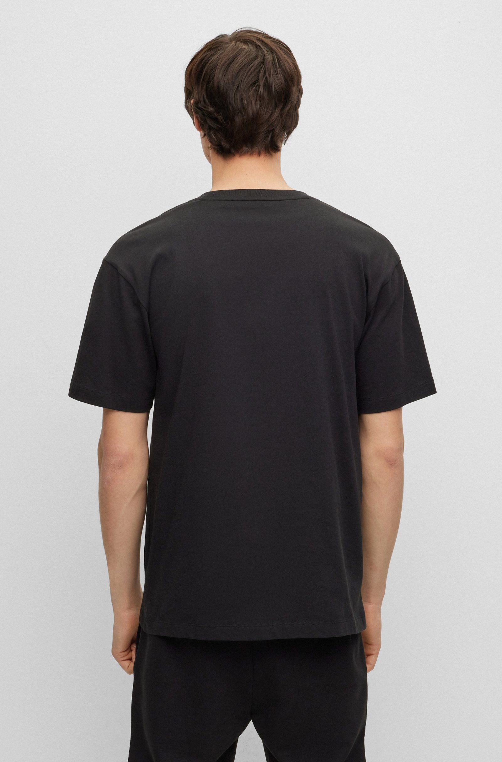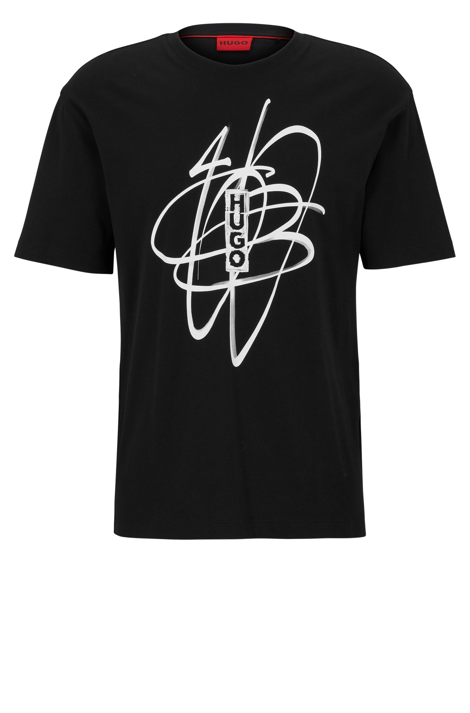 Gerade geschnittenes HUGO Herren-T-Shirt aus Single Jersey mit Logo im Marker-Stil und Graffiti-Artwork für einen Streetwear-Look.