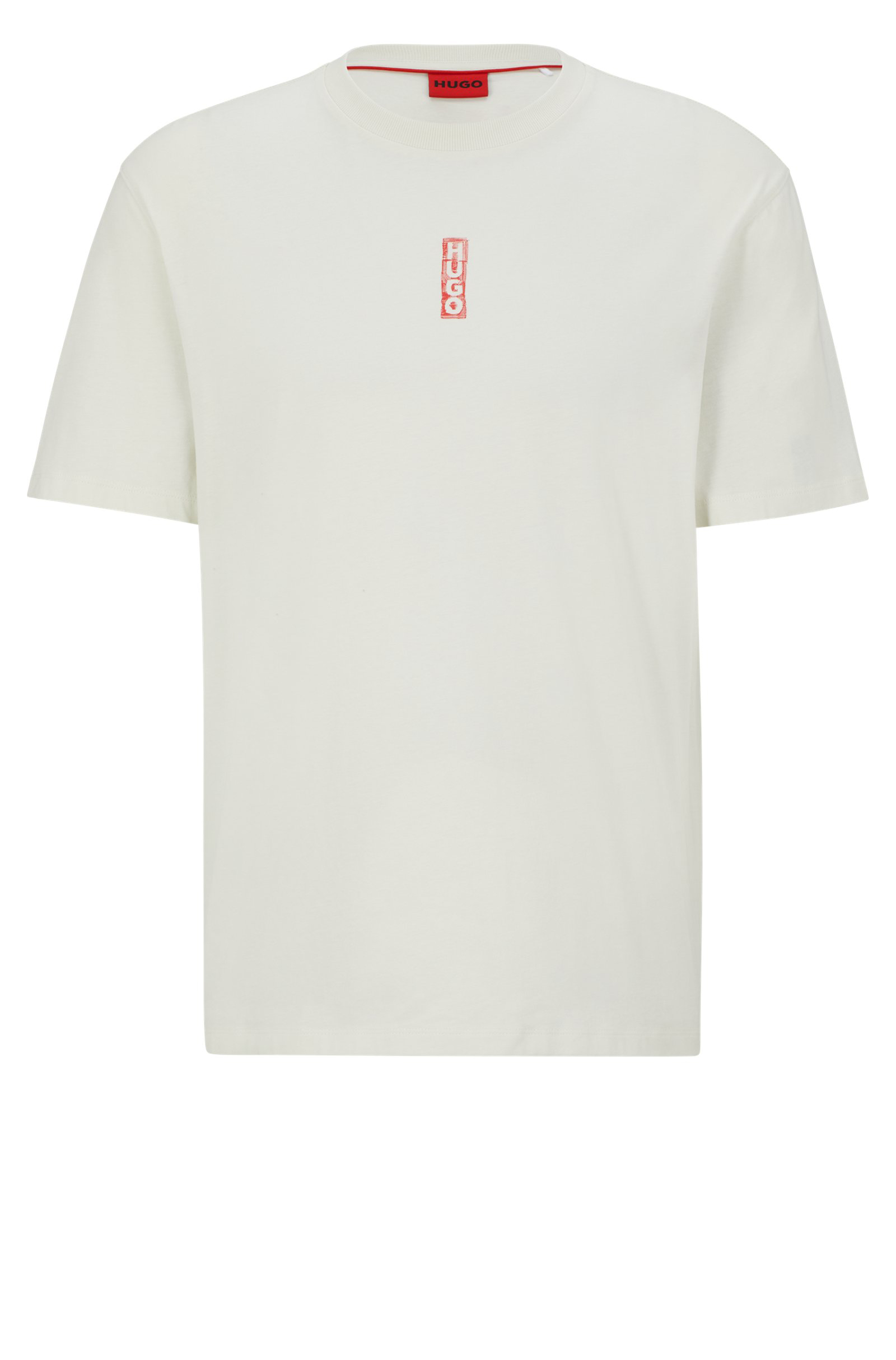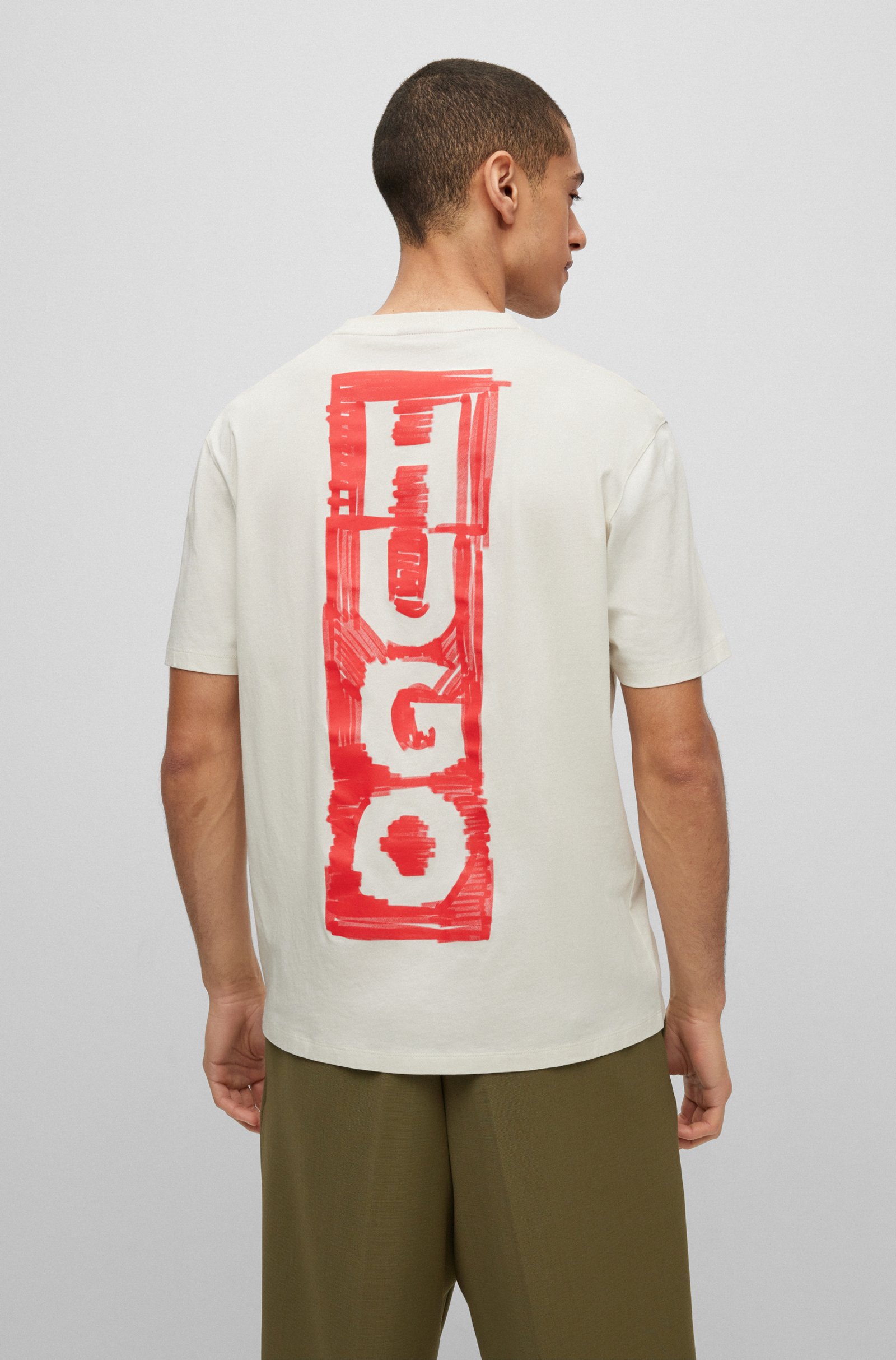 Zeitgemäßes HUGO T-Shirt aus Single Jersey mit lockerer Passform und Logo-Details im Marker-Stil auf Vorder- und Rückseite.