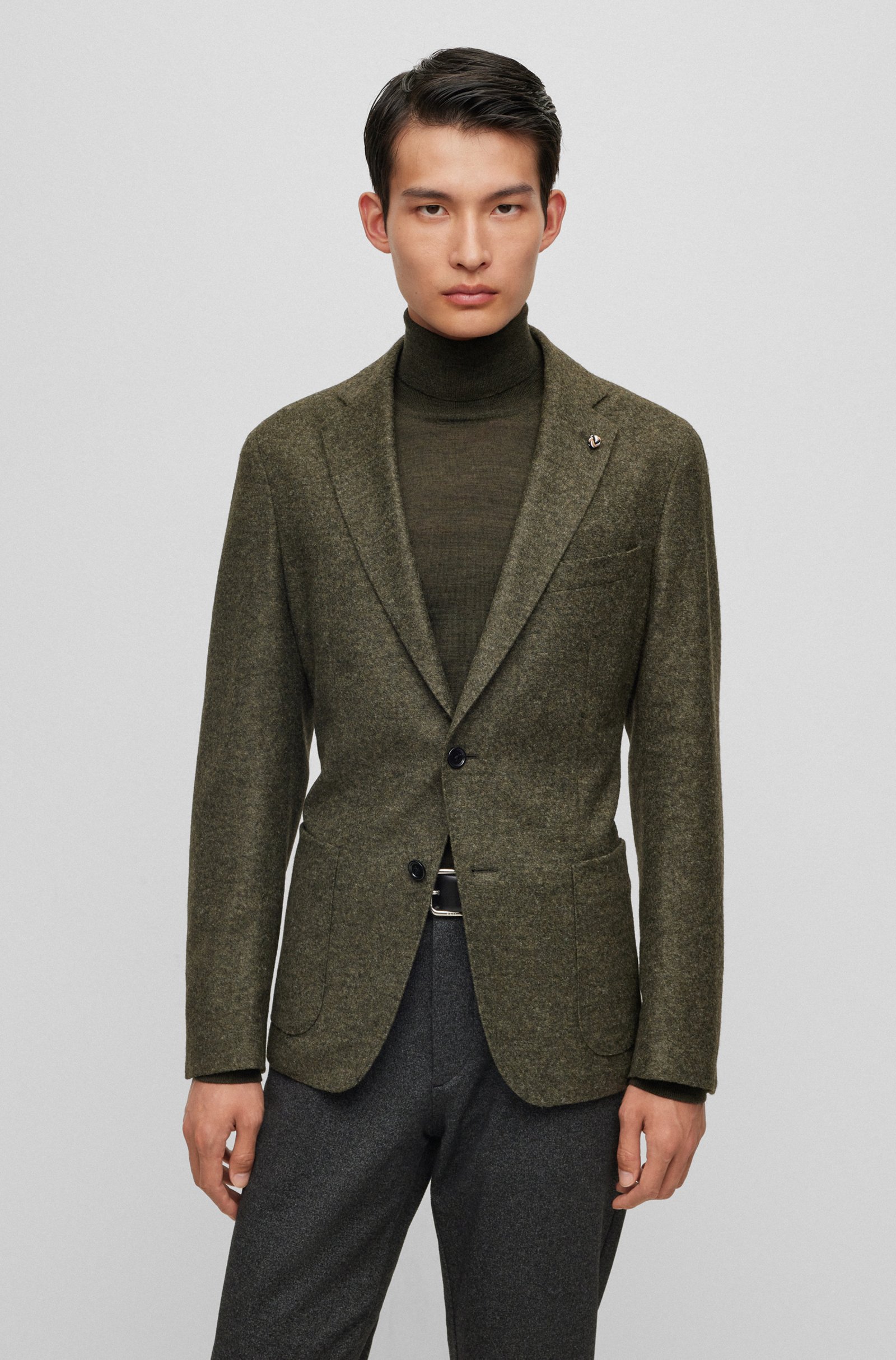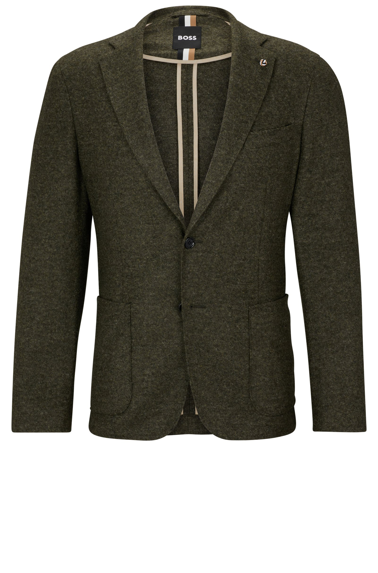 Schmal geschnittener BOSS Herren-Einreiher aus einem soften Material-Mix mit Schurwoll-Anteil. Aufgesetzte Taschen und ein fallendes Revers runden den Style ab.