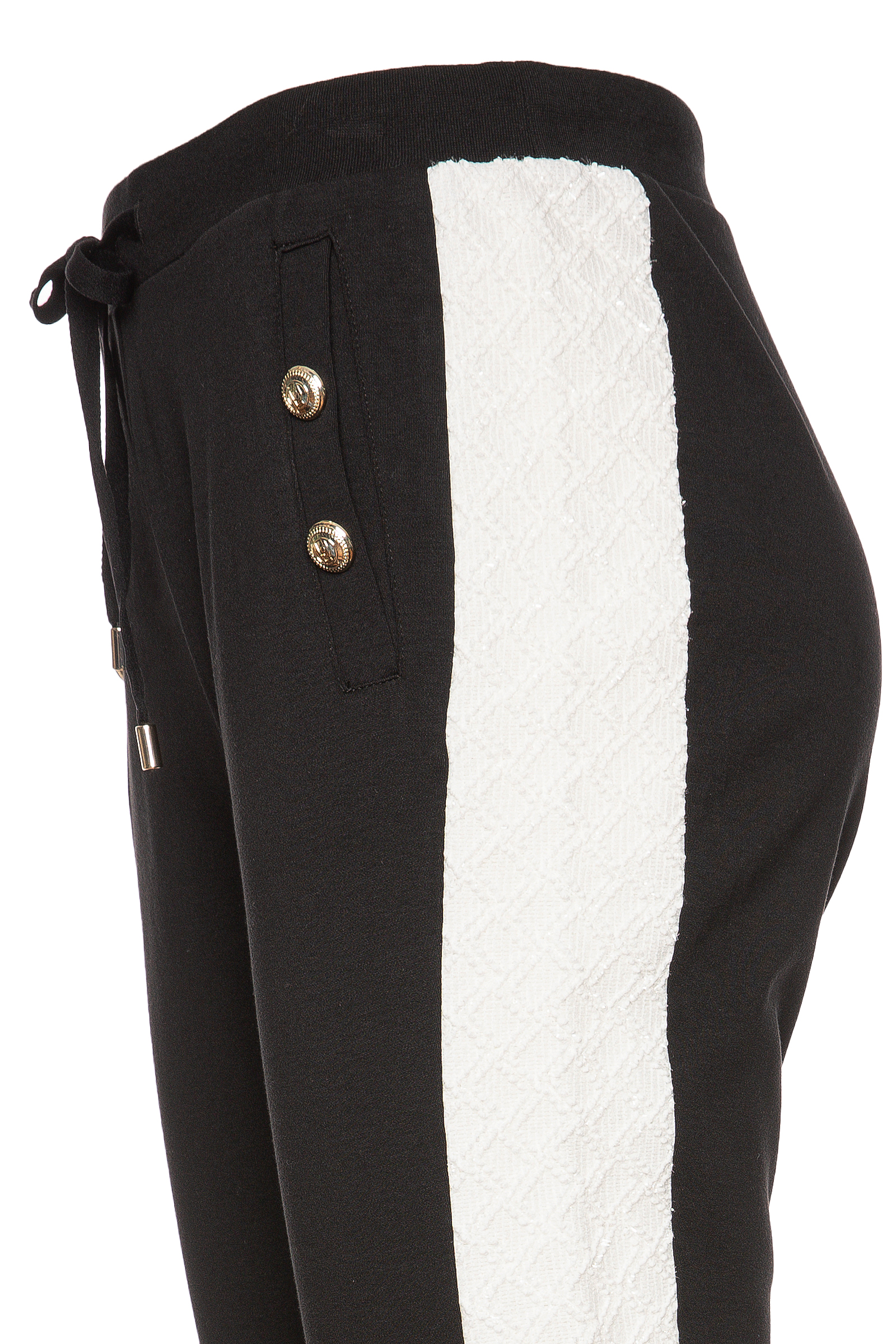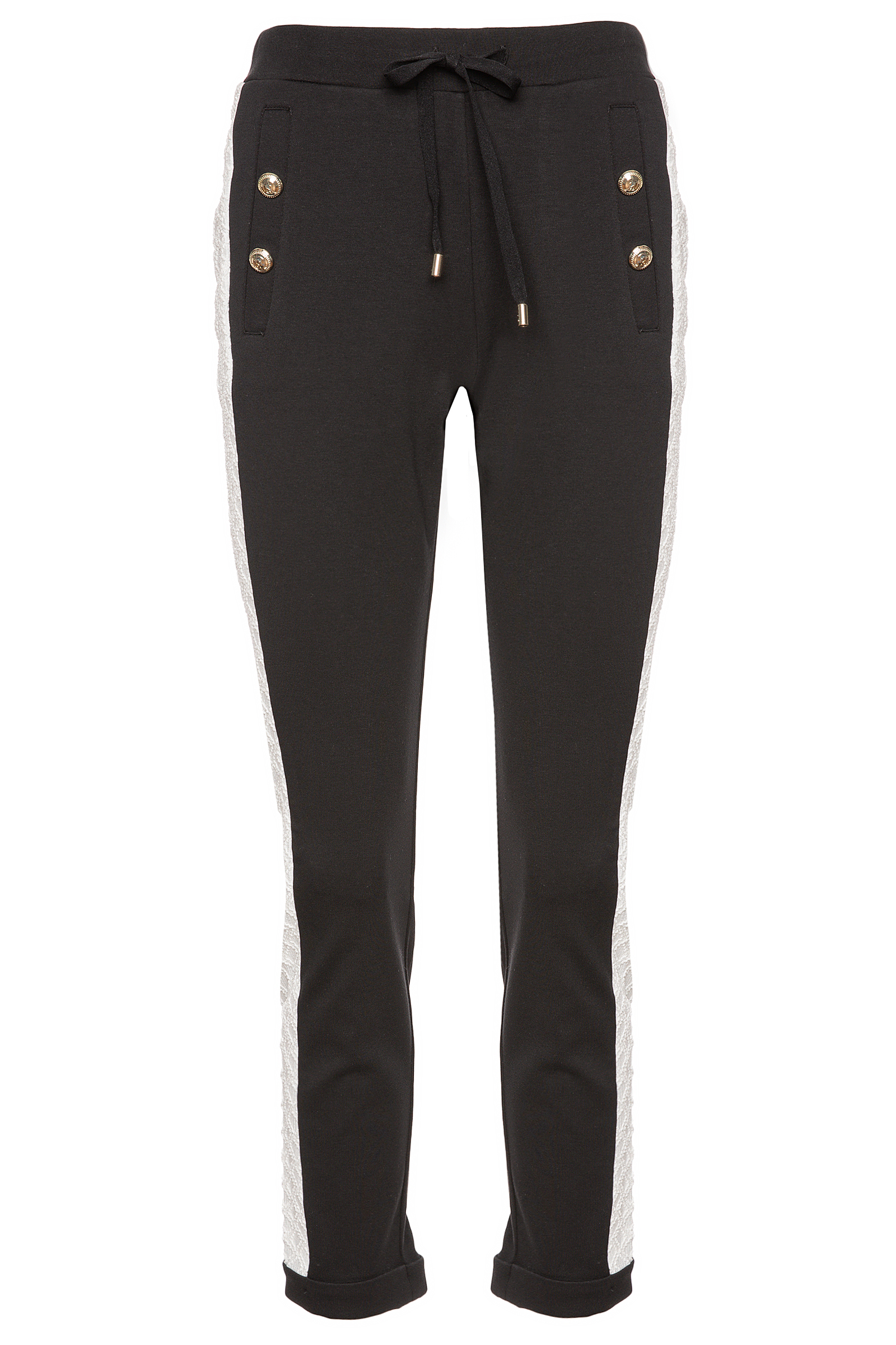 • Seitliche Leistentaschen mit goldfarbenen Zierknöpfen