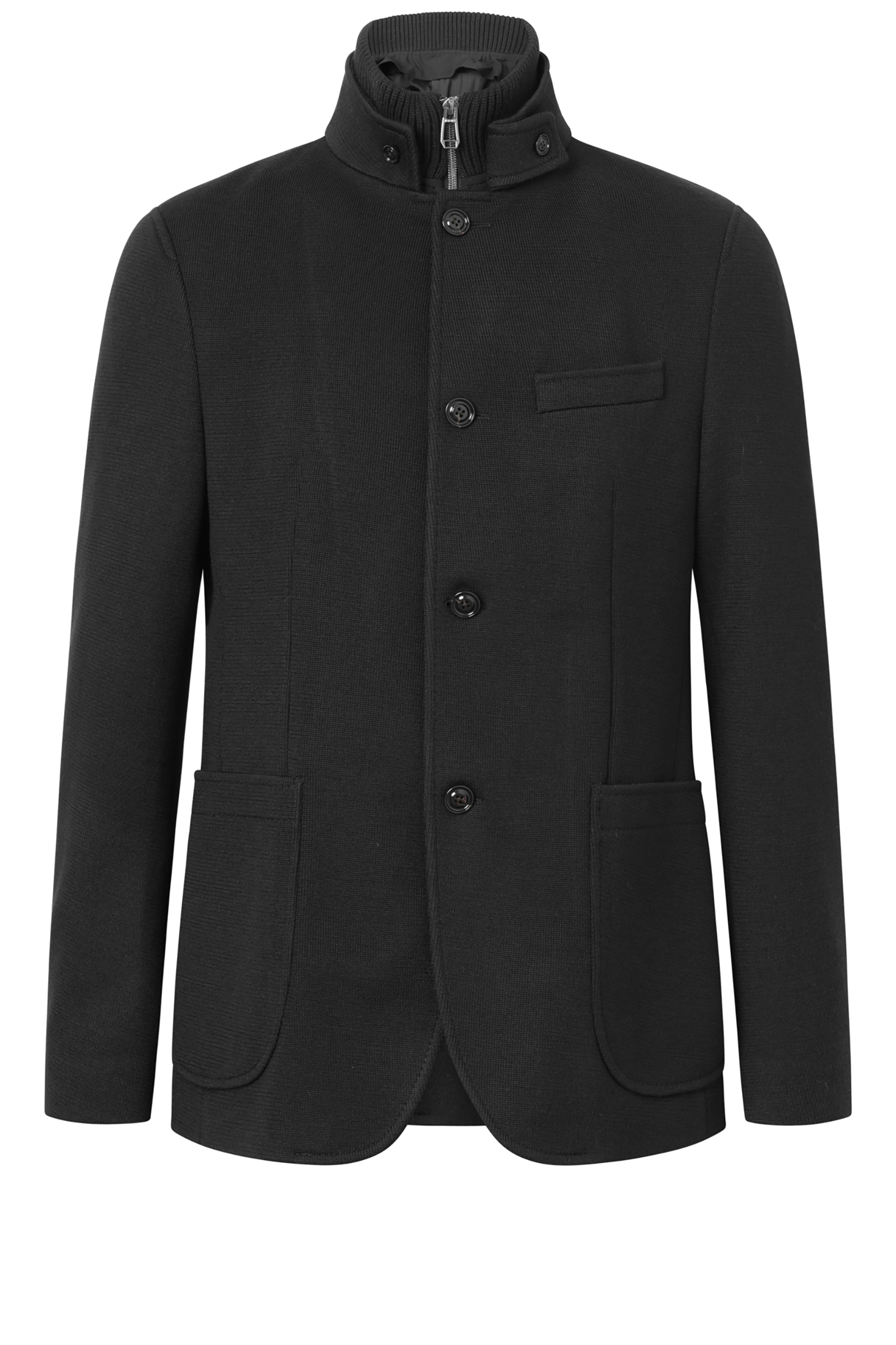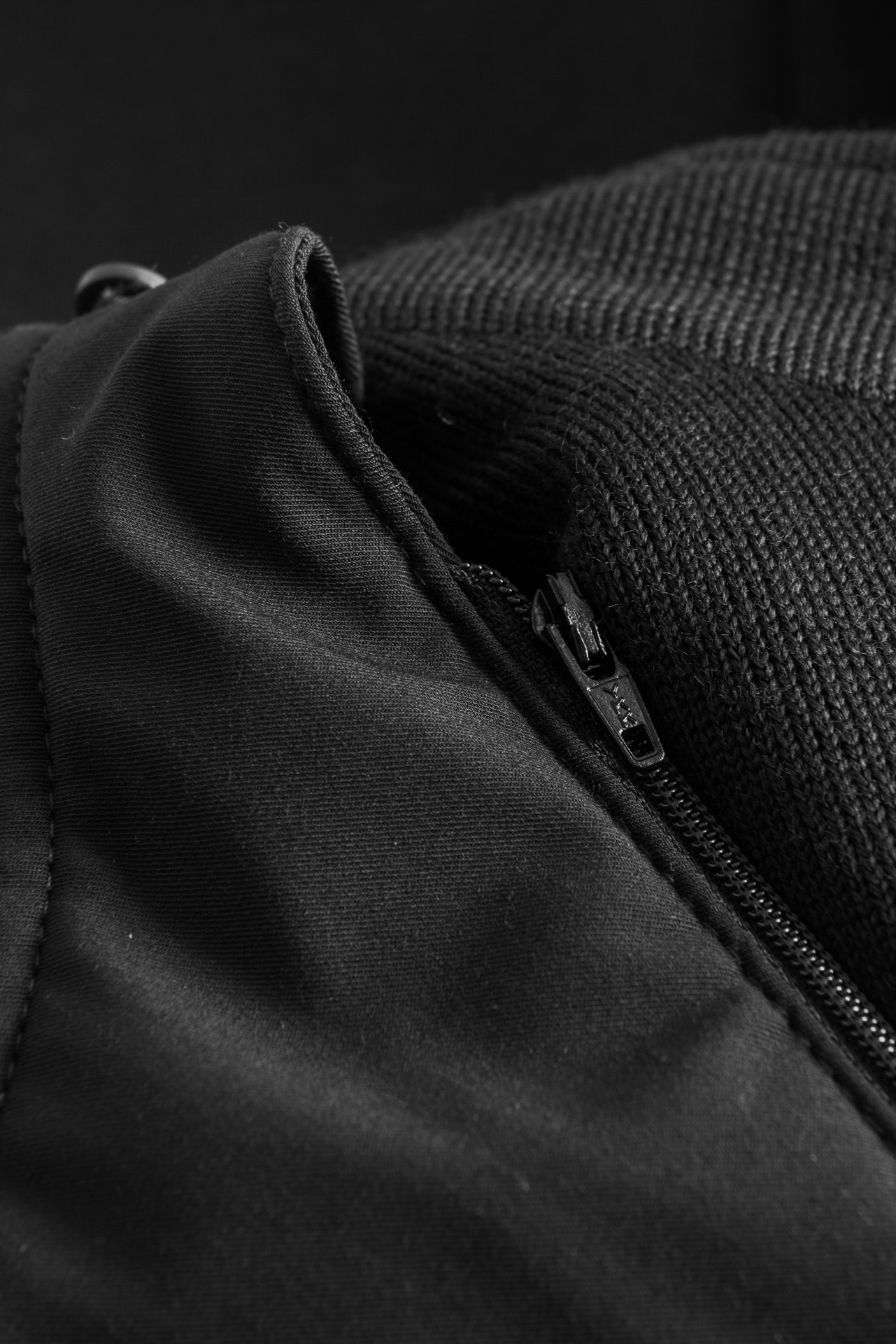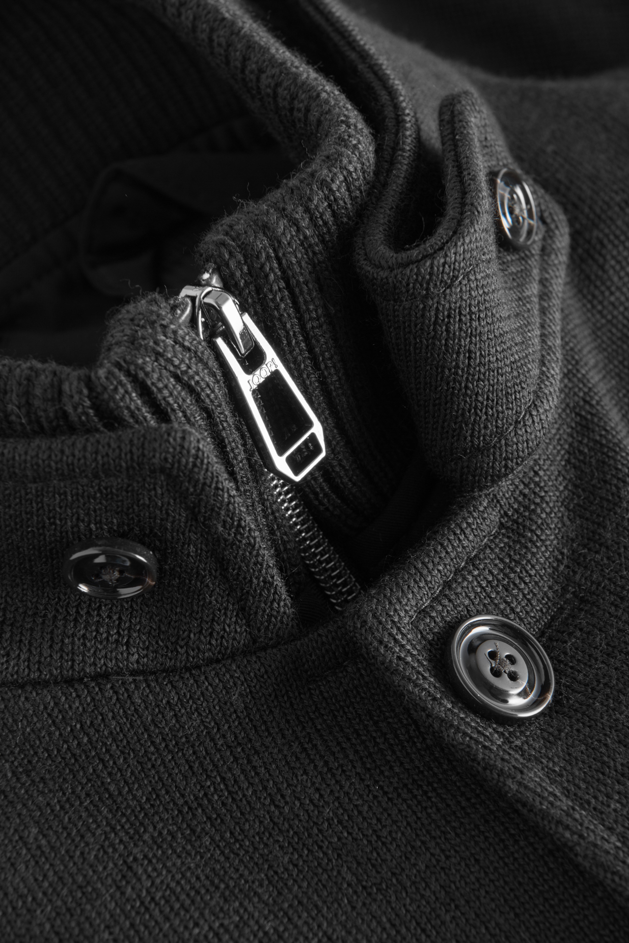 • Wattierter Einsatz mit Stehkragen aus Rippstrick innen