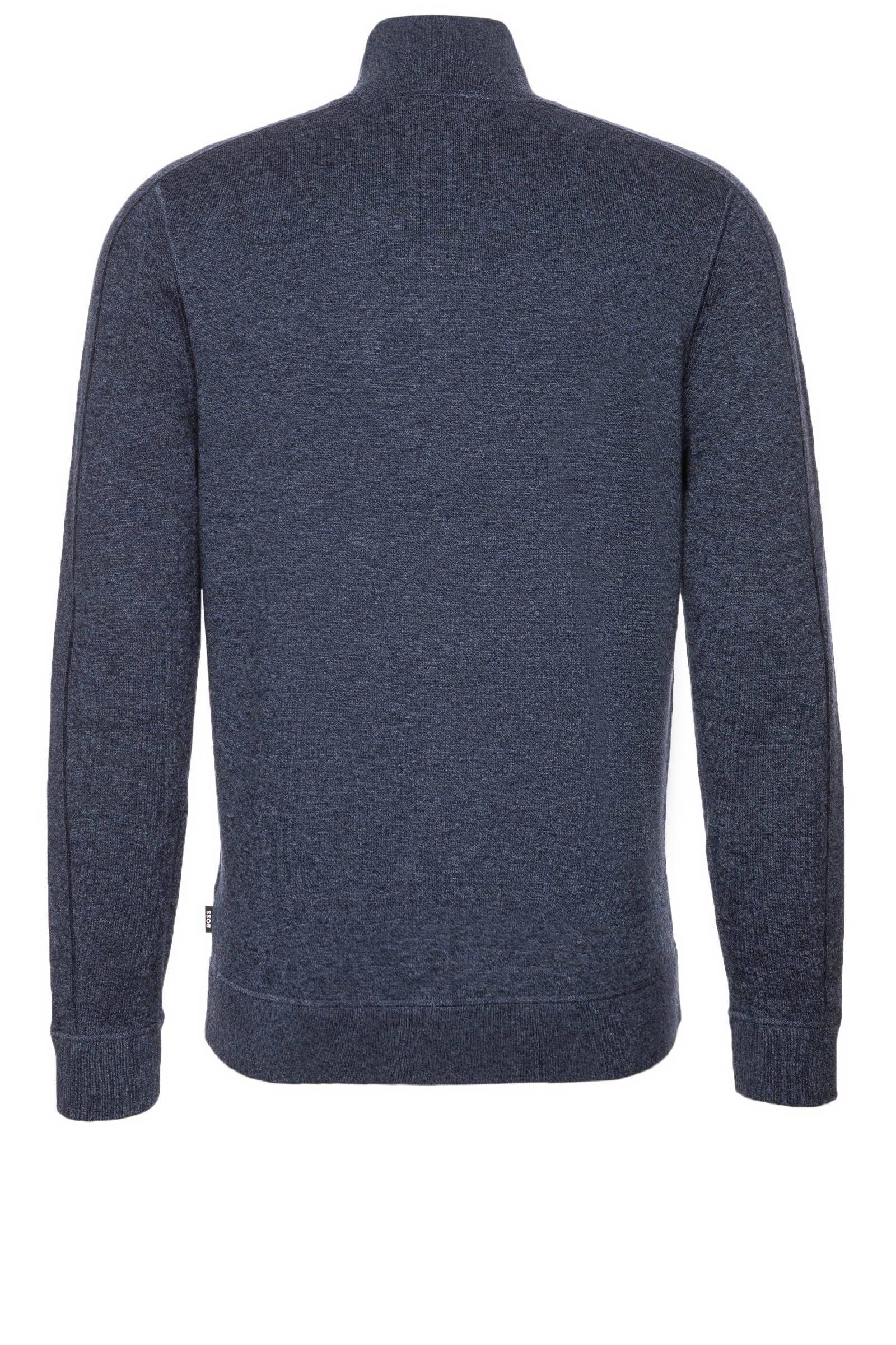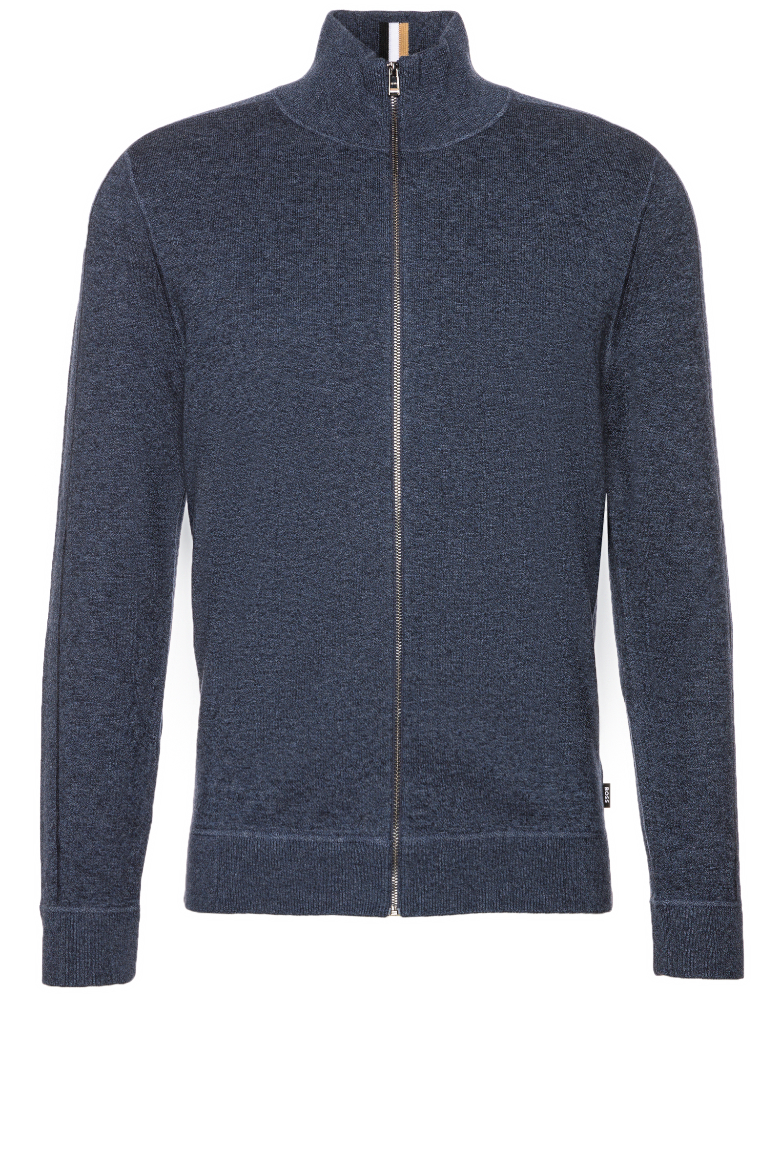 Gerade geschnittene BOSS Herren-Strickjacke aus einem Baumwoll-Mix mit Schurwoll-Anteil und Mouliné-Struktur. Ein Reißverschluss rundet den Cardigan ab.