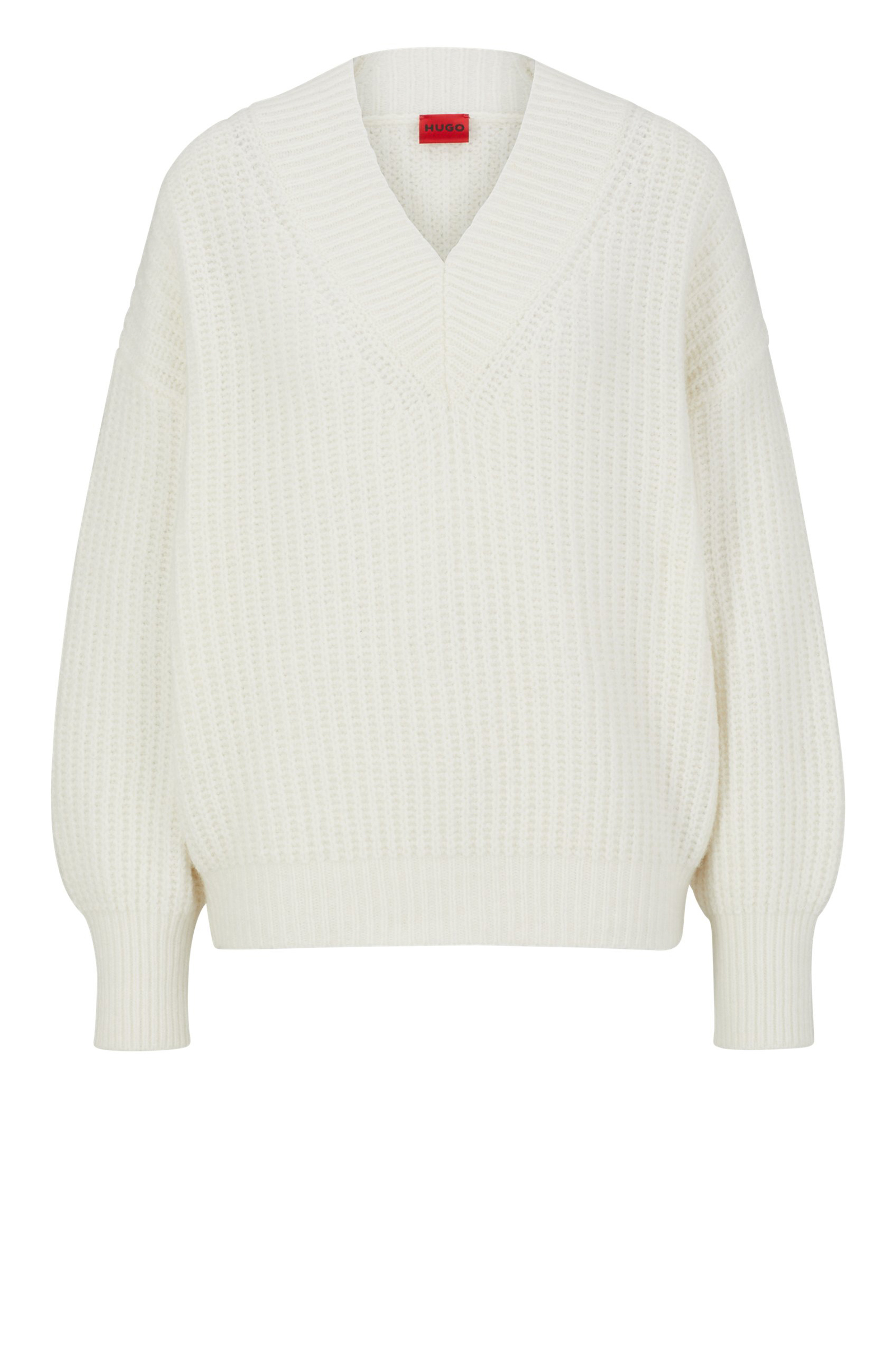 HUGO Damen-Pullover mit Oversize-Passform, V-Ausschnitt und Perlfangmuster.