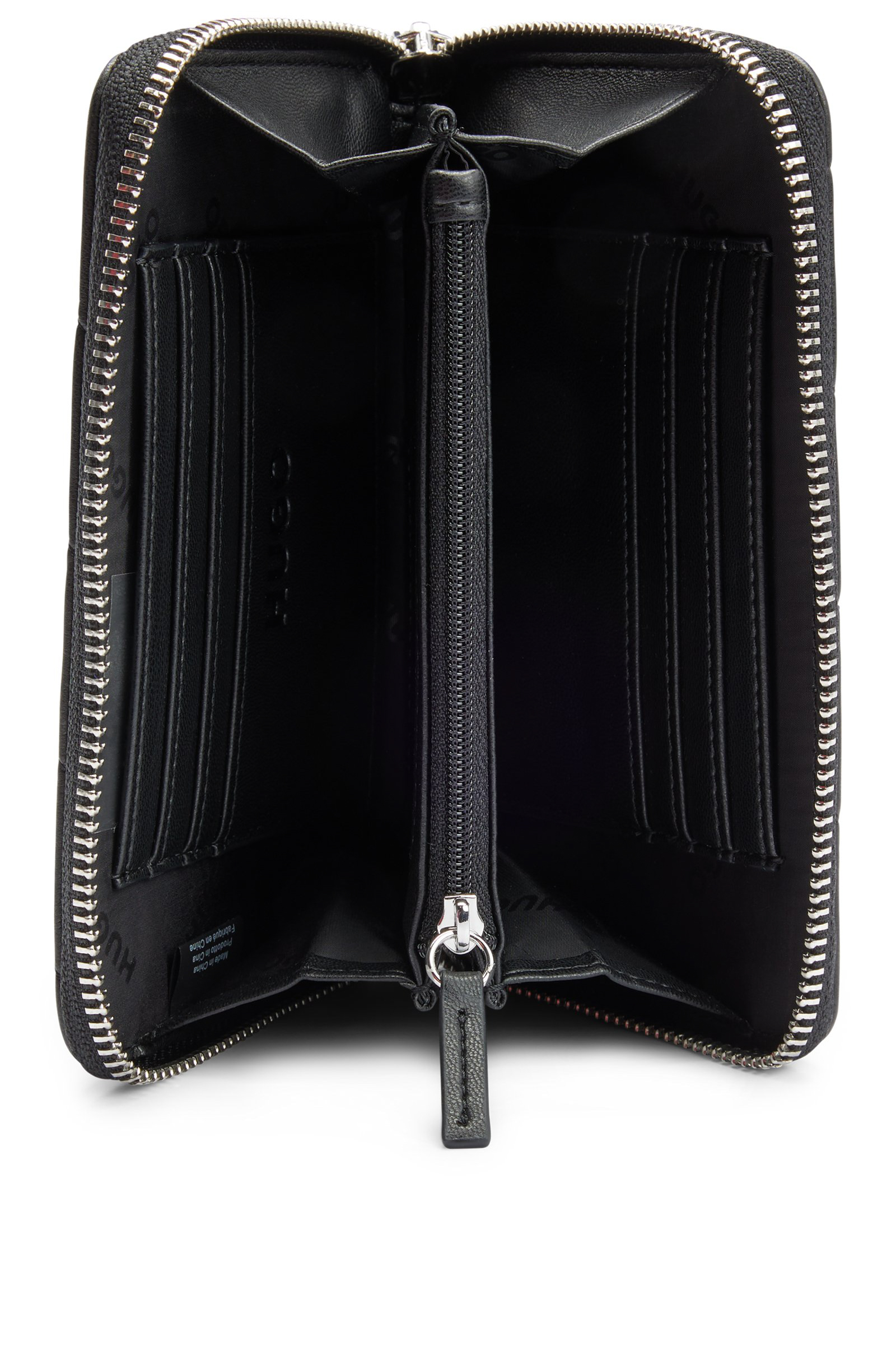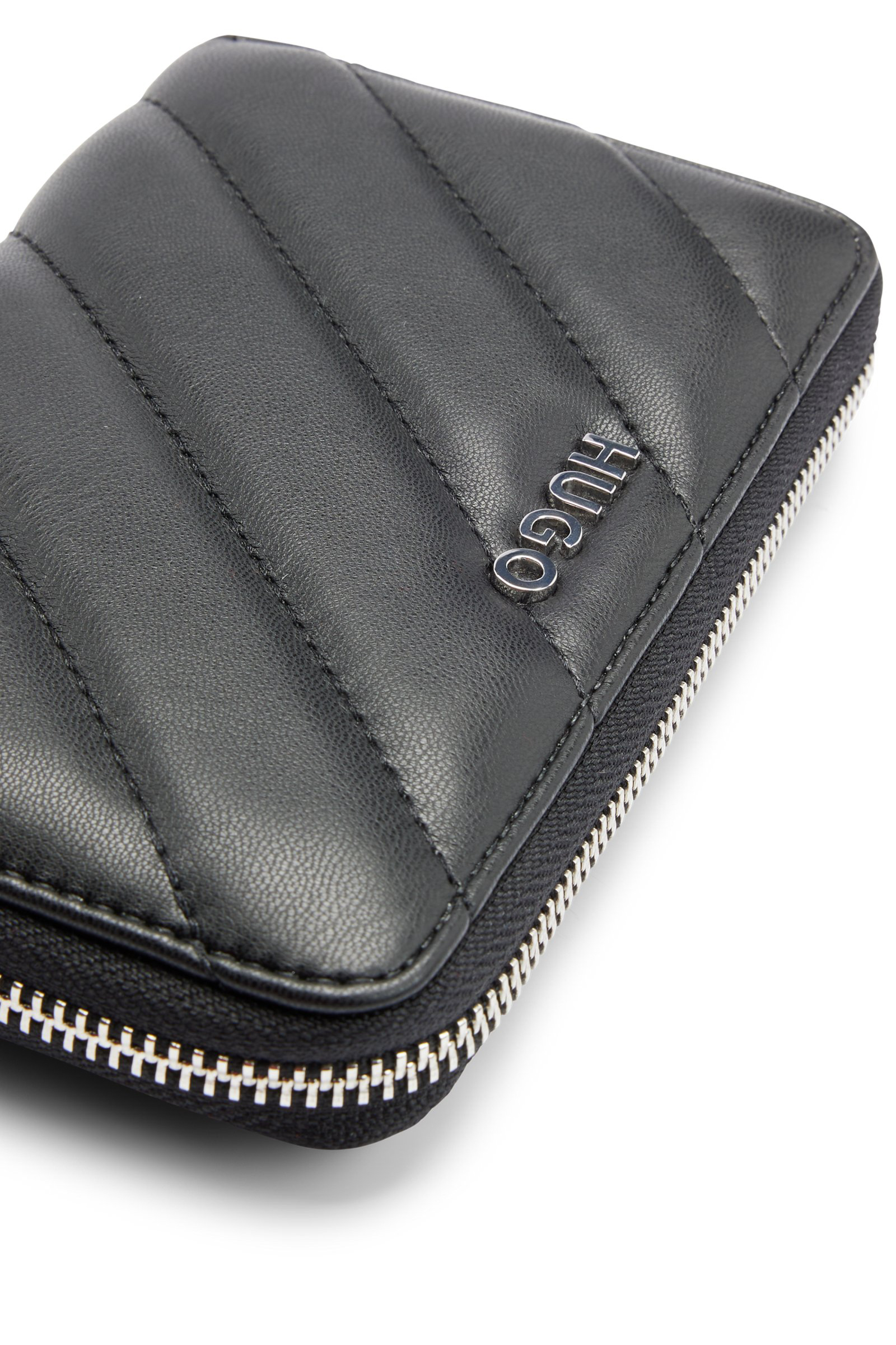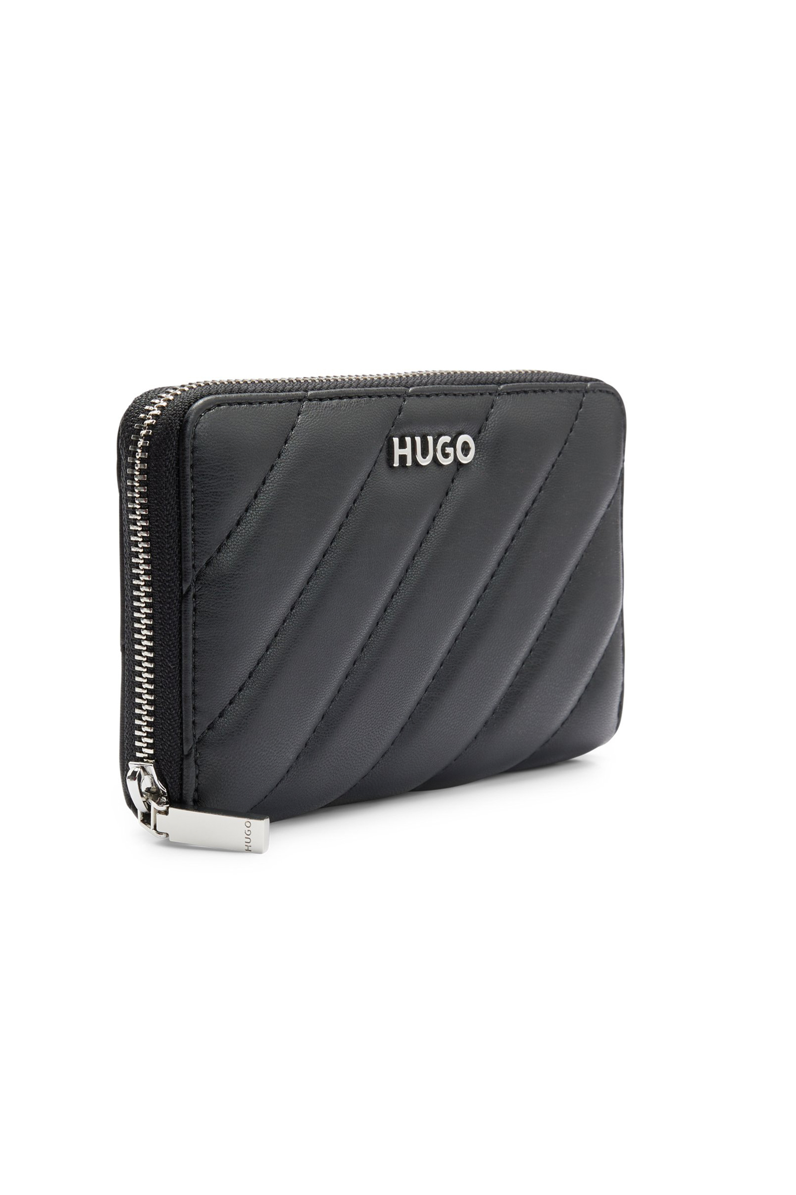 HUGO Geldbörse aus gestepptem, synthetisch beschichtetem Textil mit Reißverschluss und poliertem Logo-Schriftzug.