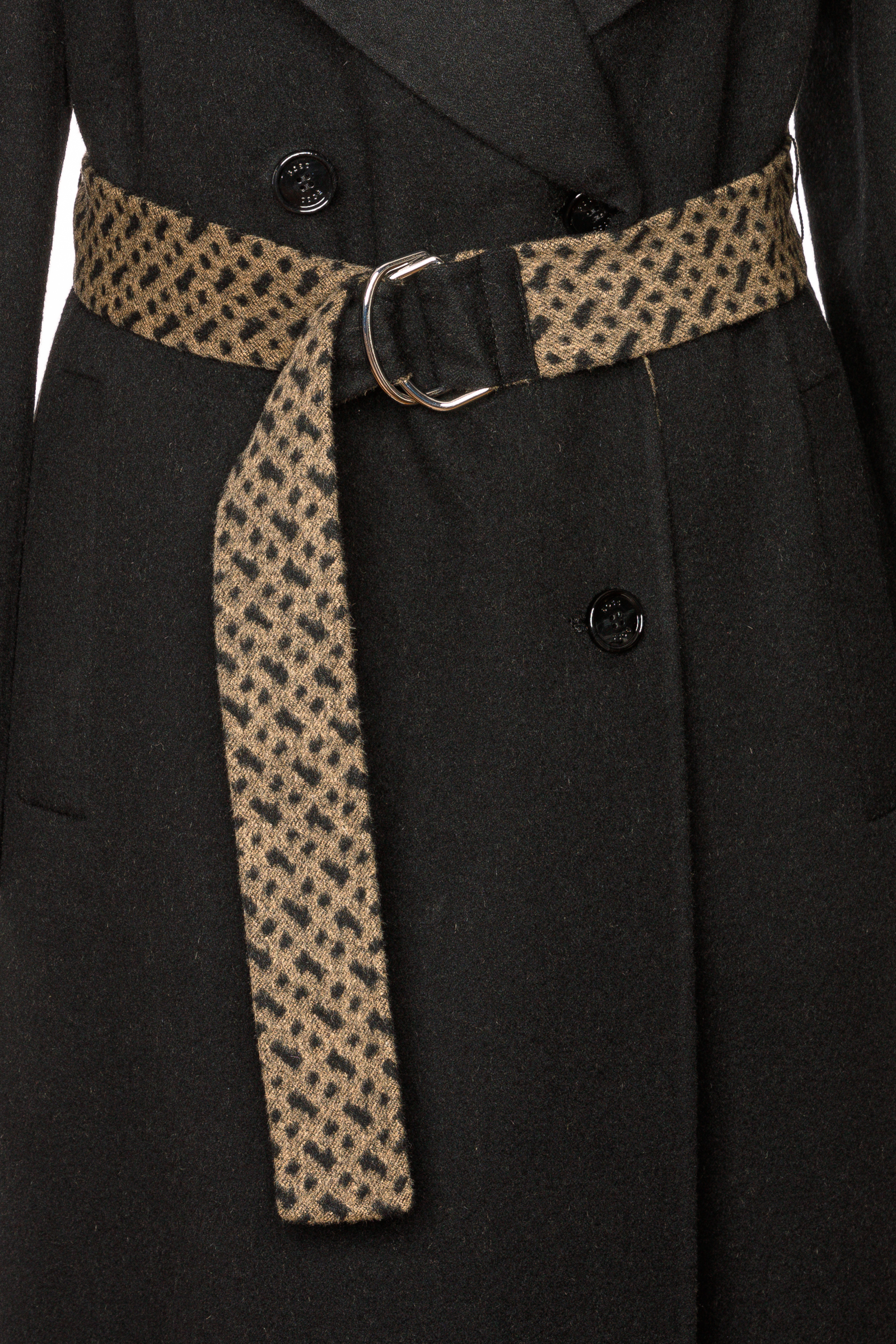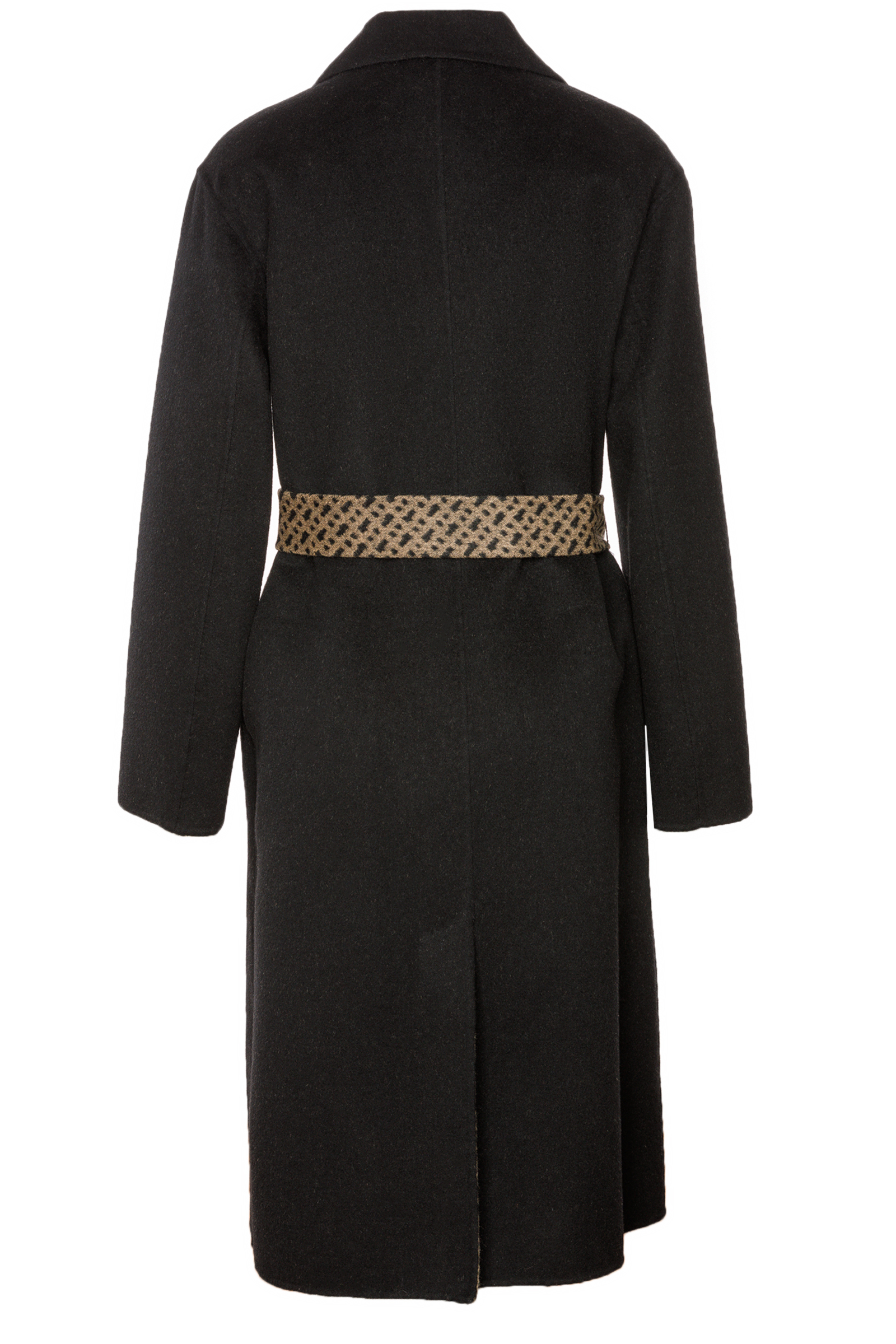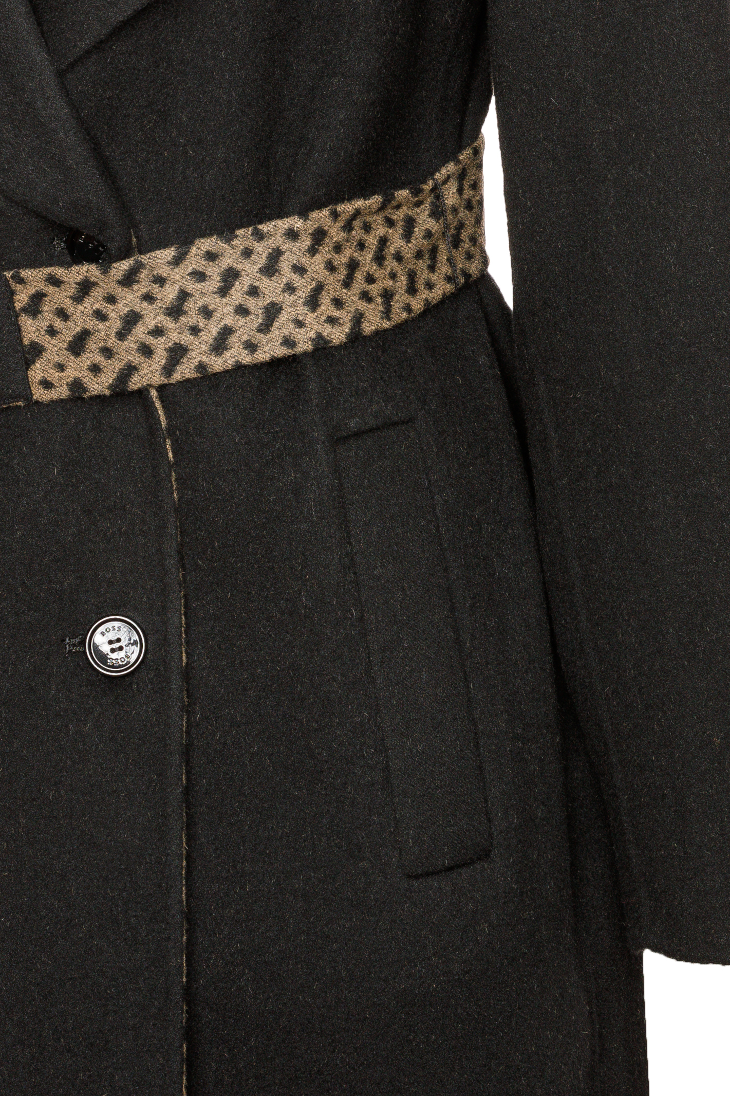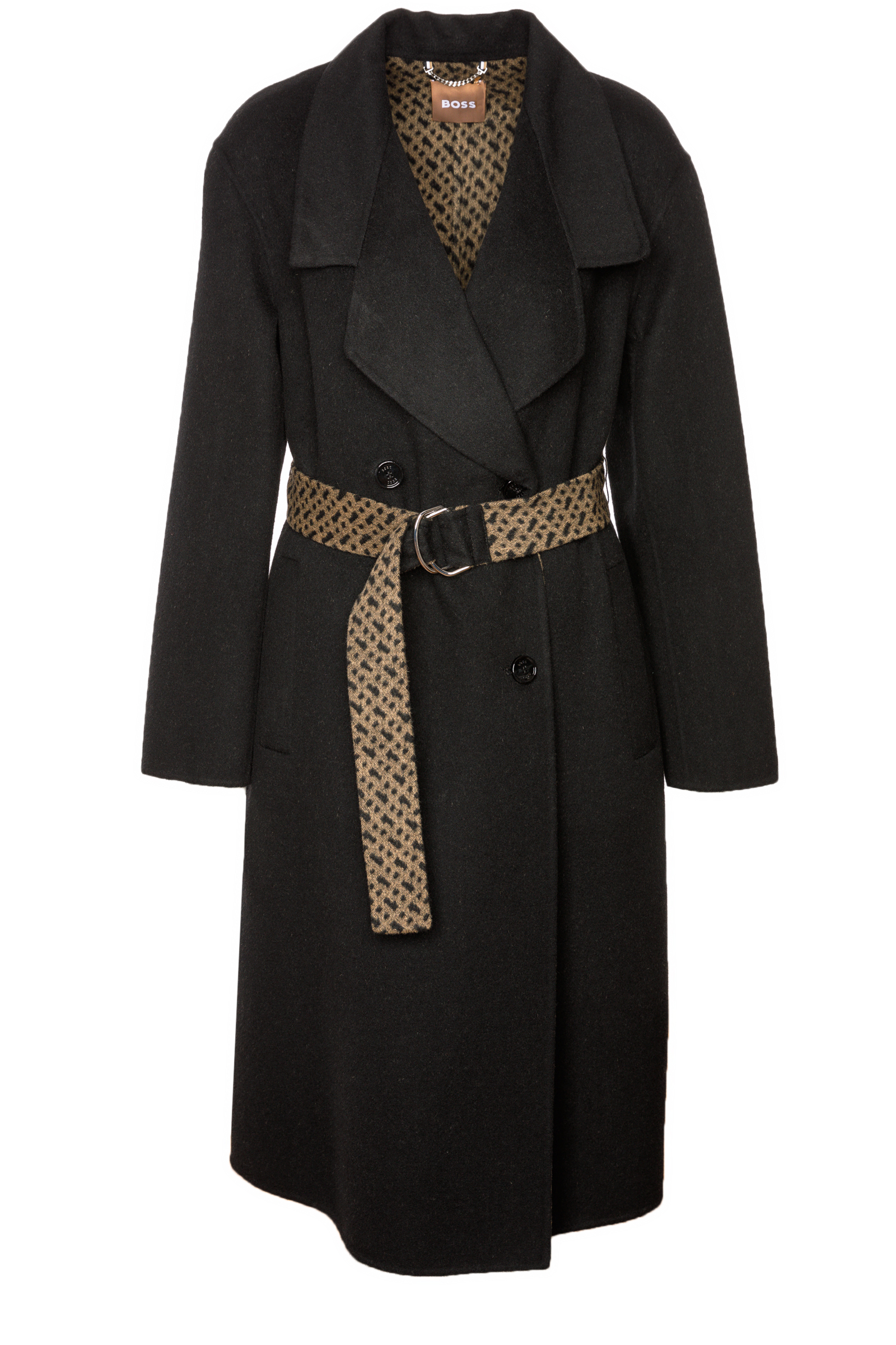 Langer BOSS Damen-Mantel aus einem Woll-Mix mit gerader Passform, der mit einem Gürtel mit Jacquard-Monogrammen auf der Rückseite versehen ist.