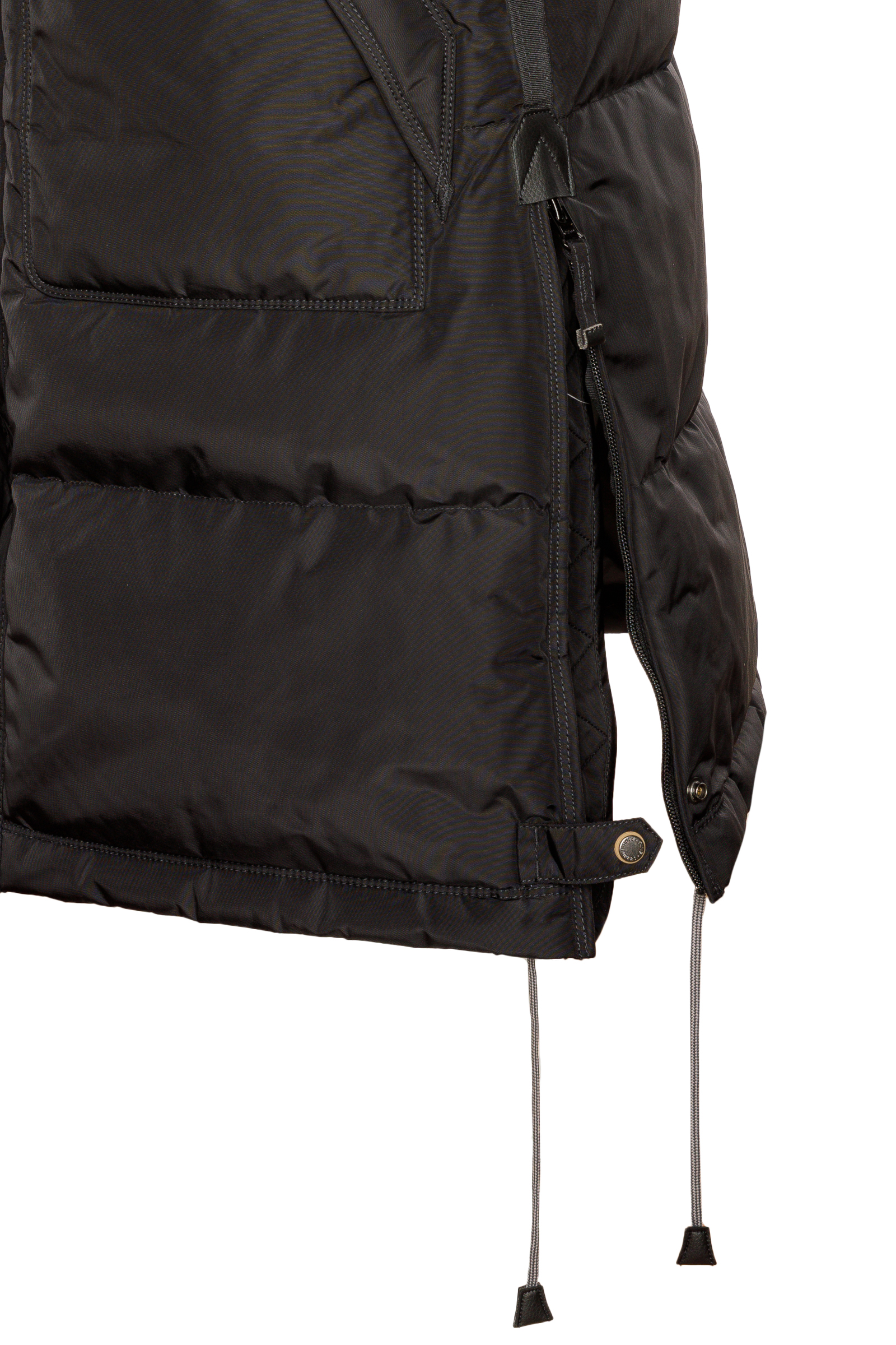 • Seitliche Reißverschlussschlitze mit Druckknopf-Riegel am Saum