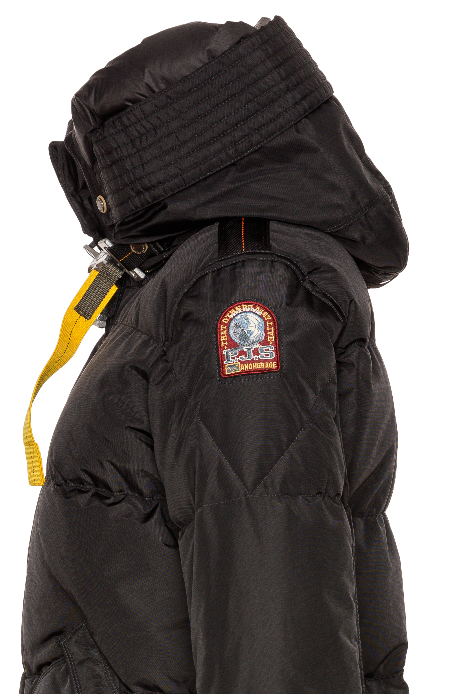 • Signature-Hakenverschluss an der Kapuze mit gelbem Anhänger