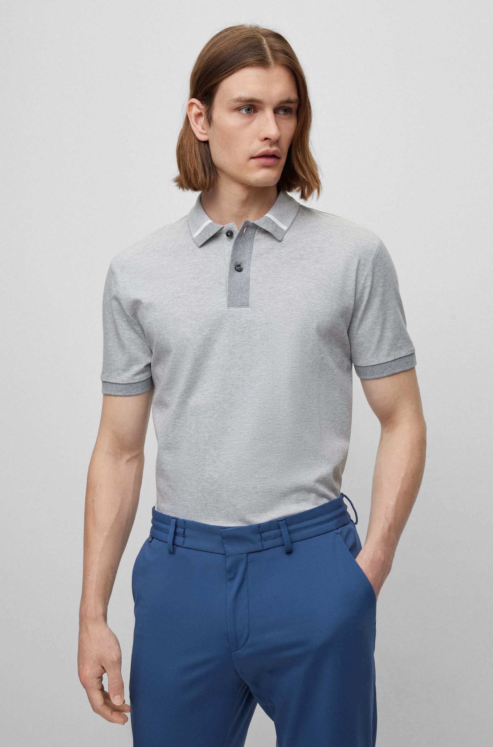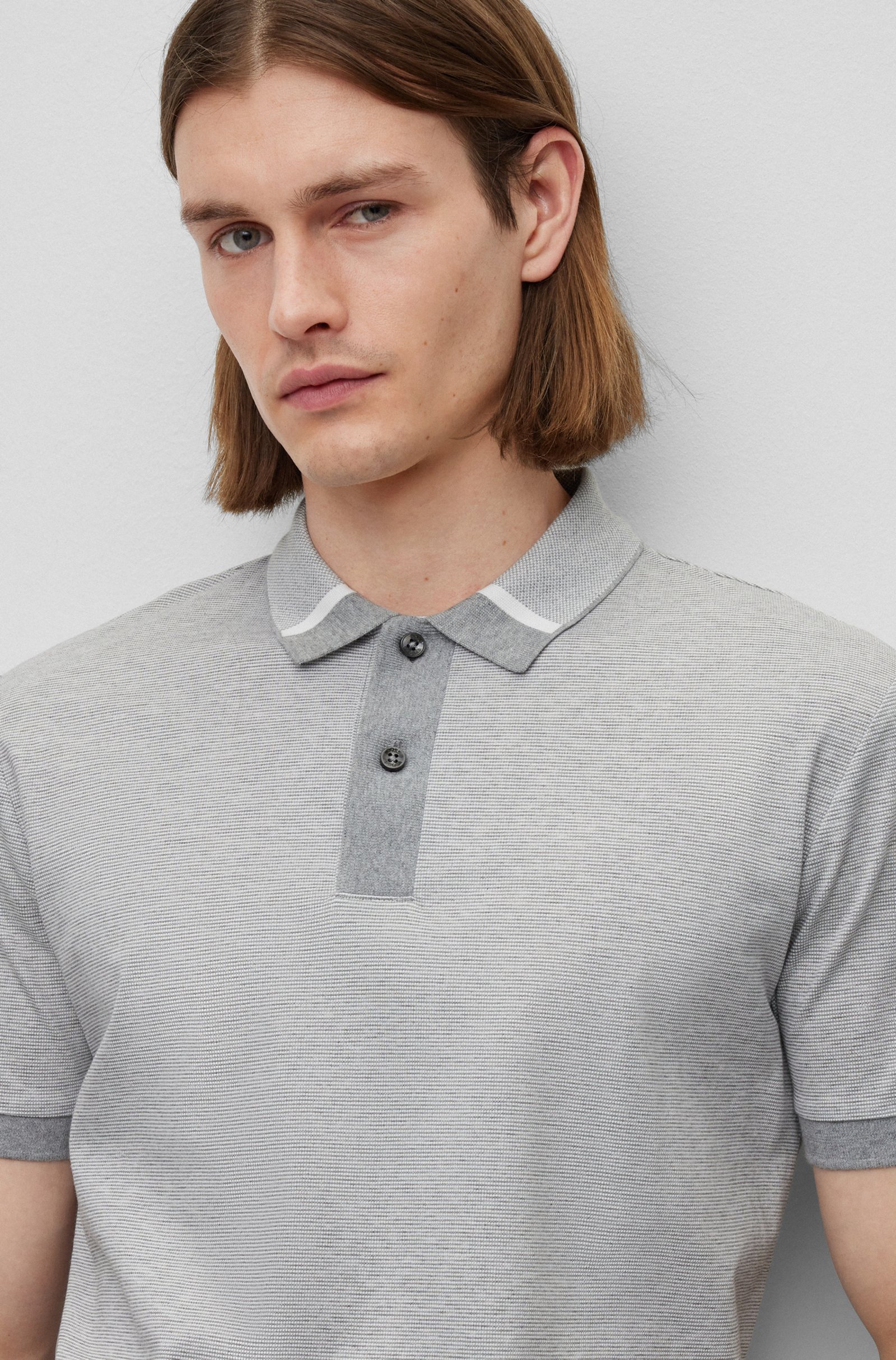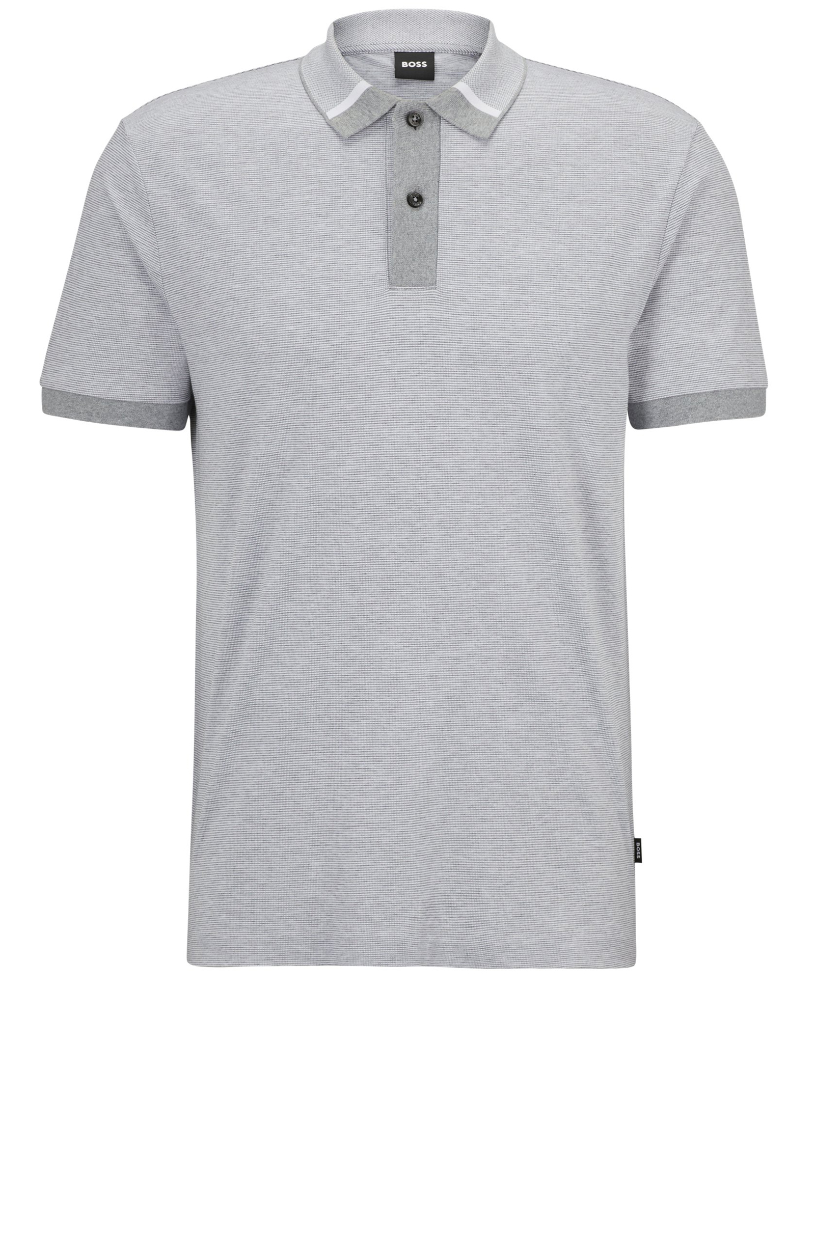 Lässiges BOSS Poloshirt. Das gerade geschnittene Herren-Polo mit cleaner Silhouette ist aus reiner Baumwolle gefertigt und mit einem filigranen zweifarbigen Muster versehen. Kontrastfarbene Einfassungen verleihen dem zeitgemäßen Style einen sportiven Touch.