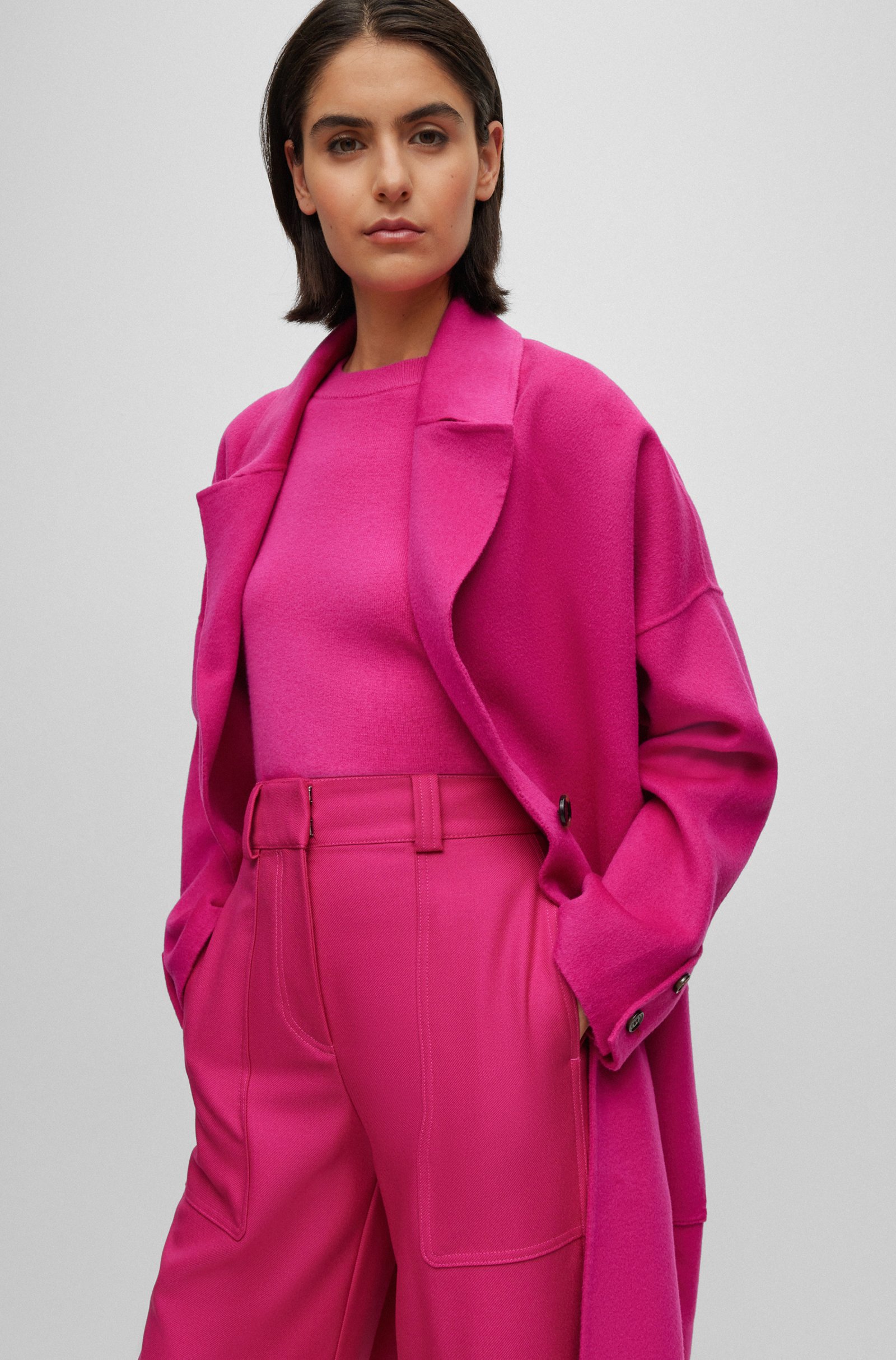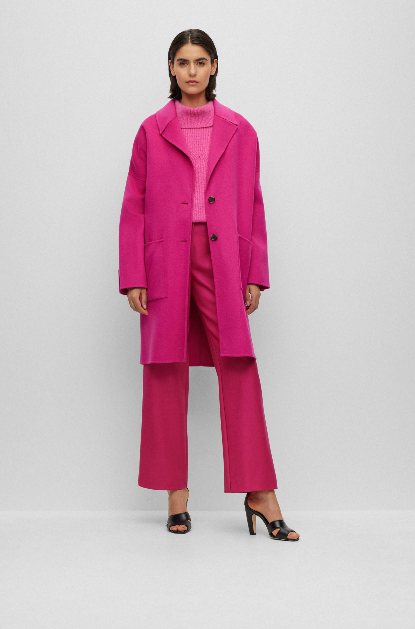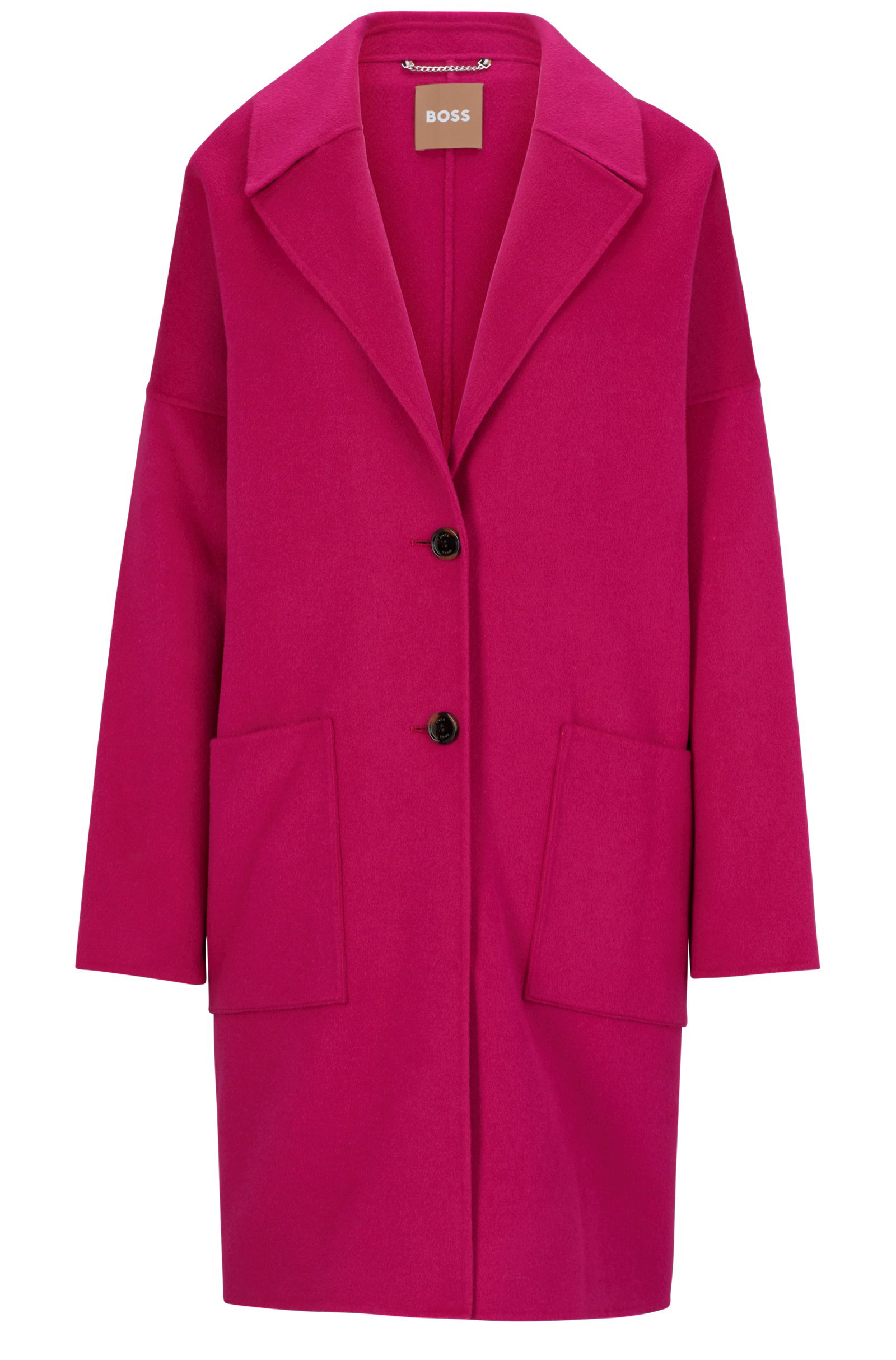 Ideal für die Übergangszeit: der locker geschnittene, melierte BOSS Damen-Mantel aus einem schweren, zweiseitigen Woll-Mix mit Oversize-Revers.