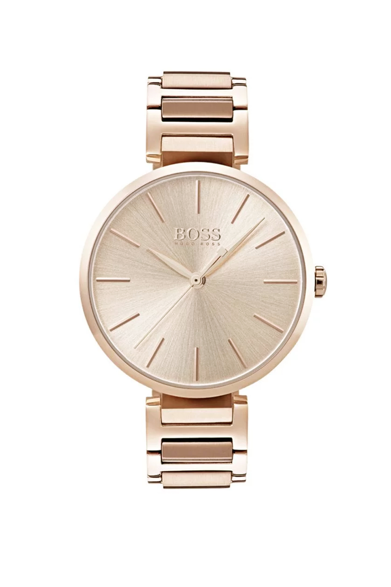 • Gehäuse und Gliederarmband in roségold aus Edeldstahl
