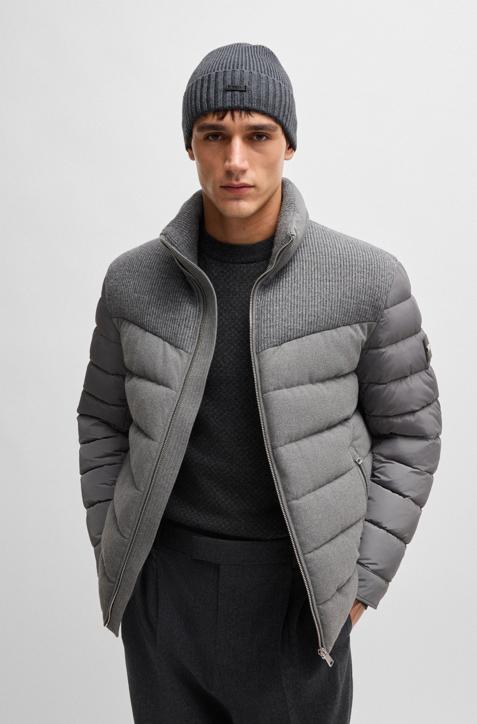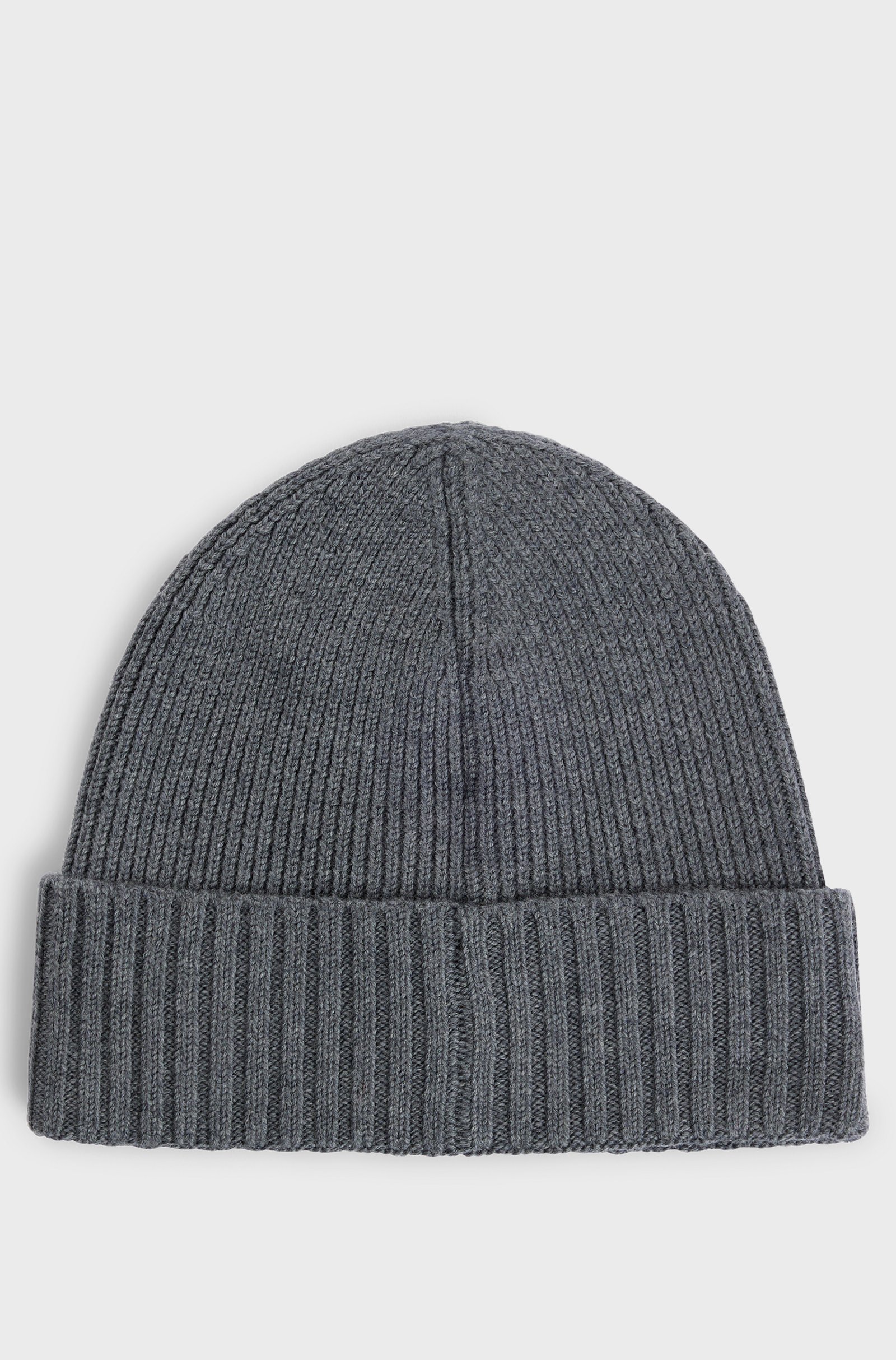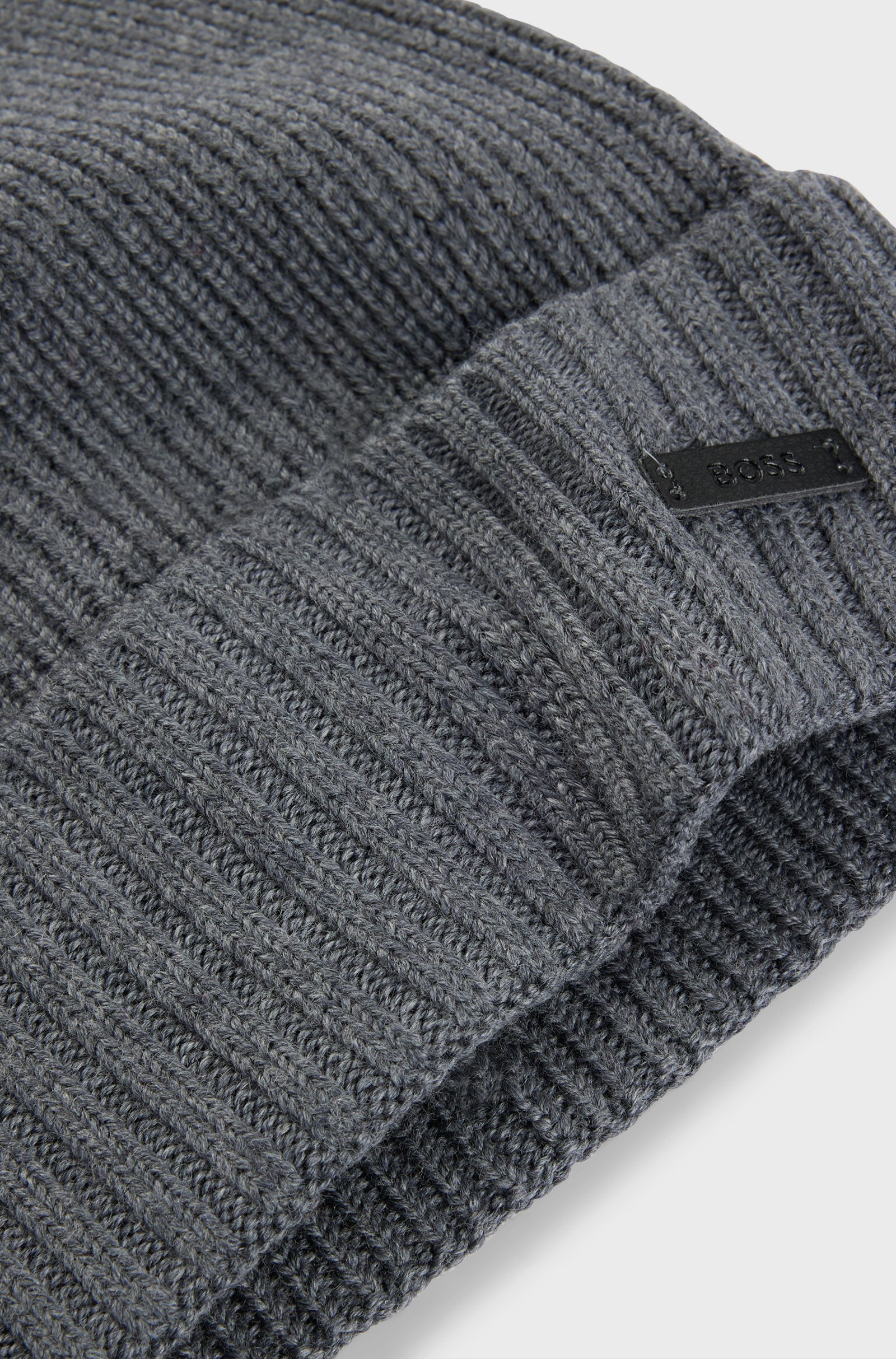 Komfortable BOSS Mütze mit Logo-Etikett aus synthetisch beschichtetem Textil. Das gerippte Accessoire ist aus soften Garnen gestrickt.