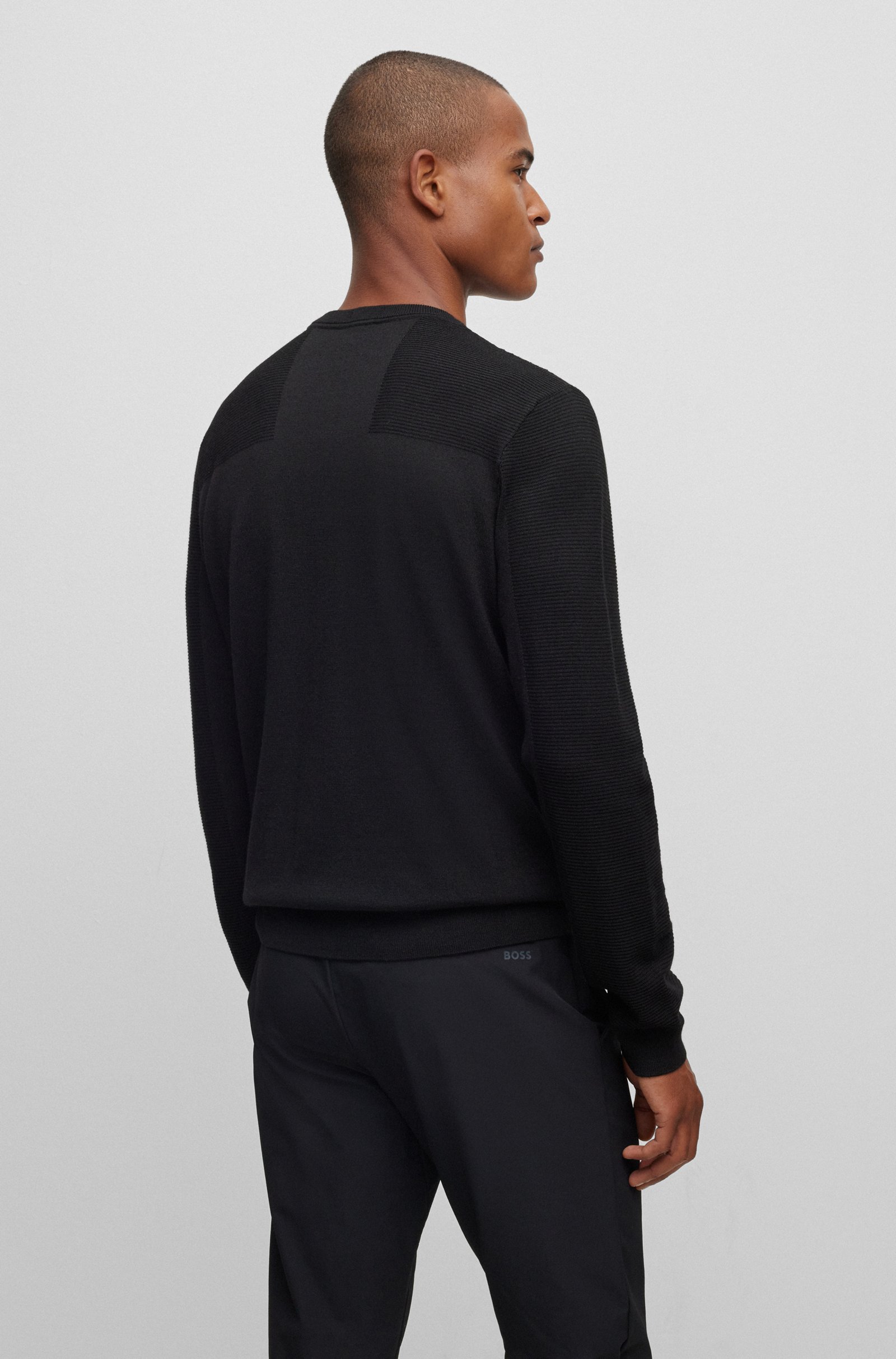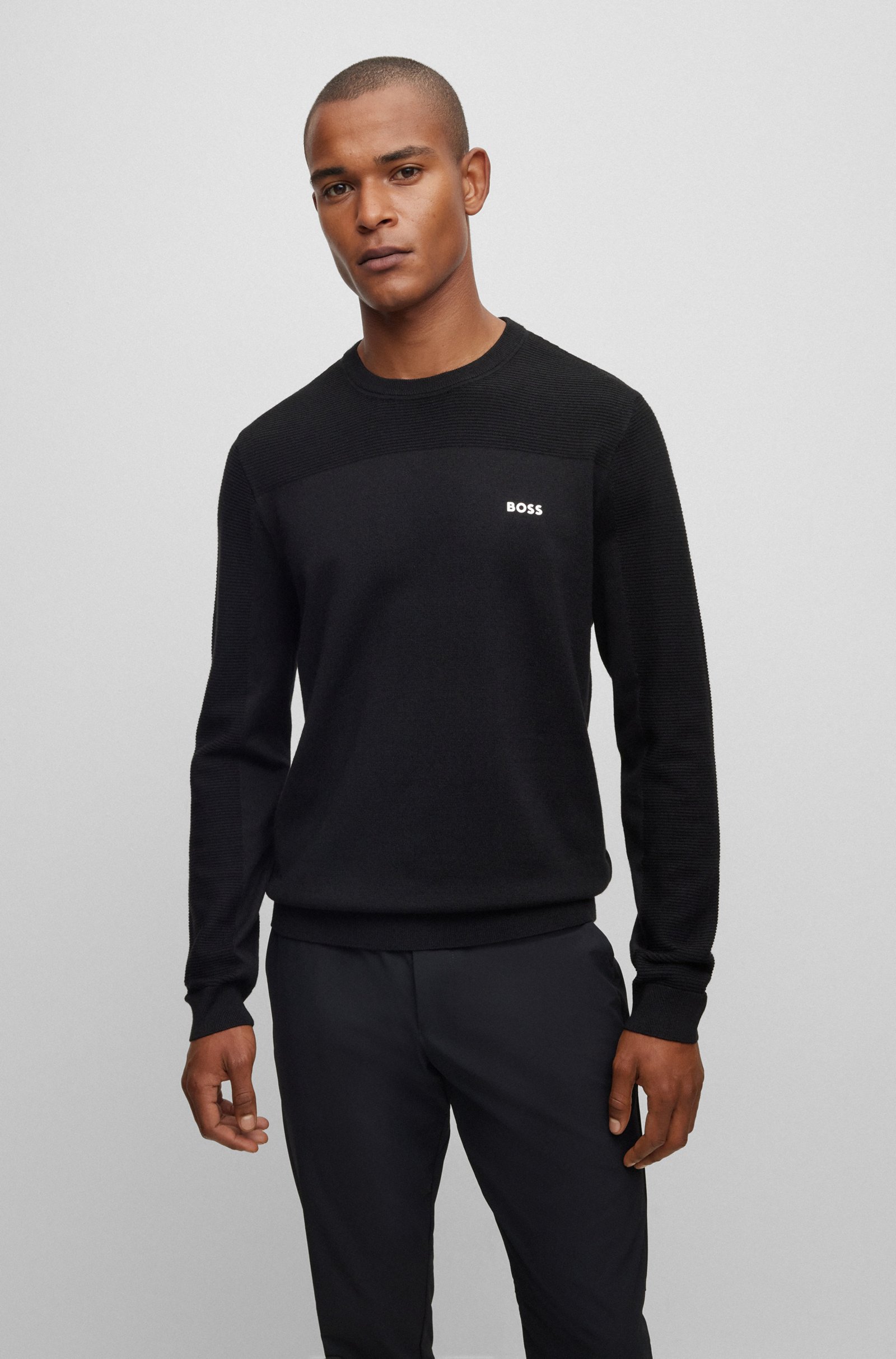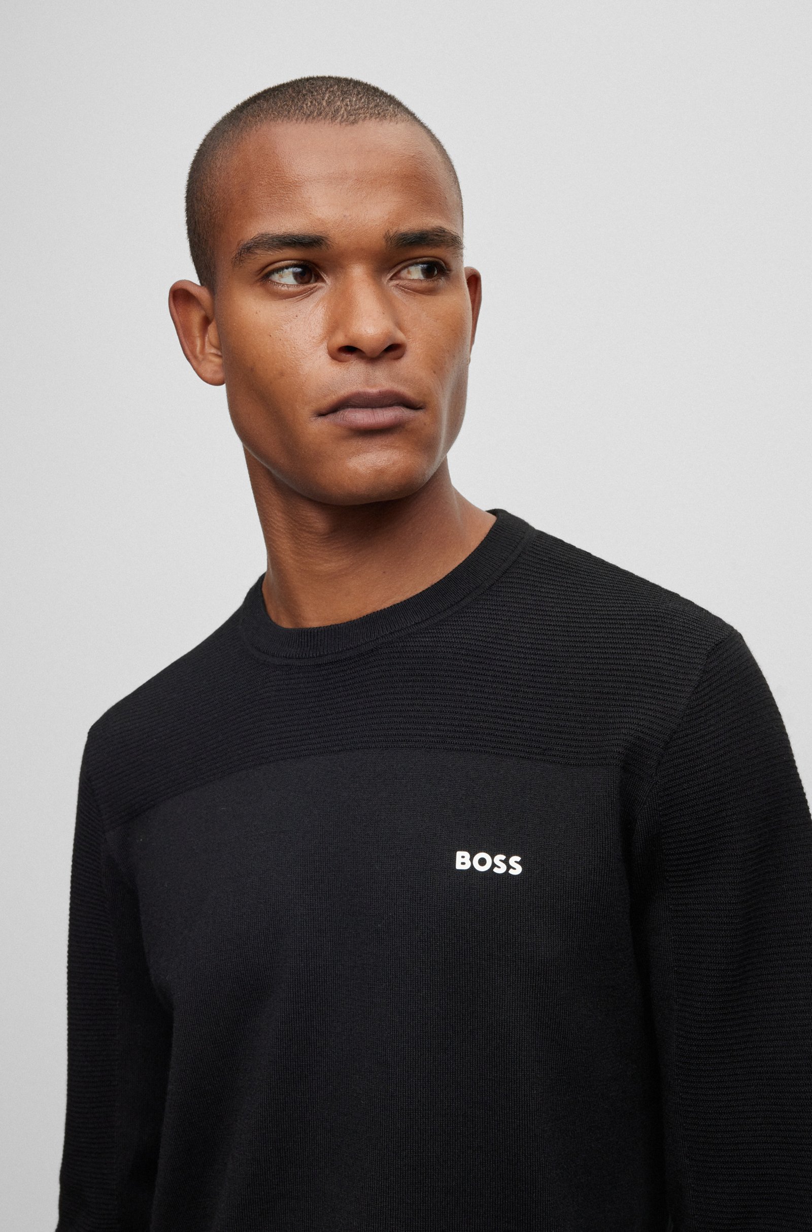 Gerade geschnittener BOSS Pullover aus einem feuchtigkeits- und temperaturregulierenden Material-Mix mit Schurwoll- und Elasthan-Anteil. Ein Logo rundet den Style ab.