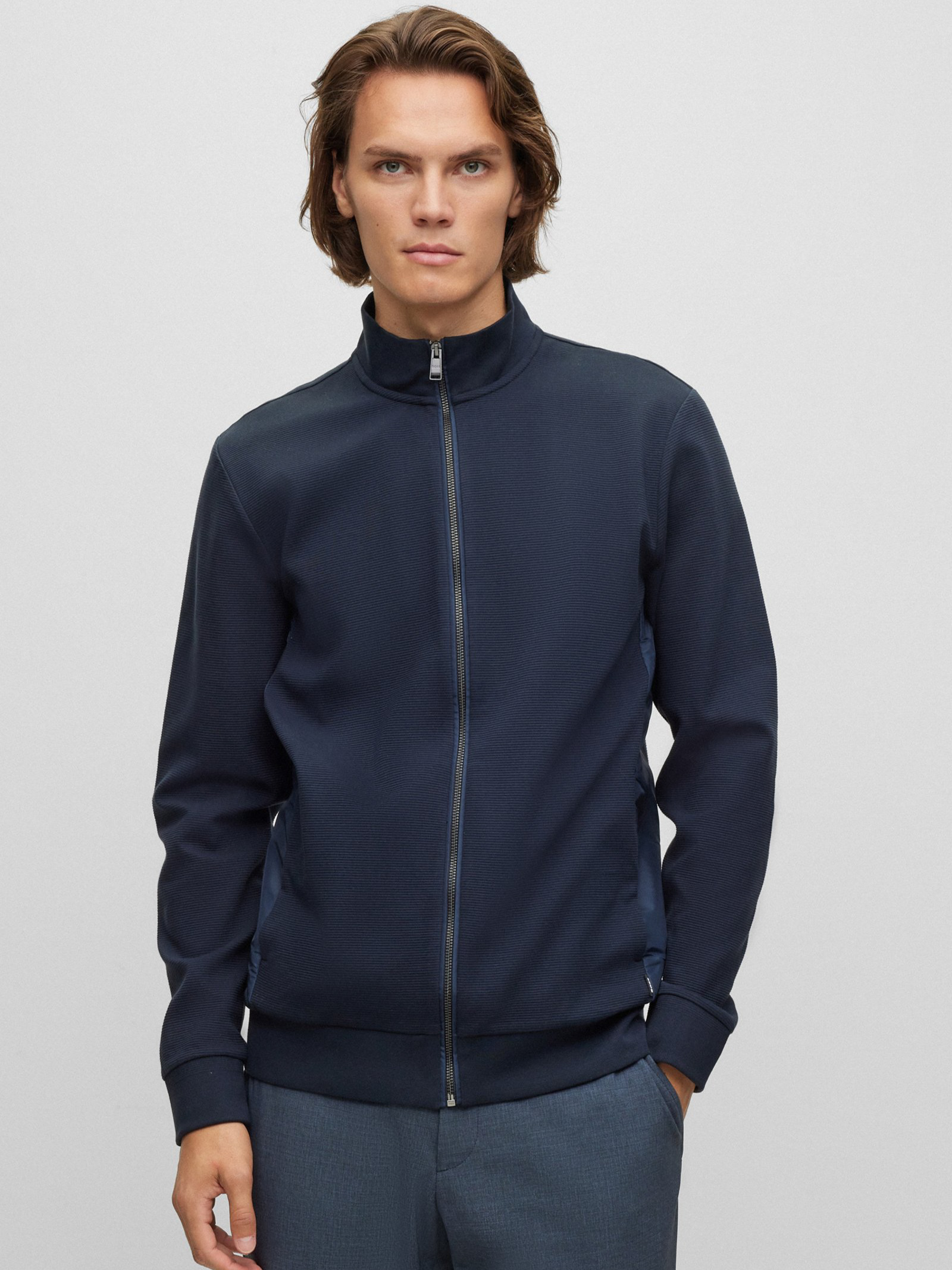 Gerade geschnittene BOSS Herren-Sweatjacke aus merzerisierter Baumwolle mit Ottoman-Struktur, Reißverschluss, tonalen Seitenbahnen und versteckten Taschen.