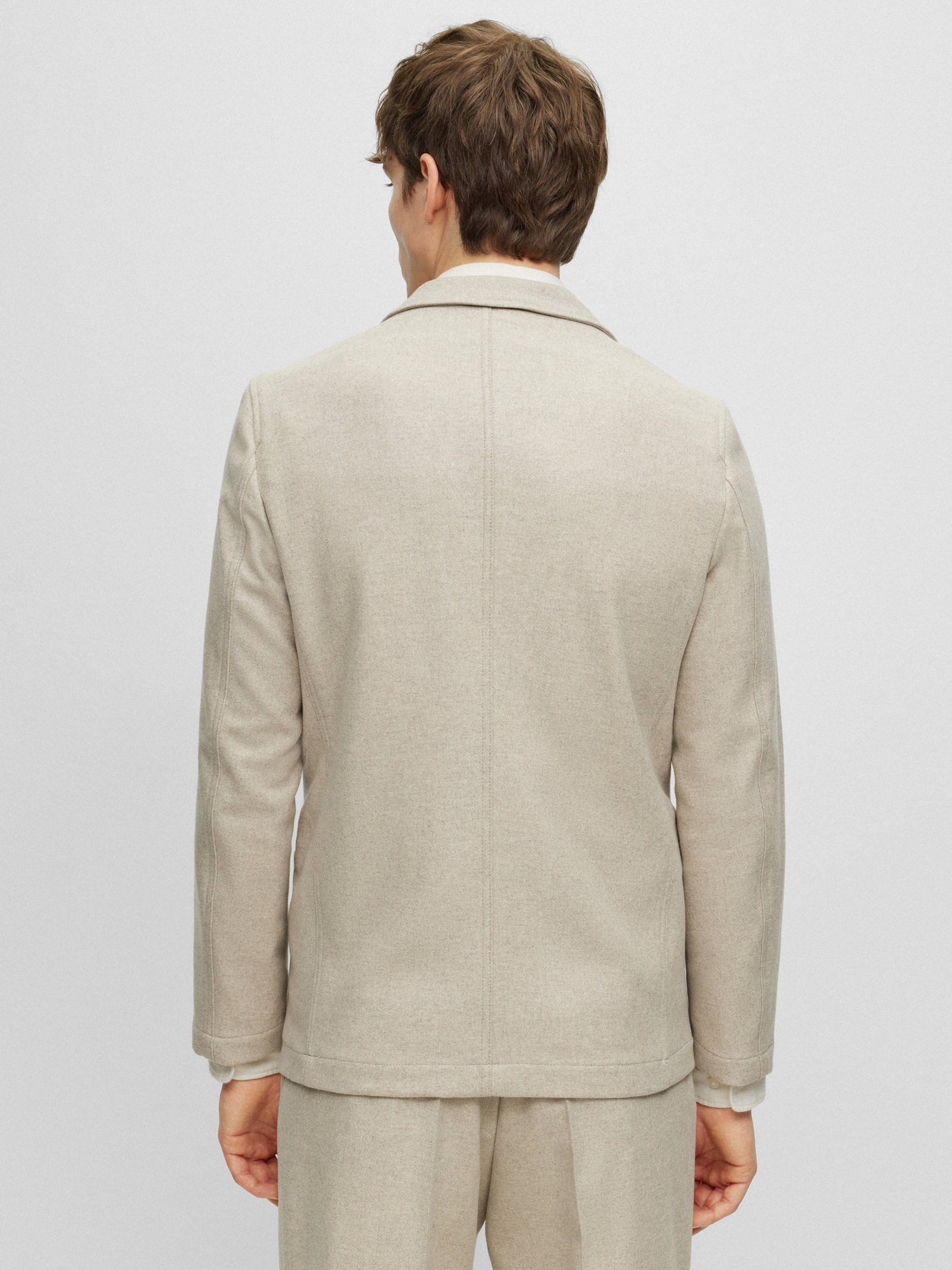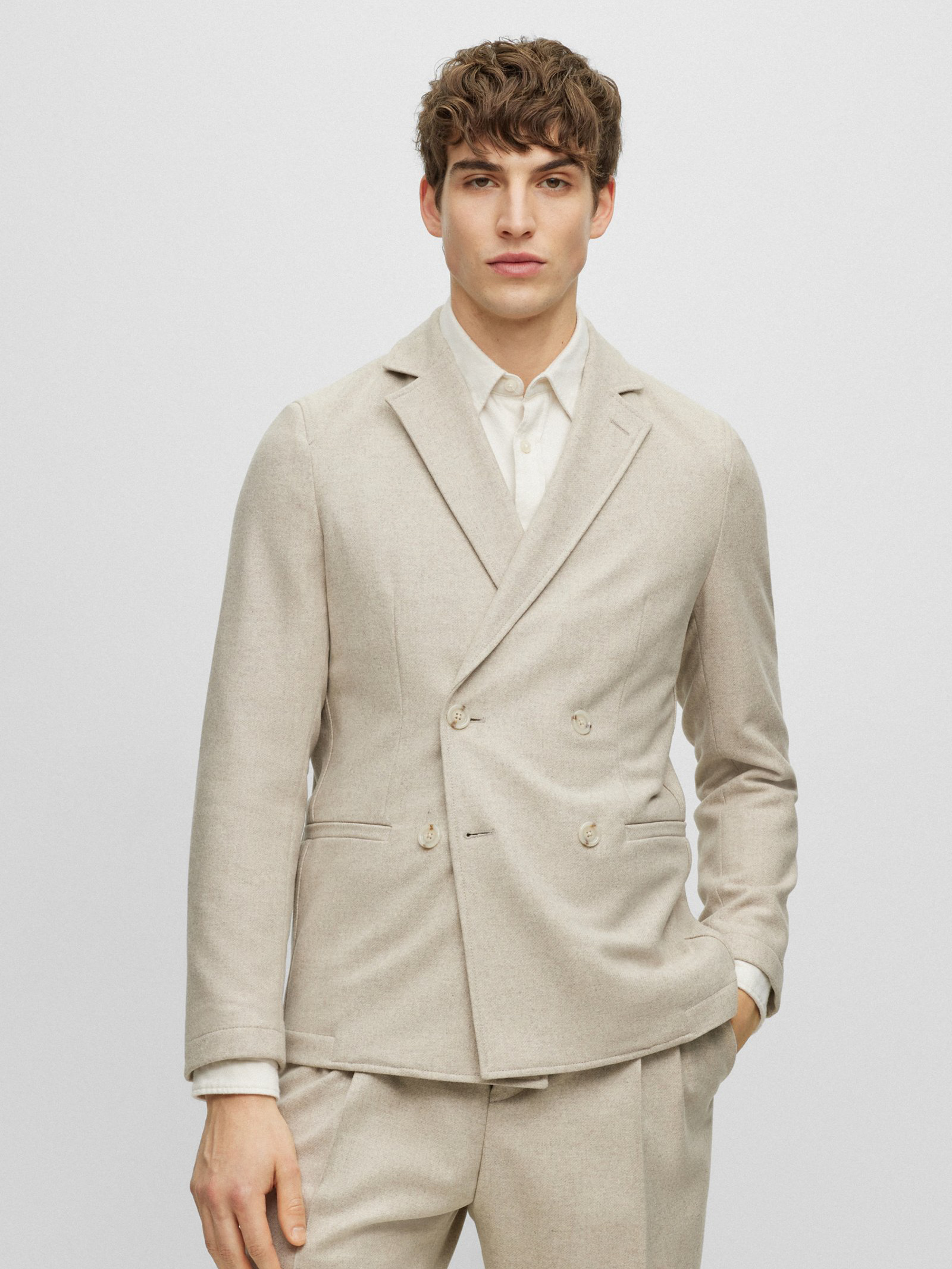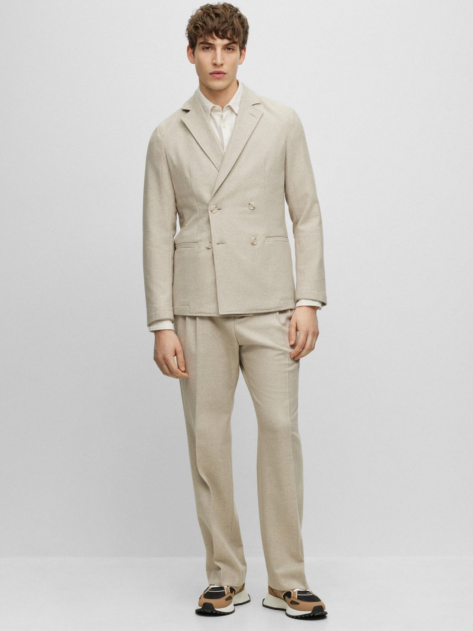 All-gender BOSS Zweireiher aus meliertem Gewebe mit gerader Passform und fallendem Revers sowie ohne Innenfutter.