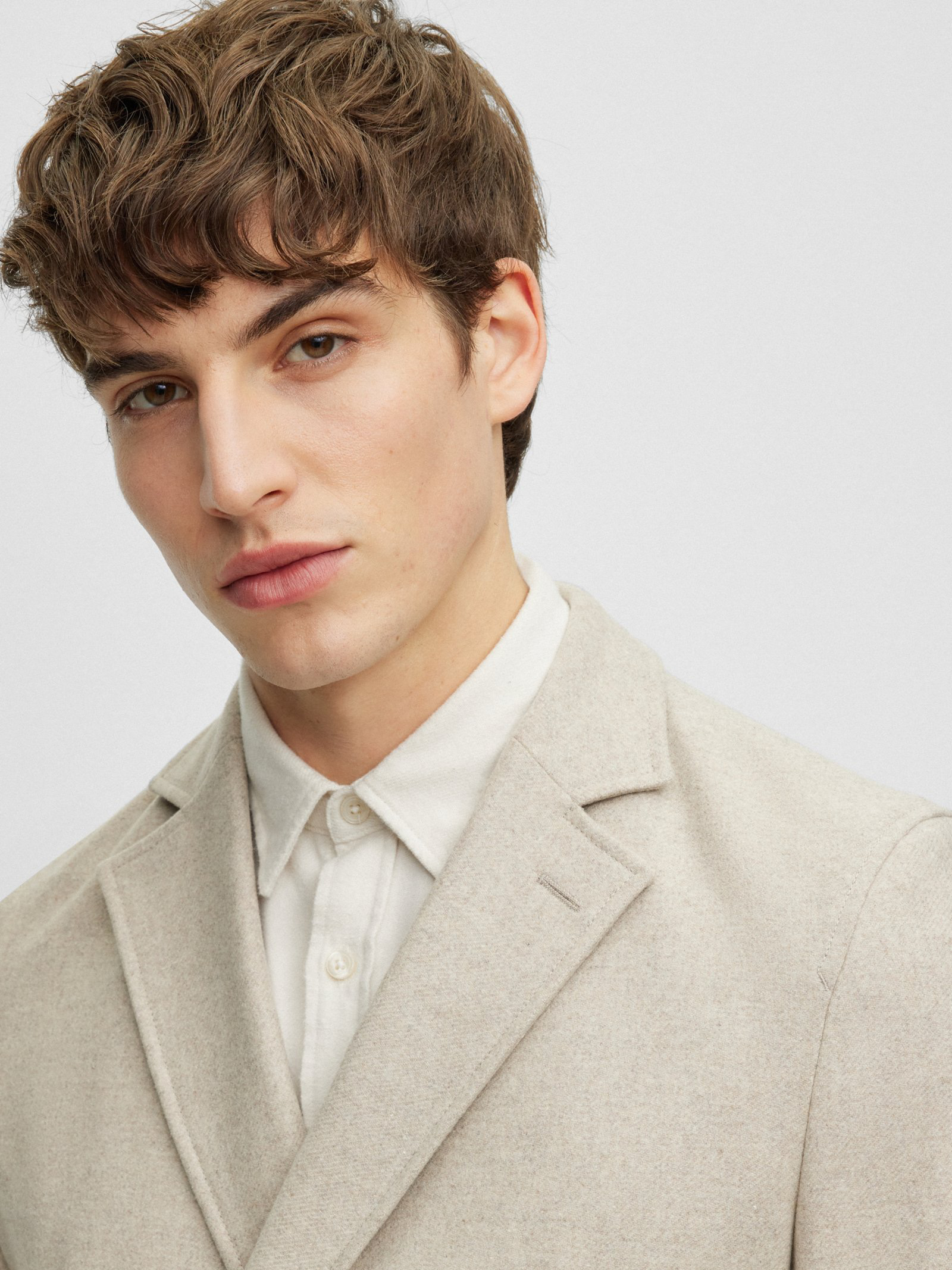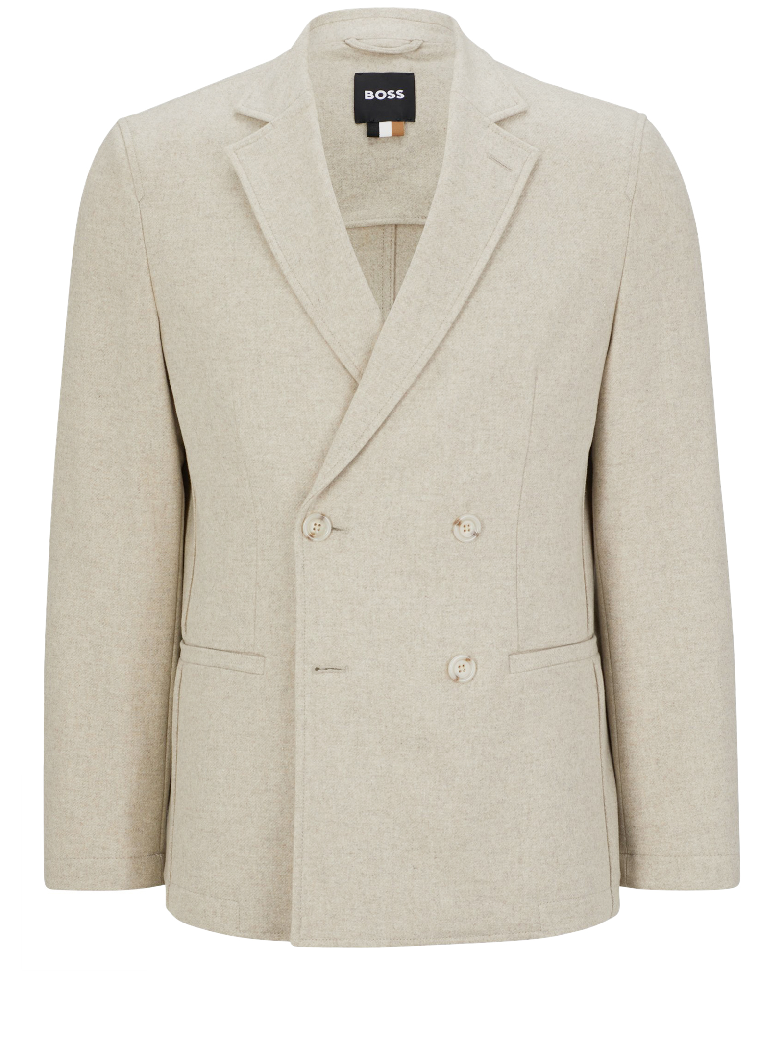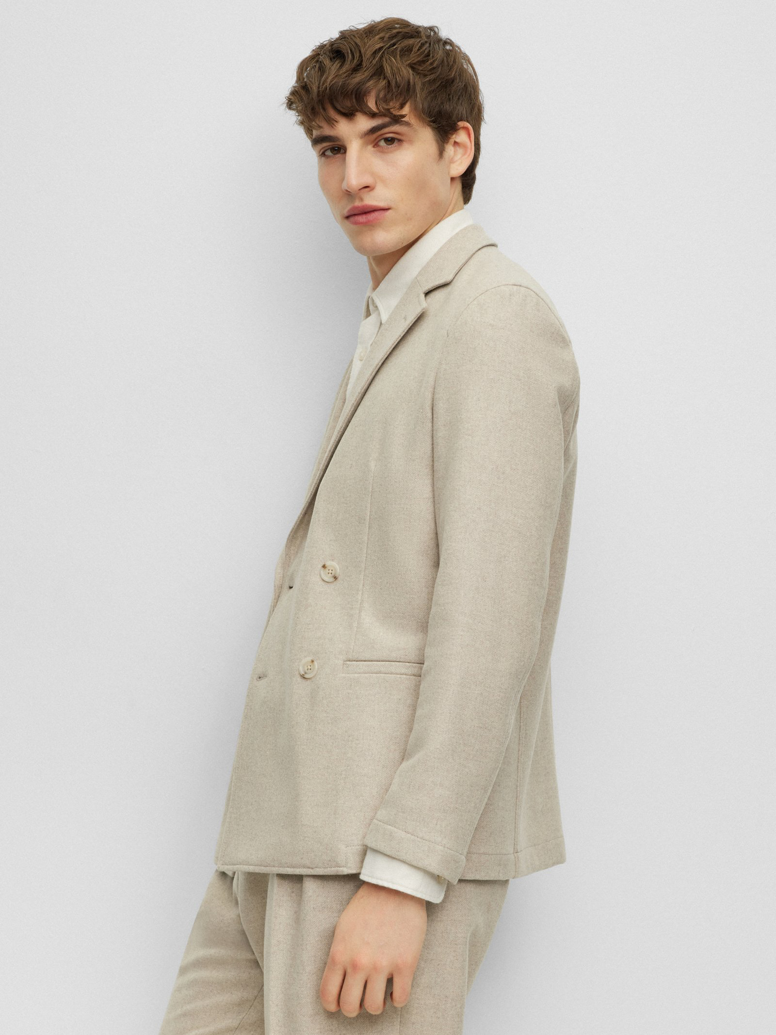All-gender BOSS Zweireiher aus meliertem Gewebe mit gerader Passform und fallendem Revers sowie ohne Innenfutter.