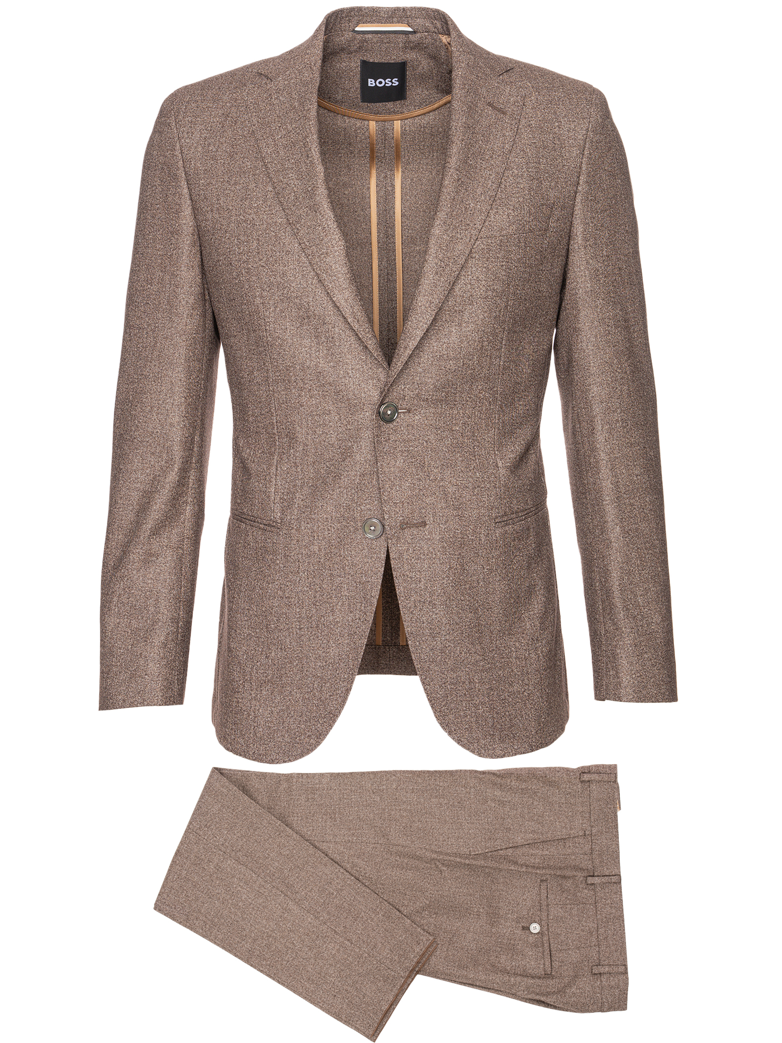 Präzise gefertigter BOSS Herren-Zweiteiler aus einem Schurwoll-Mix mit atmungsaktivem Baumwoll-Anteil. Der zeitgemäße Anzug mit schmaler Passform und cleaner Silhouette weist ein feines Muster auf. Paspeltaschen und ein fallendes Revers runden das einreihige Sakko ab.