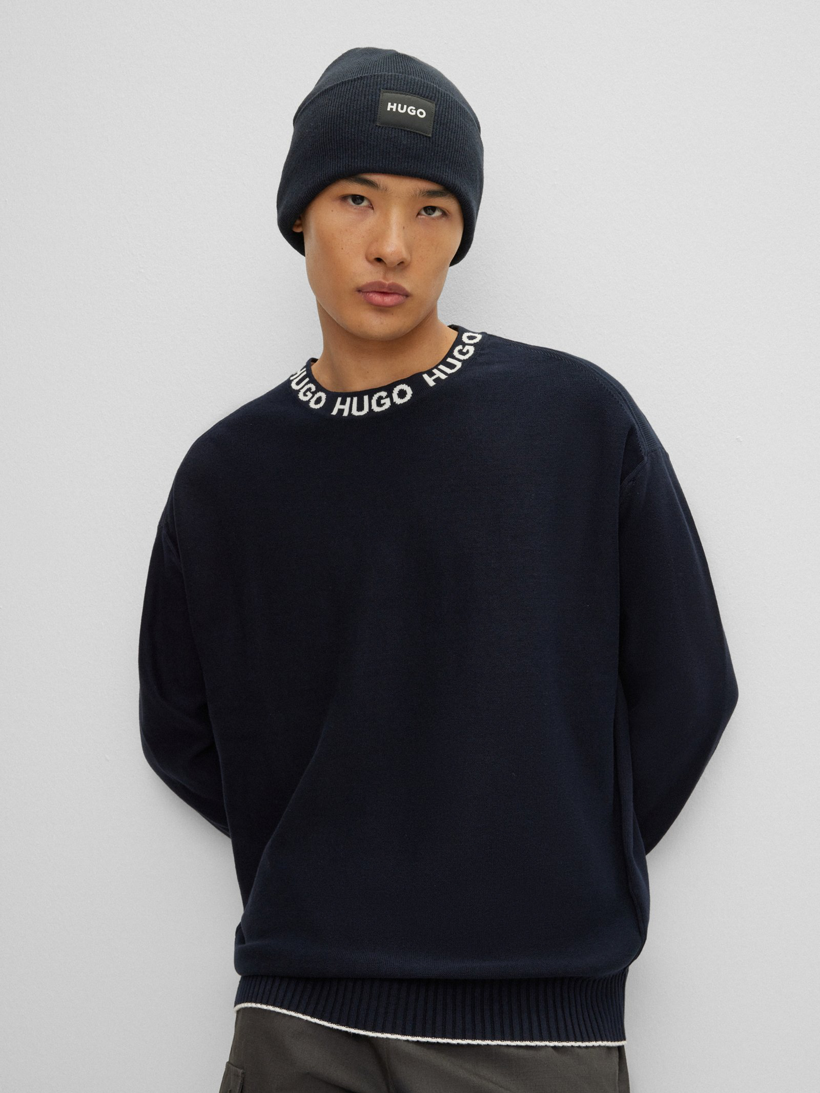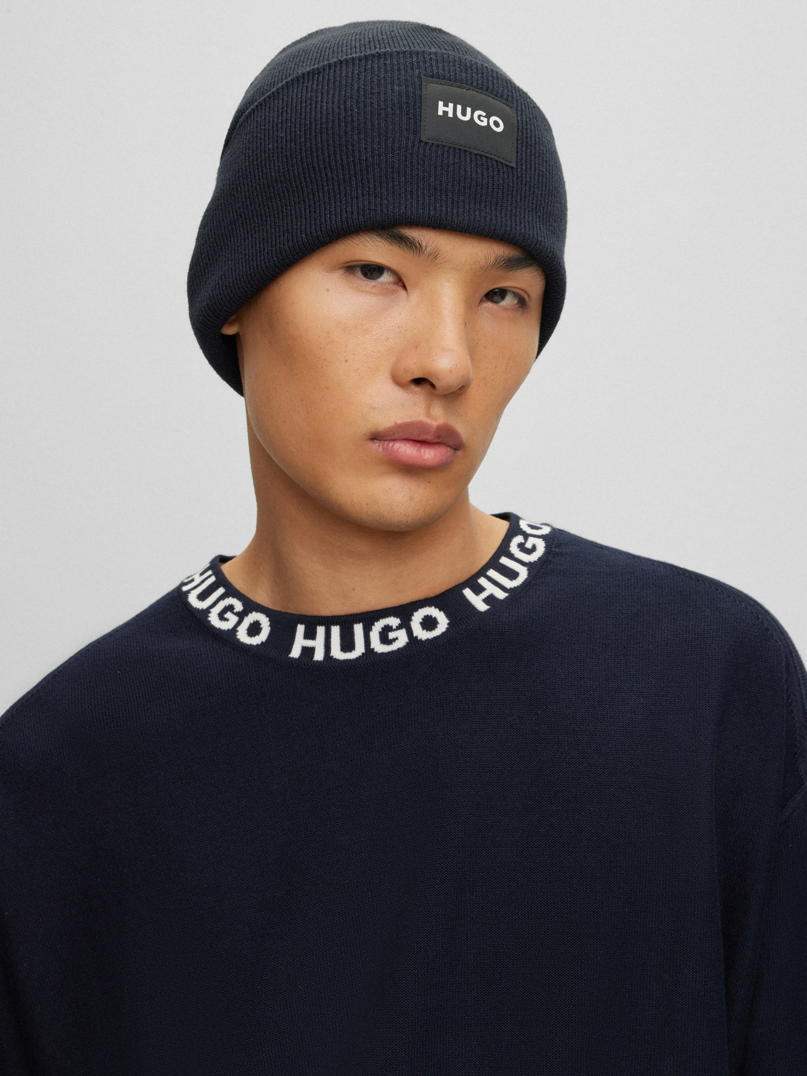 Besonders softe HUGO Mütze aus einem Material-Mix mit Baumwoll- und Modal-Anteil, die mit einem kontrastfarbenen Logo auf der Vorderseite versehen ist.