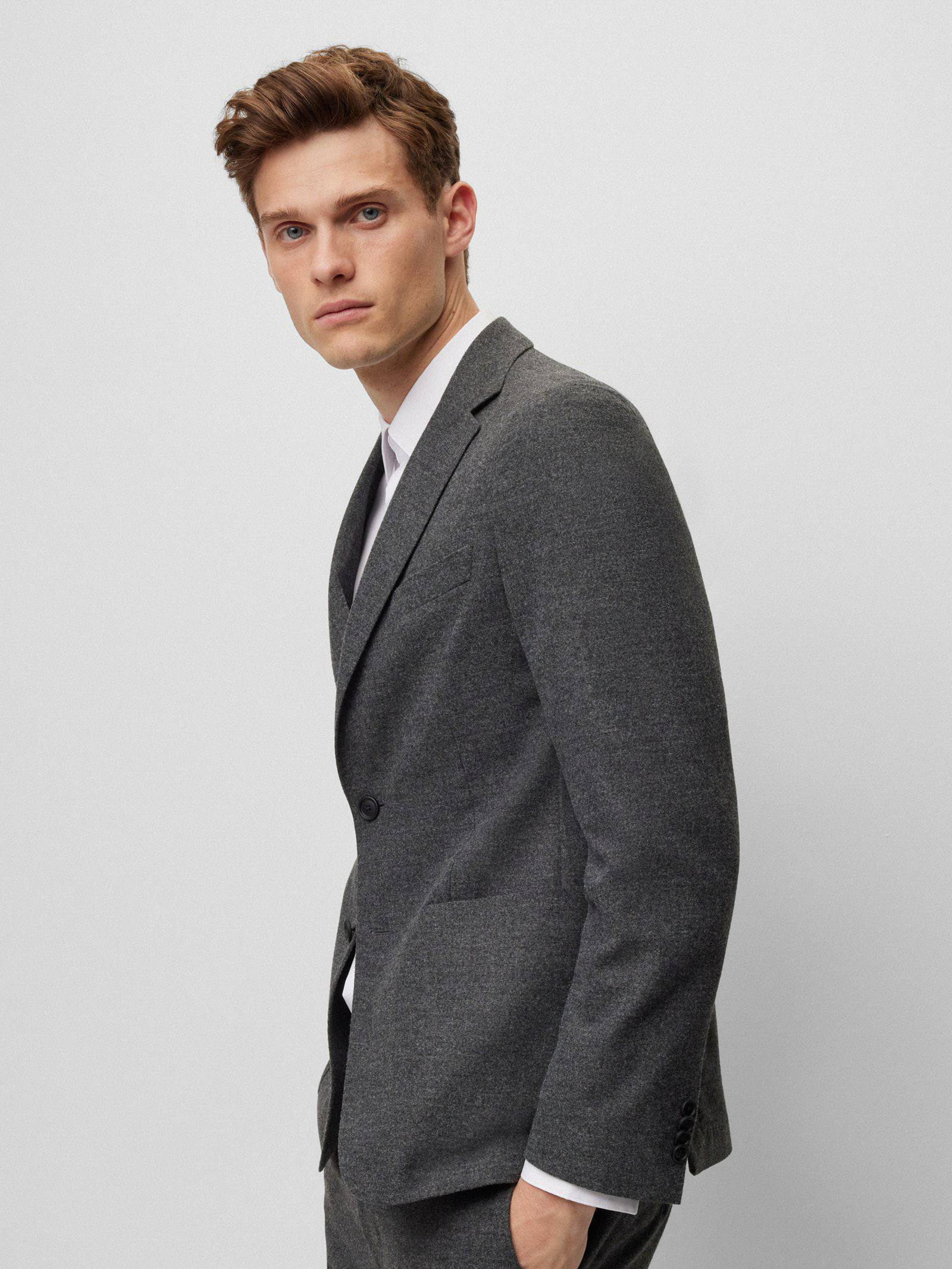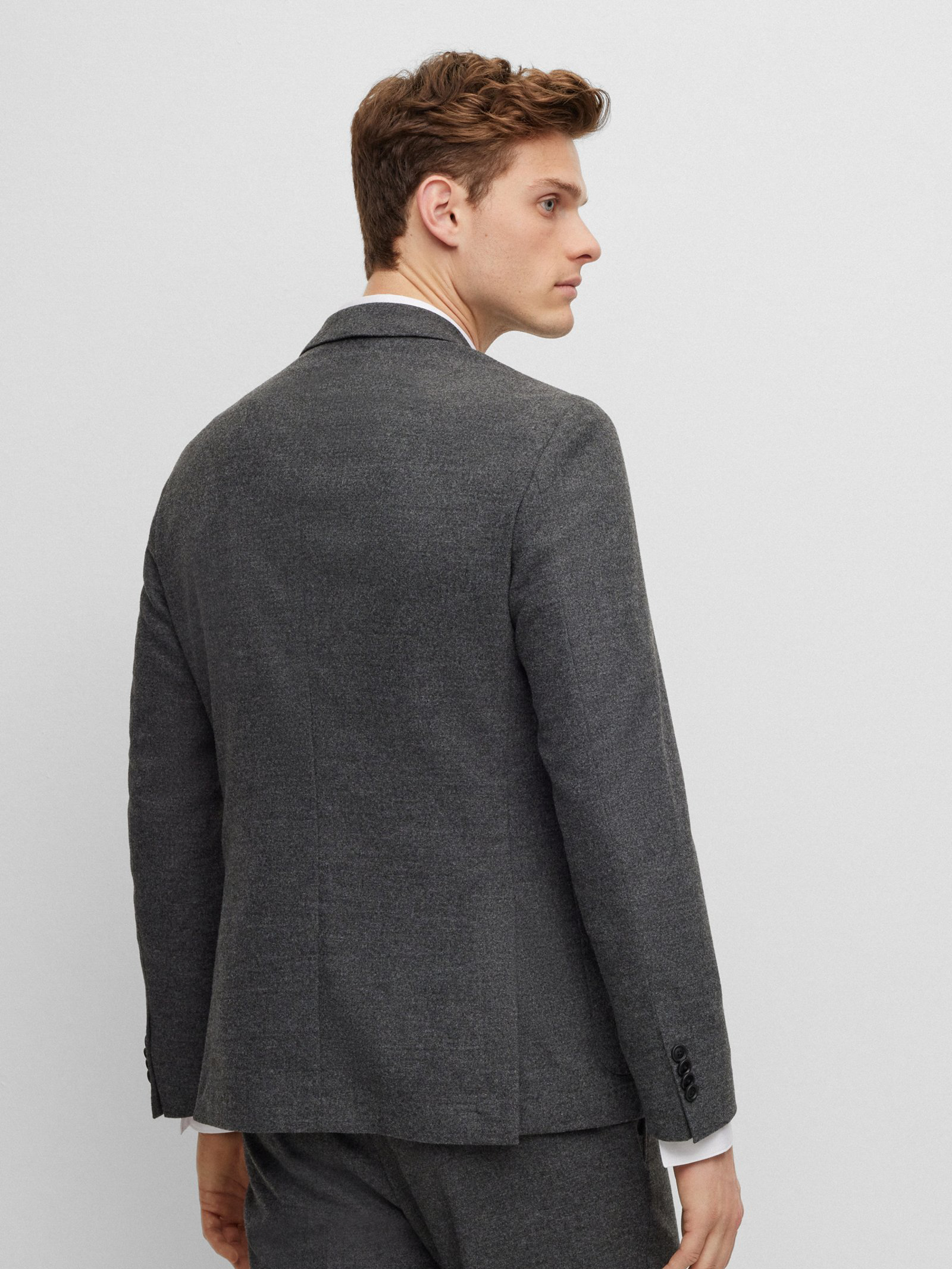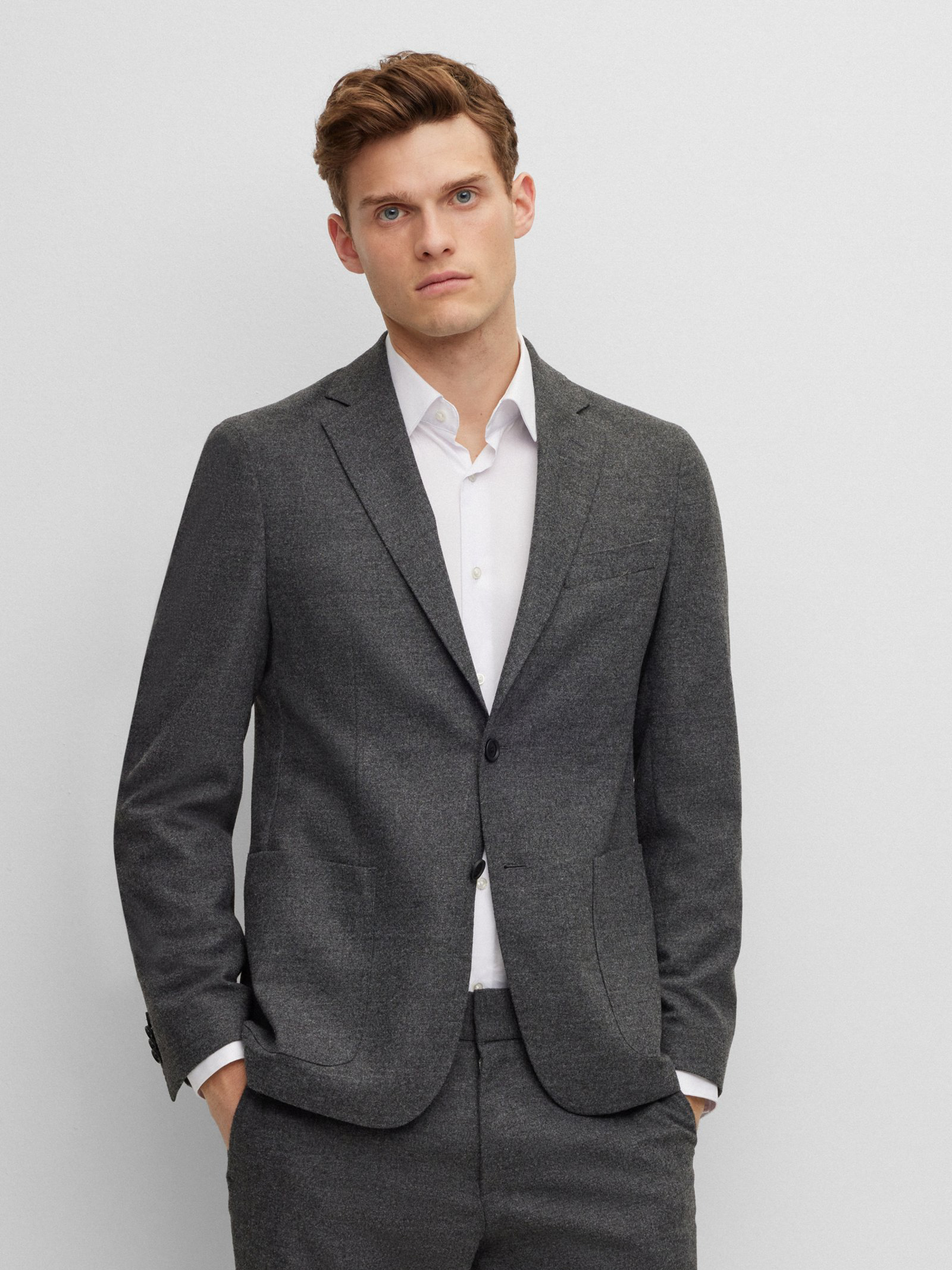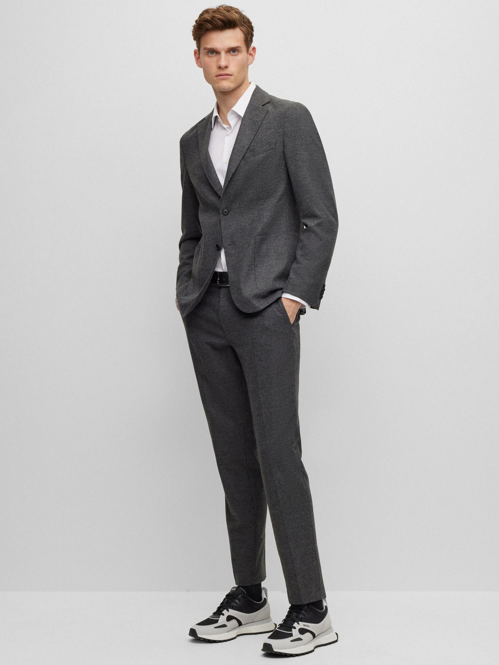 Vielseitig kombinierbar: der schmal geschnittene BOSS Einreiher aus einem soften Schurwoll-Mix mit Elasthan-Anteil.
