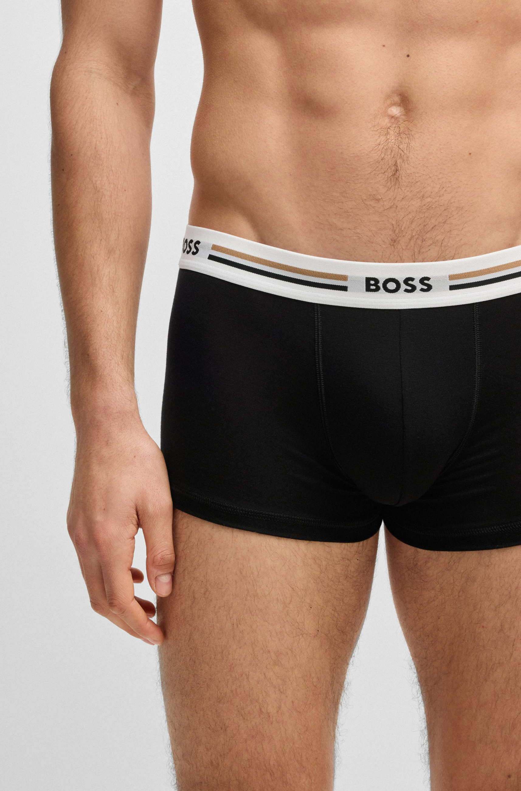 Drei eng anliegende BOSS Boxershorts mit kurzem Bein, mittlerer Bundhöhe und Signature-Streifen am Bund, die aus einem besonders soften, elastischen Material-Mix gefertigt werden.