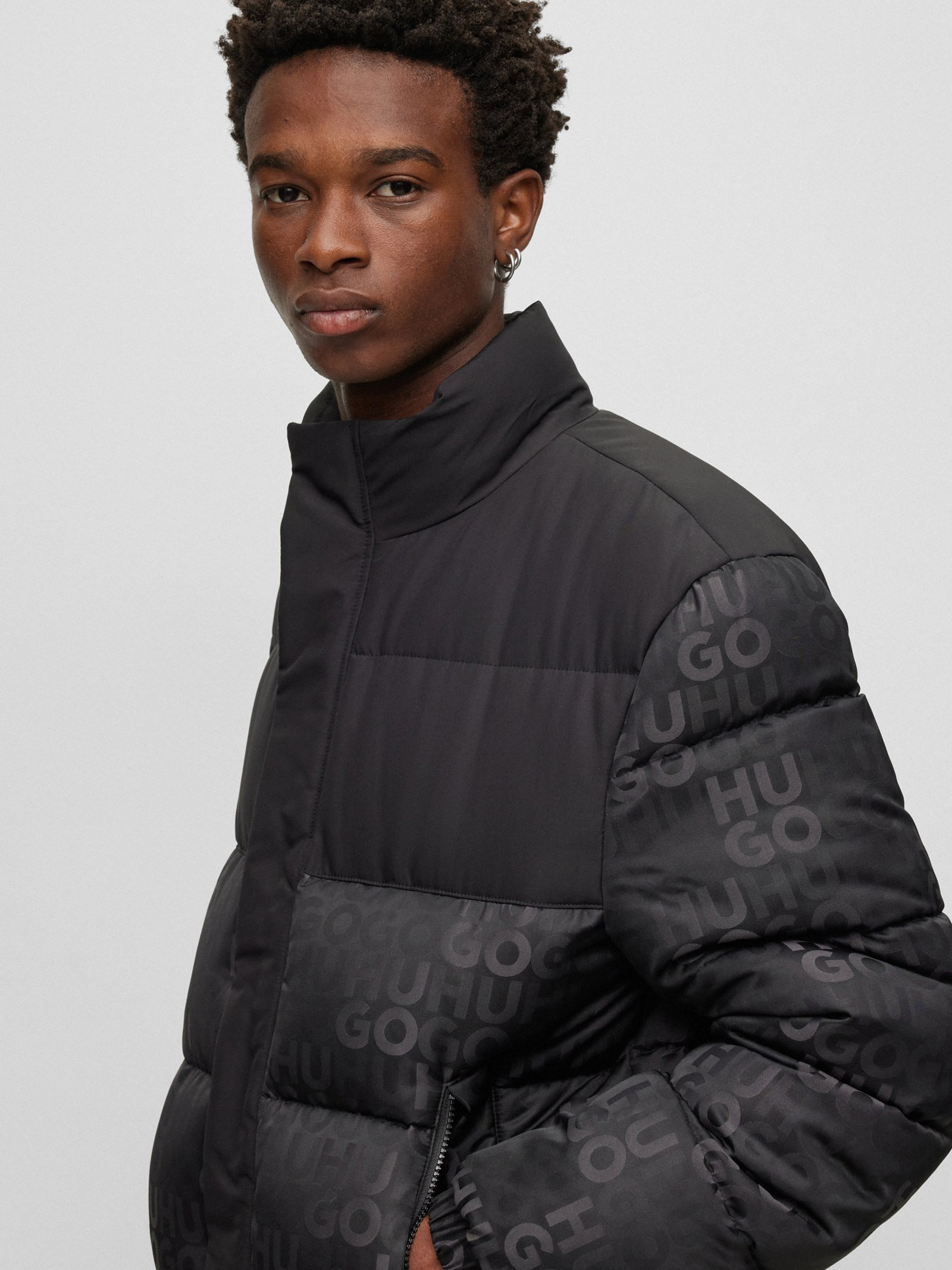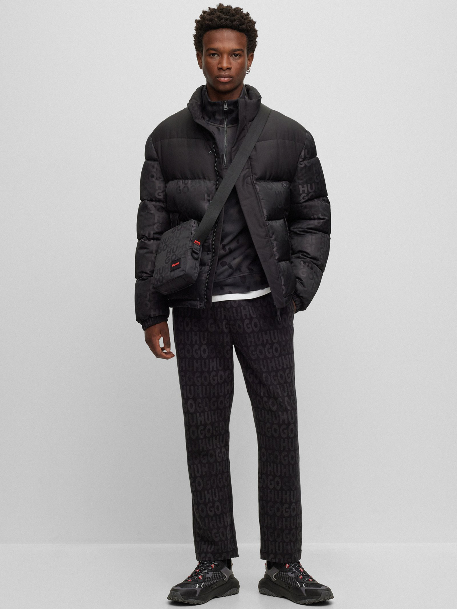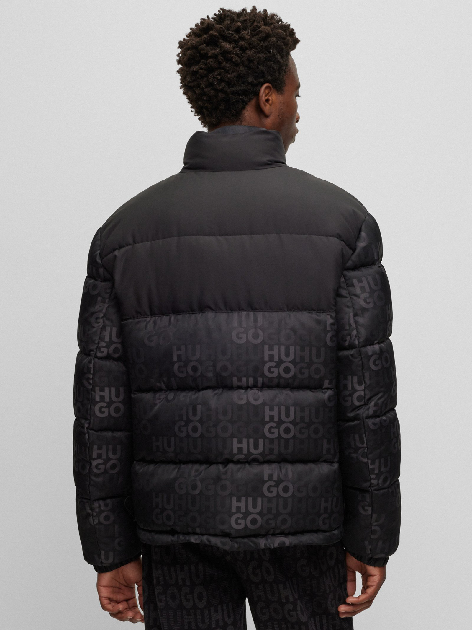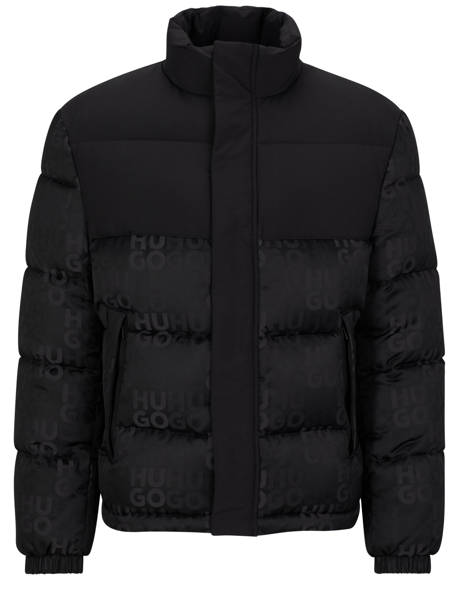 Wasserabweisende HUGO Herren-Steppjacke mit schmaler Passform, Jacquard-Logos und verdecktem Verschluss.