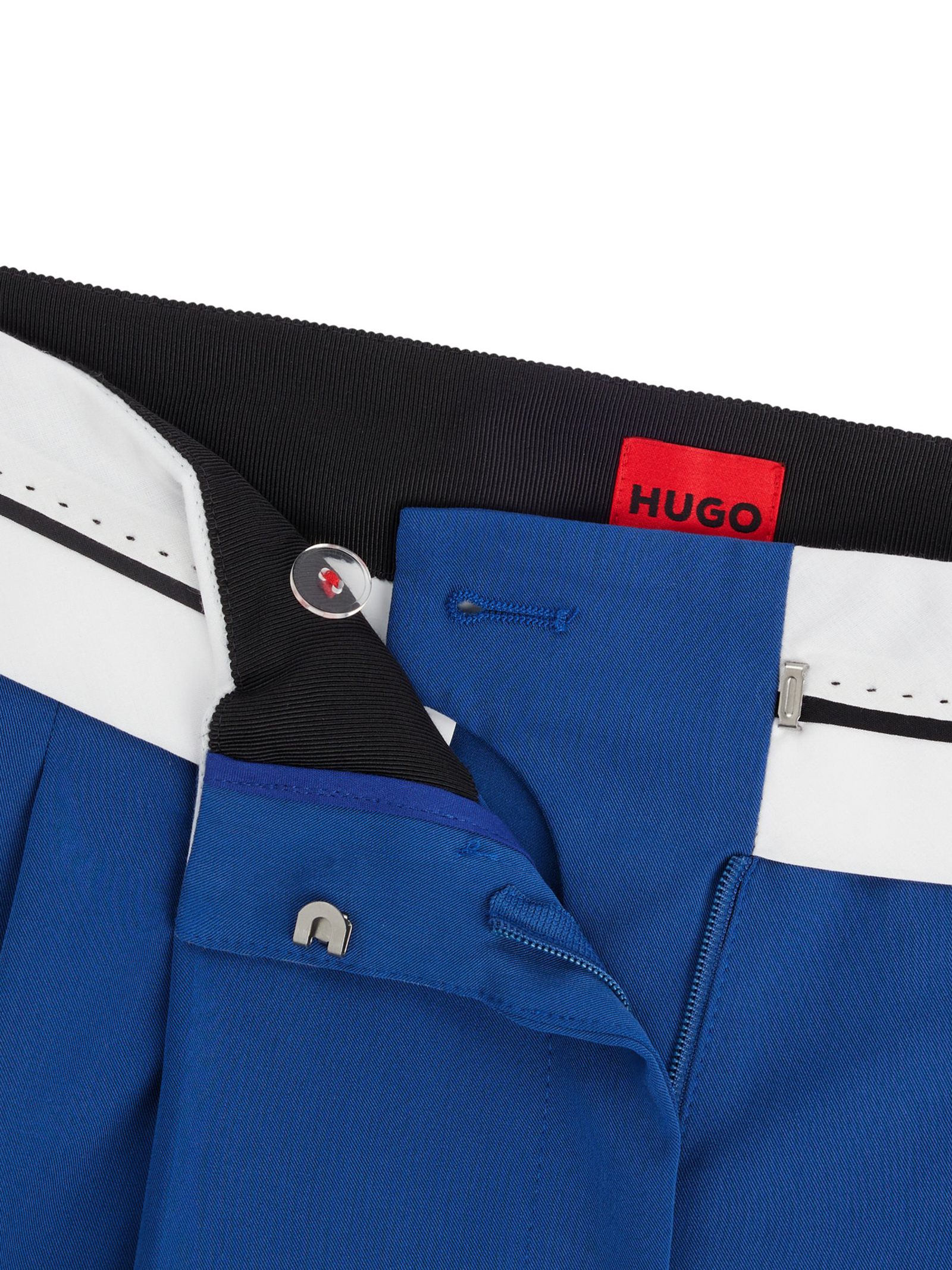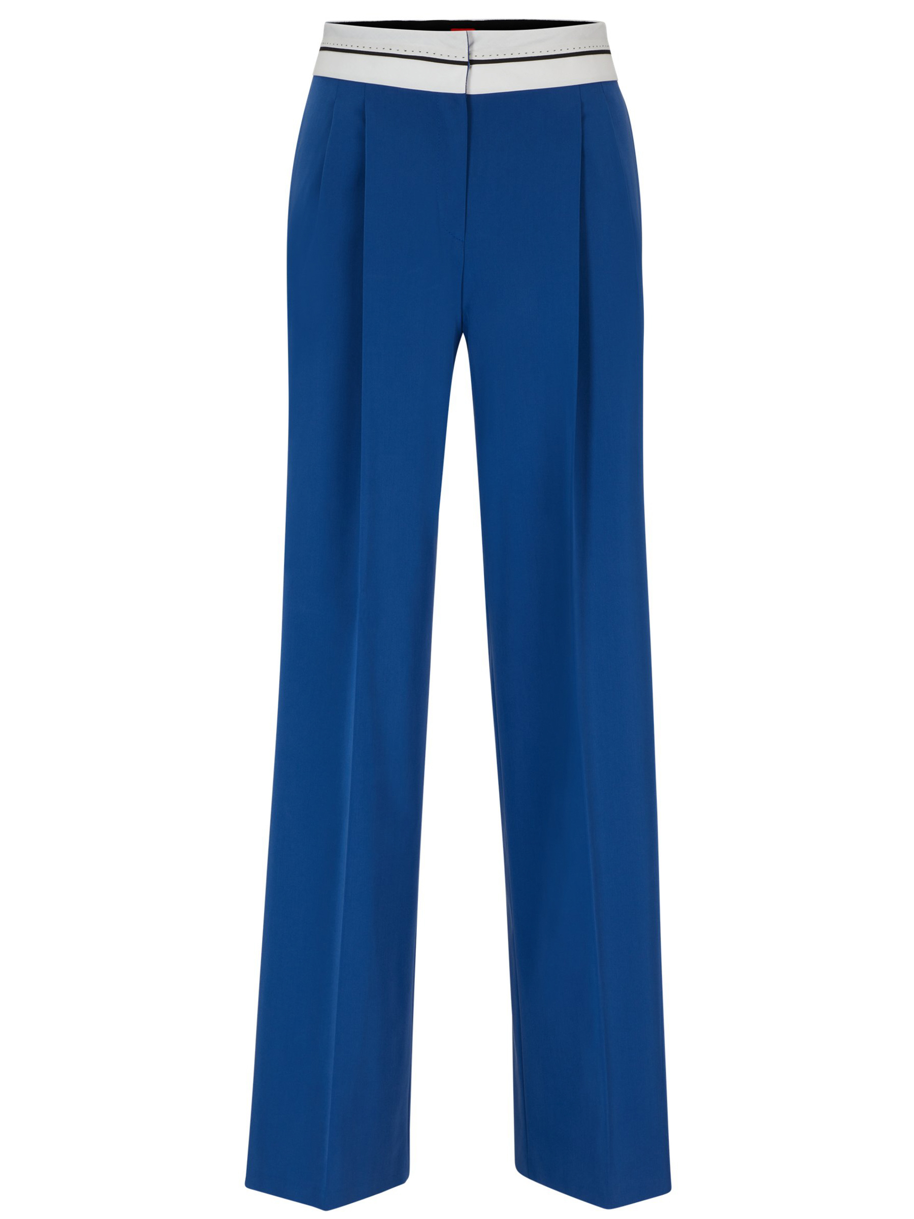 Progressive HUGO Damen-Hose mit mittlerer Bundhöhe, lockerer Passform und weitem Beinverlauf, die sich mit Inside-out-Details am Bund präsentiert.