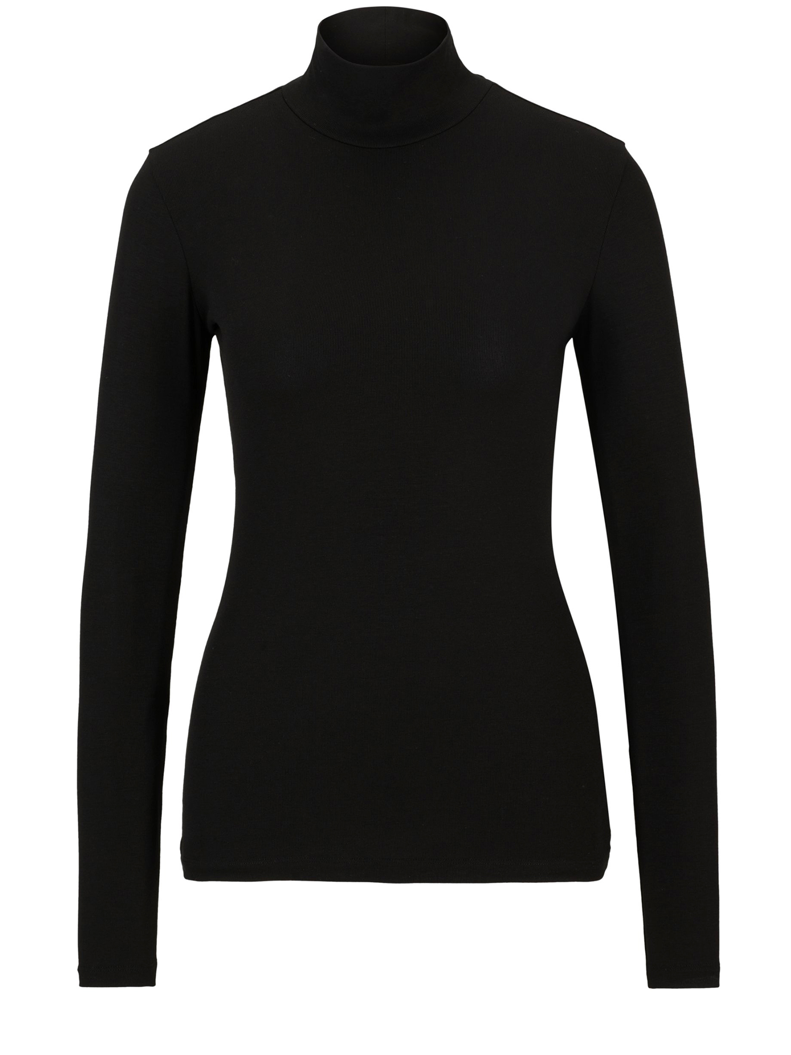 Schmal geschnittenes HUGO Damen-Longsleeve aus Stretch-Material mit Stehkragen und Logo-Detail.
