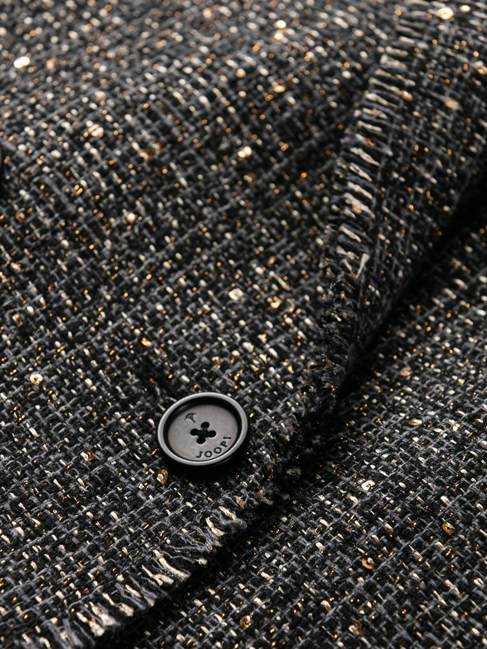 - Aus merhfarbigem Tweed in Schwarz-, Grau- und Goldtönen