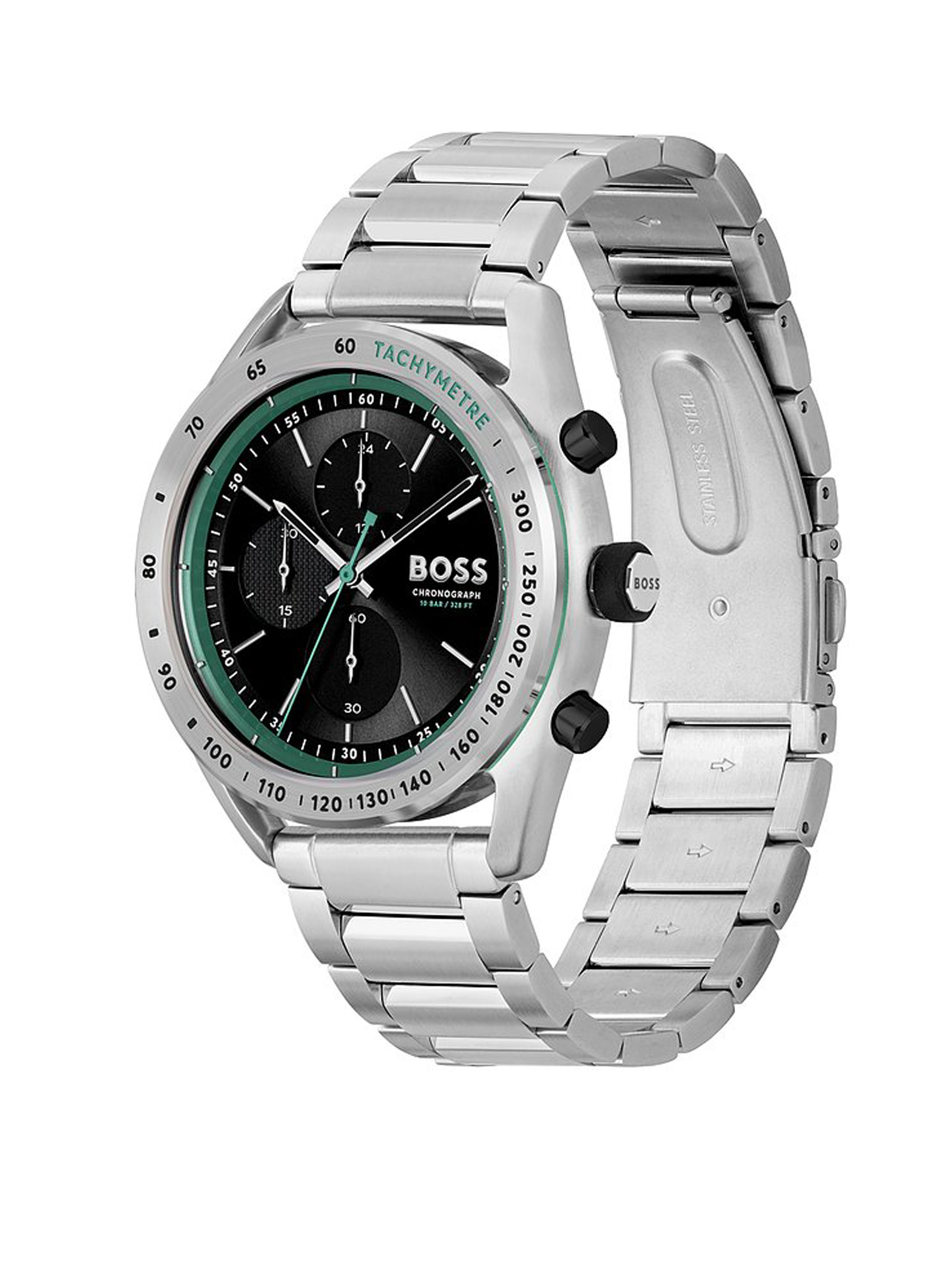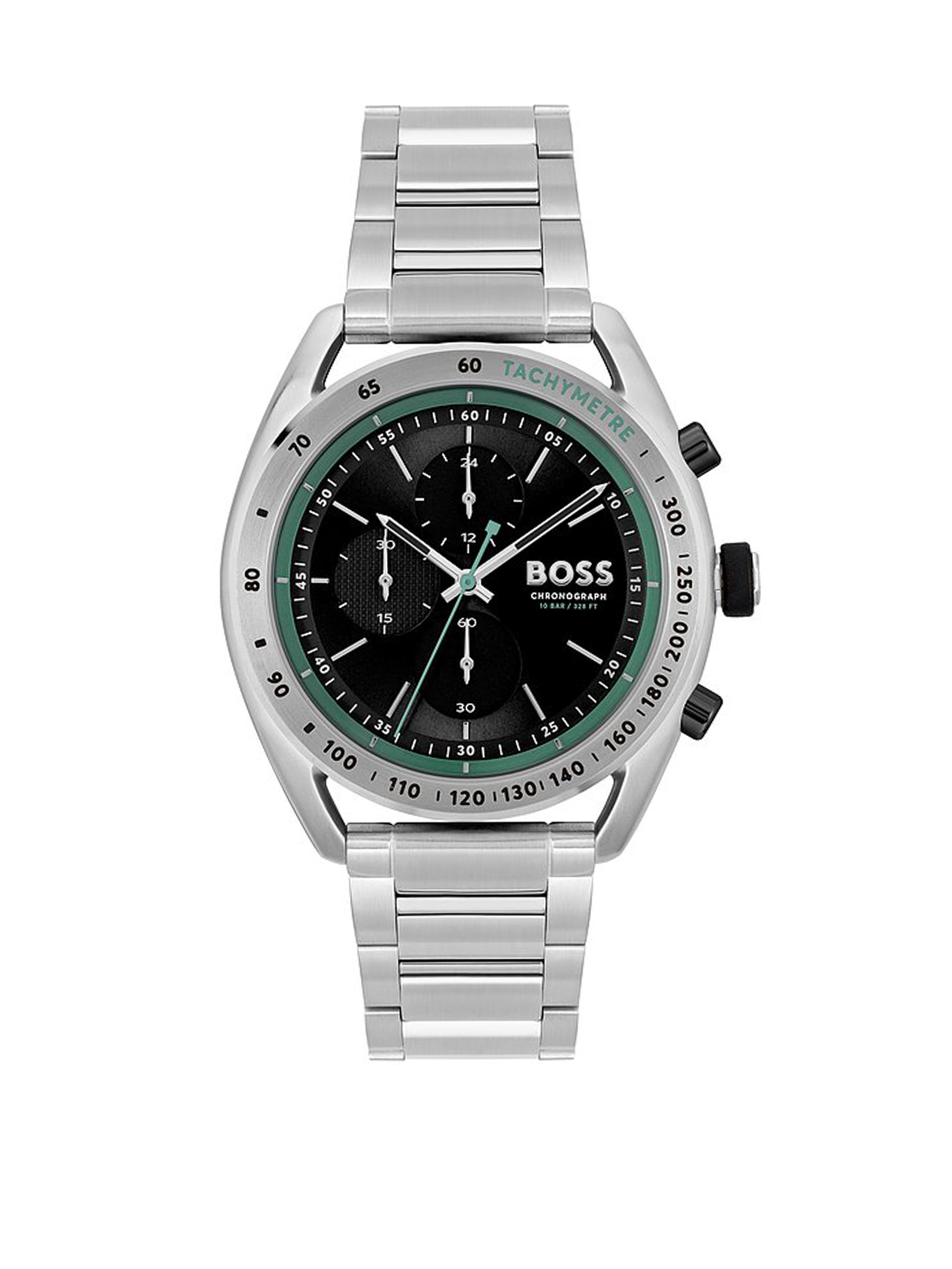 - Analoges, schwarzes Ziffernblatt mit vier Anzeigen