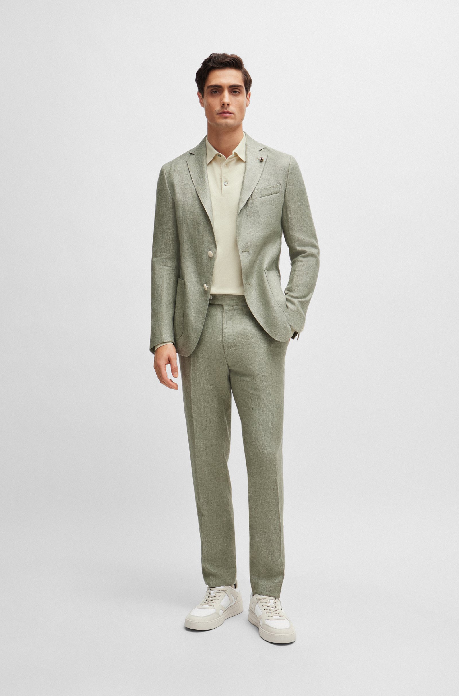 Schmal geschnittene BOSS Business-Hose für Herren aus einem elastischen Leinen-Mix mit filigranem Muster.