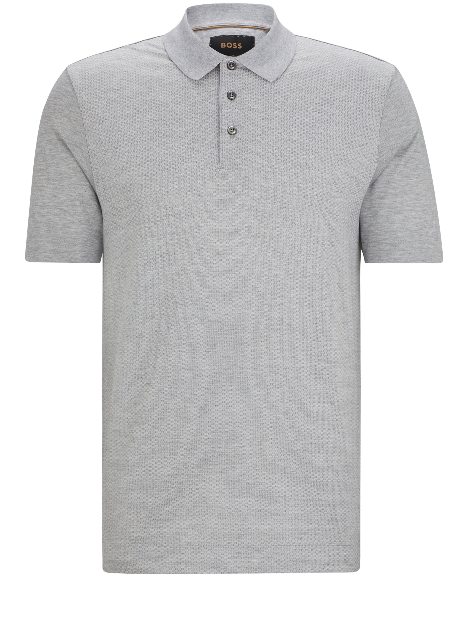 Legeres BOSS Herren-Poloshirt. Das Polo ist aus einem besonders soften Baumwoll-Mix mit Seiden-Anteil und verschiedenen Strukturen gefertigt, die für einen zeitgemäßen Look sorgen. Der gerade geschnittene Style bietet eine cleane Silhouette.