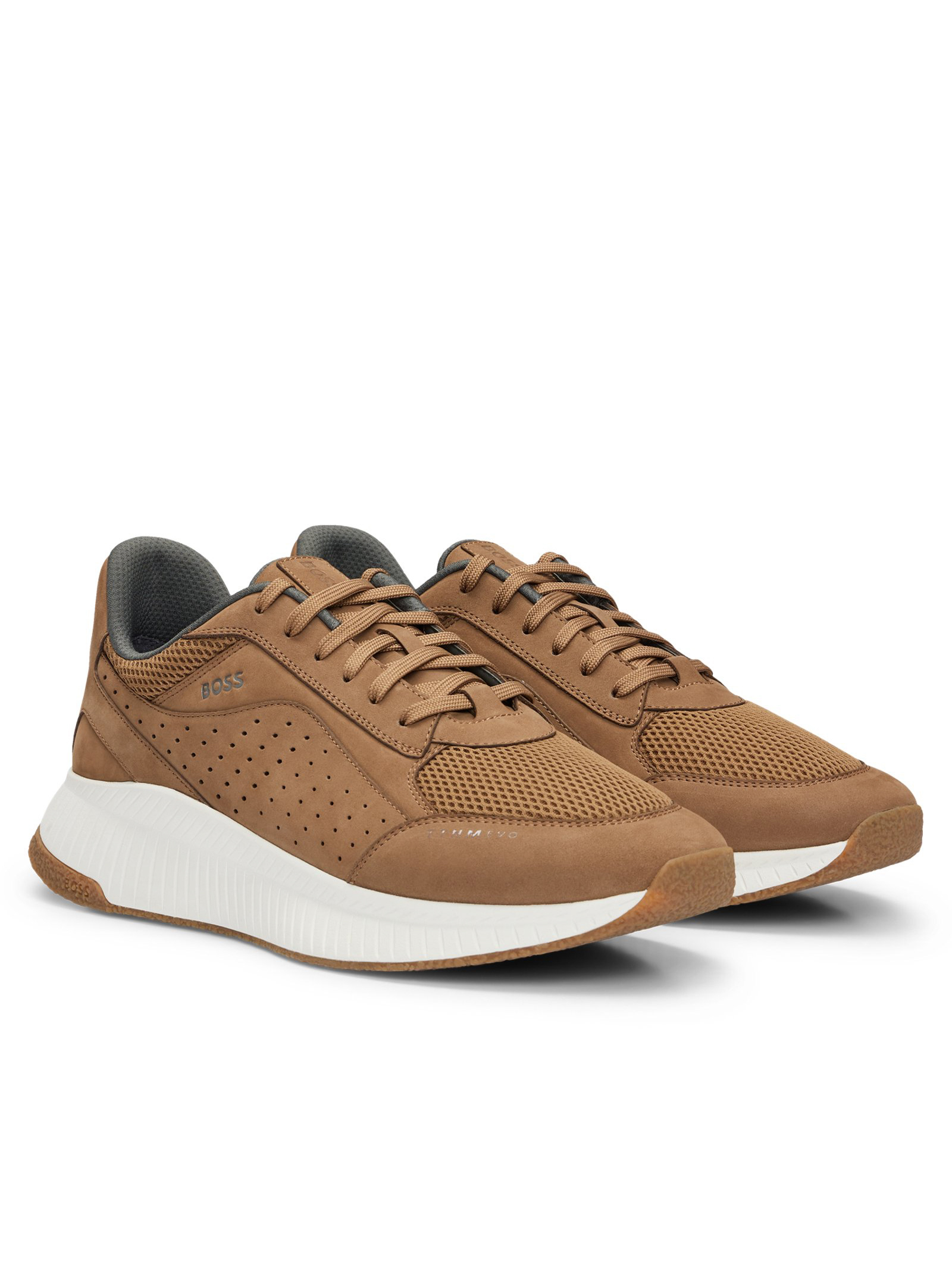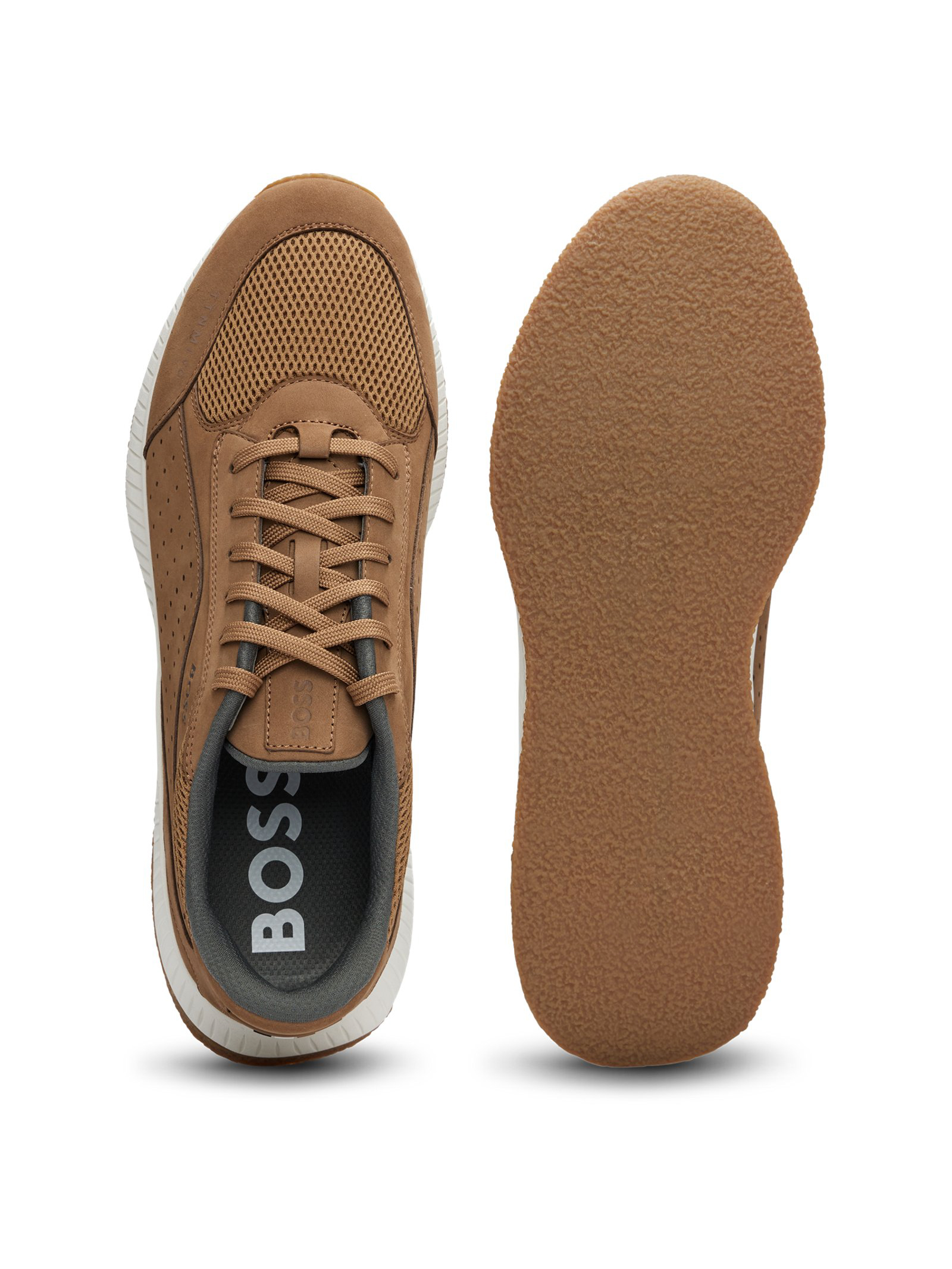 Legere BOSS Herren-Sneakers zum Schnüren mit einem kühlenden Innenfutter. Die Schuhe aus softem Leder sind mit perforierten Details und gestricktem Mesh versehen.