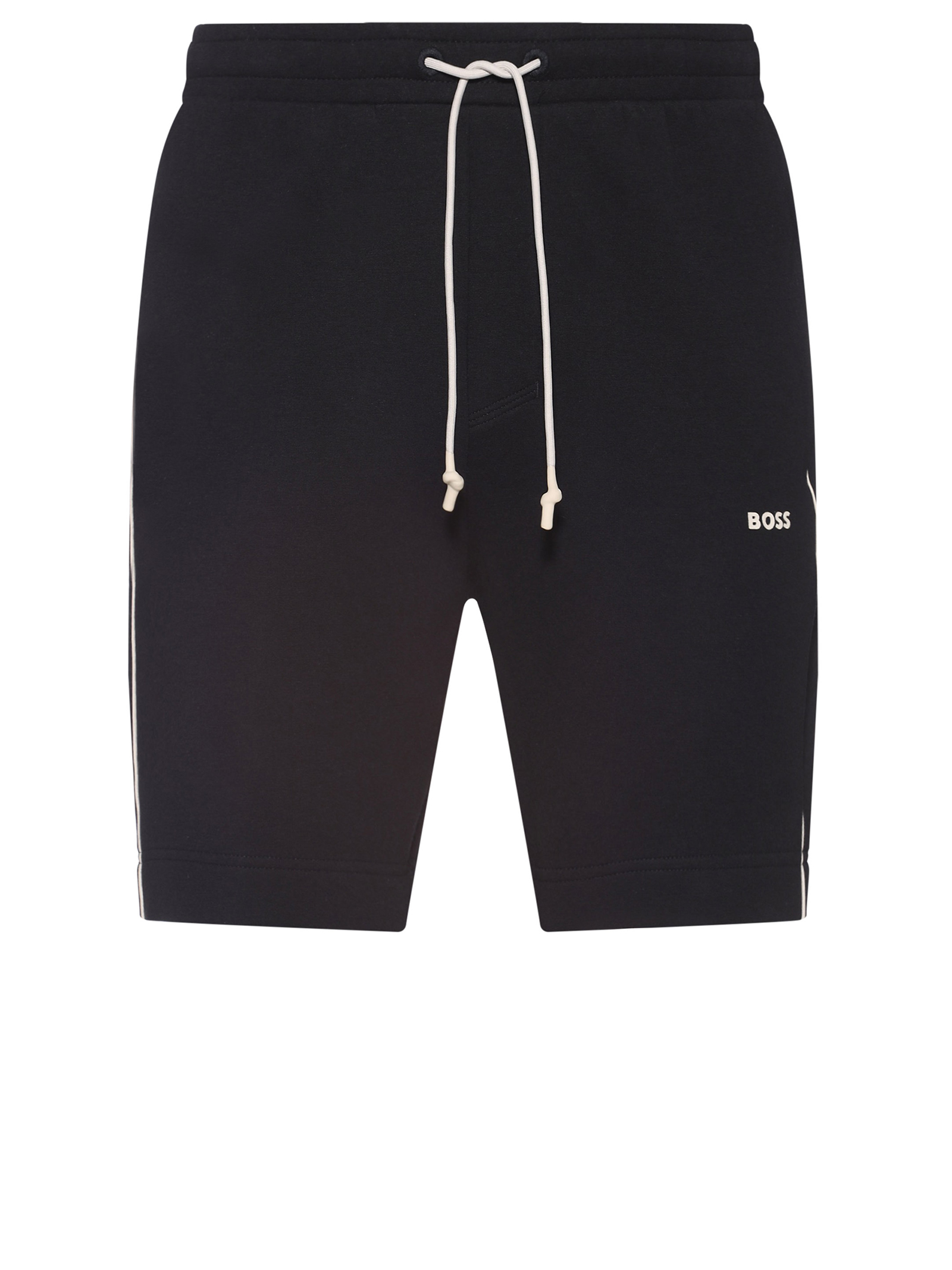 BOSS Athleisure-Shorts mit Logo, kontrastfarbenen Paspeln und geprägtem Artwork. Die gerade geschnittene Hose ist aus komfortabler Stretch-Baumwolle gefertigt.
