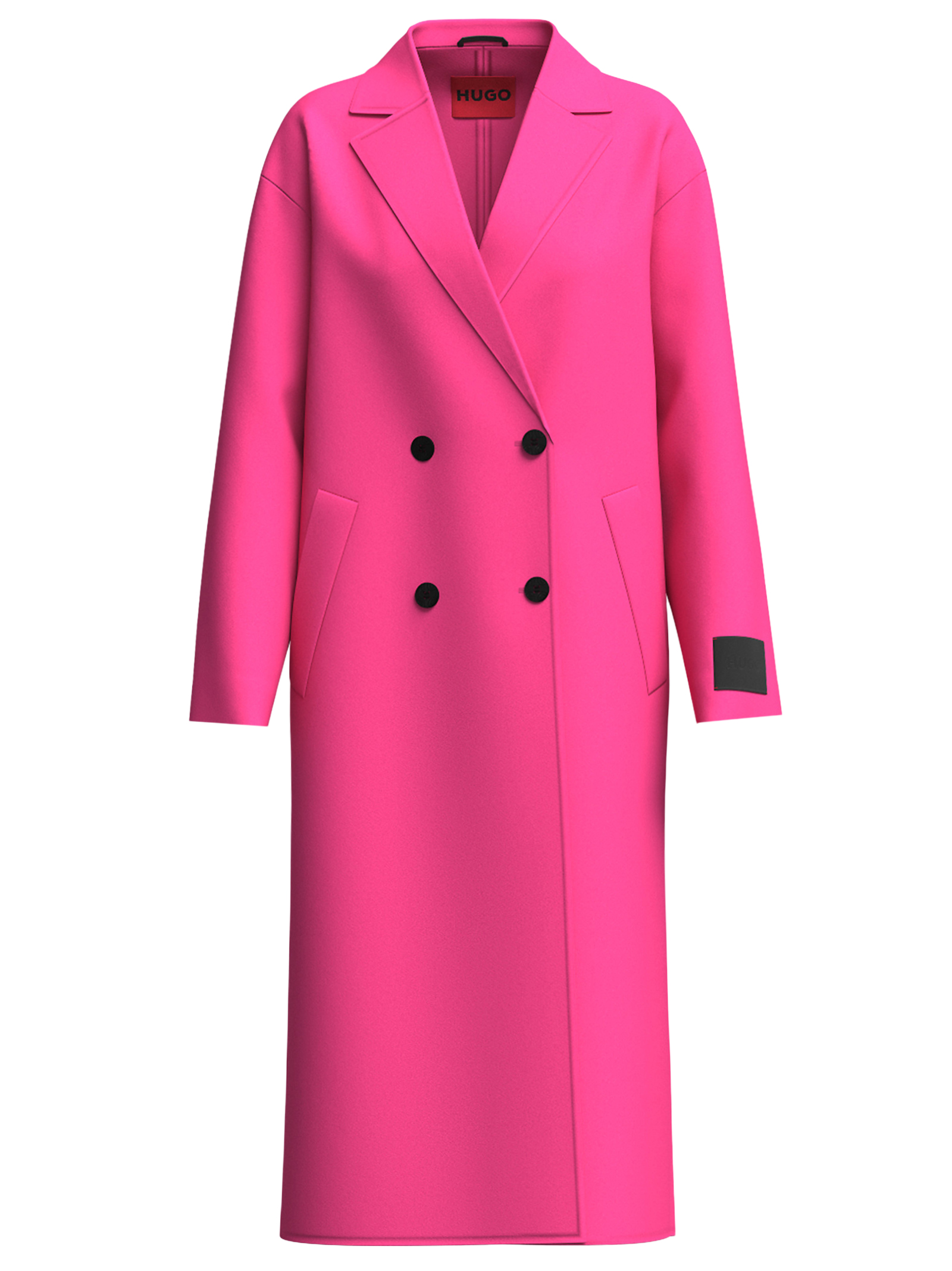 HUGO Mantel mit Oversize-Passform. Die lang geschnittene Outerwear ohne Innenfutter ist aus einem zweiseitigen Gewebe mit Woll-Anteil gefertigt und mit einer zweireihigen Knopfleiste versehen.