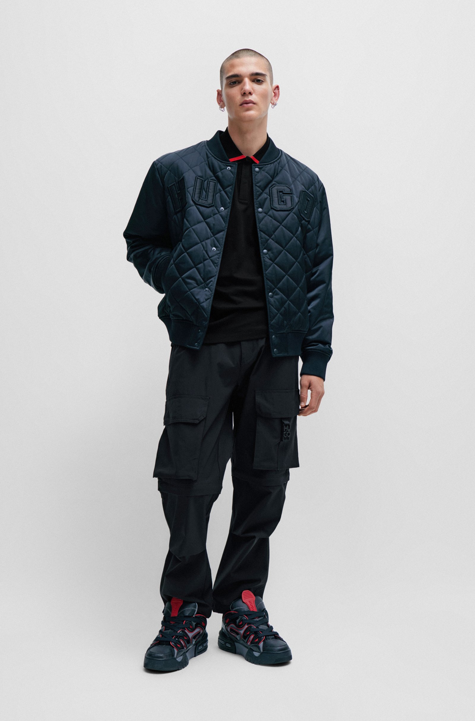 Gerade geschnittenes HUGO Poloshirt aus Baumwoll-Jersey mit Paspeln am Kragen, verdeckter Knopfleiste und Logo-Print.