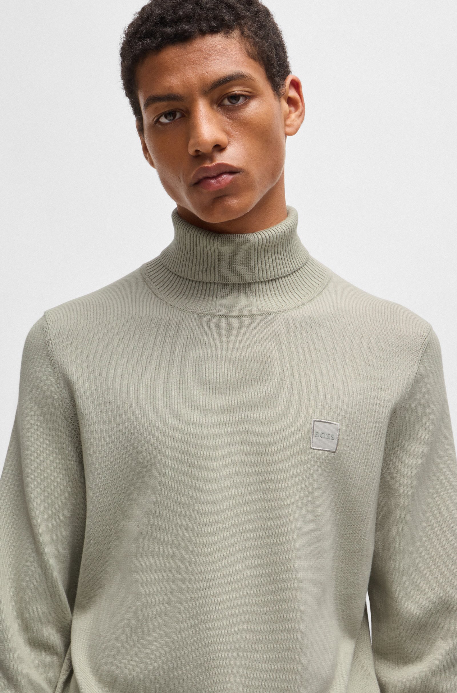 Softer, atmungsaktiver BOSS Rollkragenpullover. Der gerade geschnittene Style aus einem Baumwoll-Mix mit Kaschmir-Anteil ist mit einem gewebten Logo-Etikett versehen. Dieses Produkt wird teilweise mit Bio-Baumwolle gefertigt. Unsere Bio-Standards erlauben keine Verwendung von synthetischen Düngemitteln, Pestiziden oder gentechnisch verändertem Saatgut.