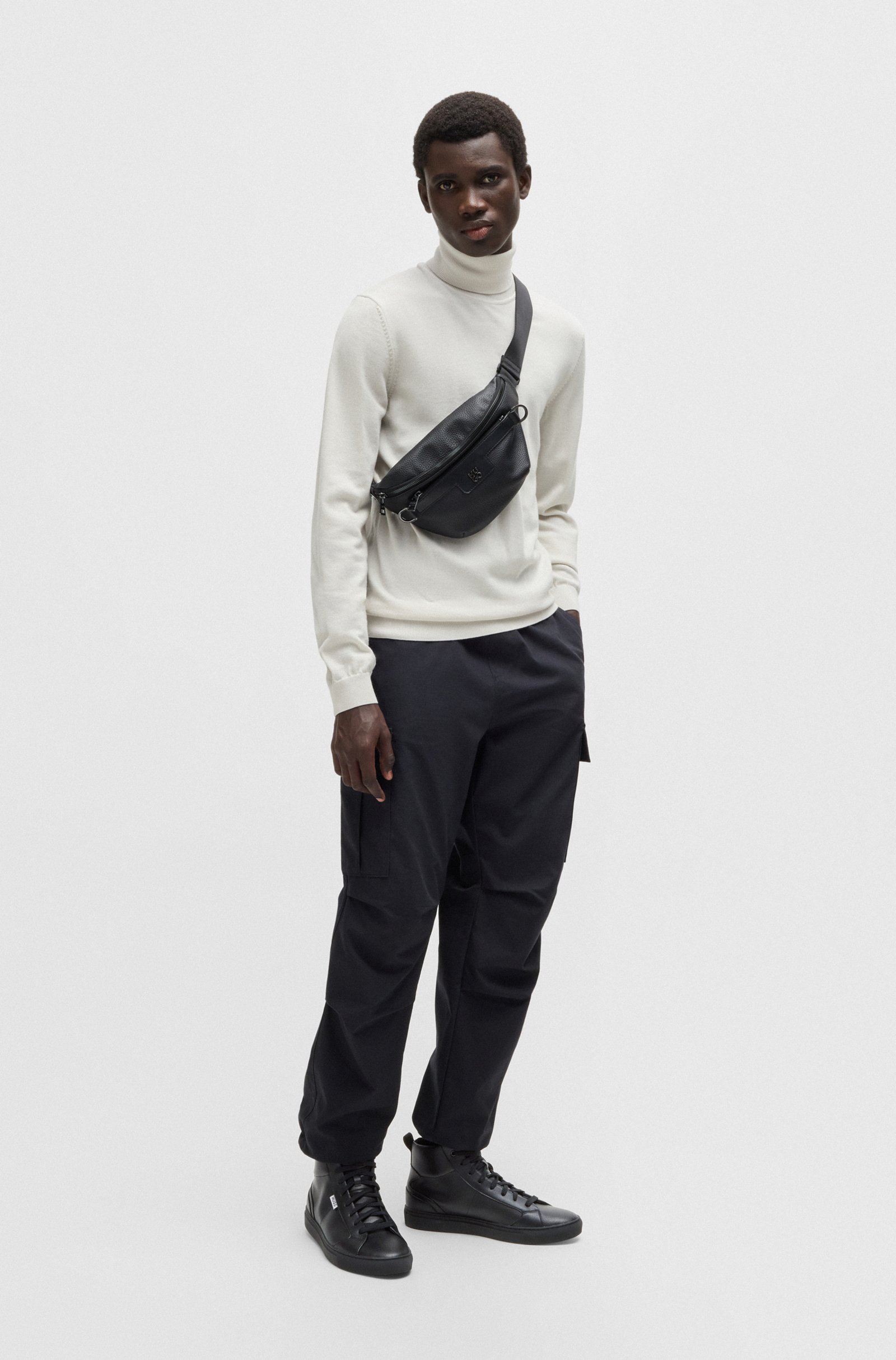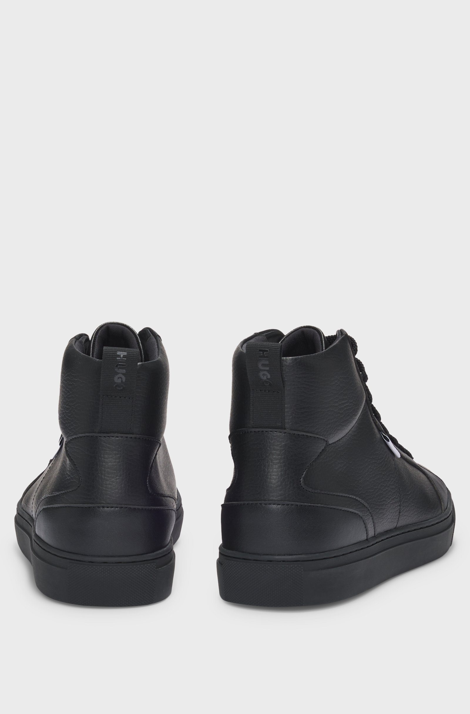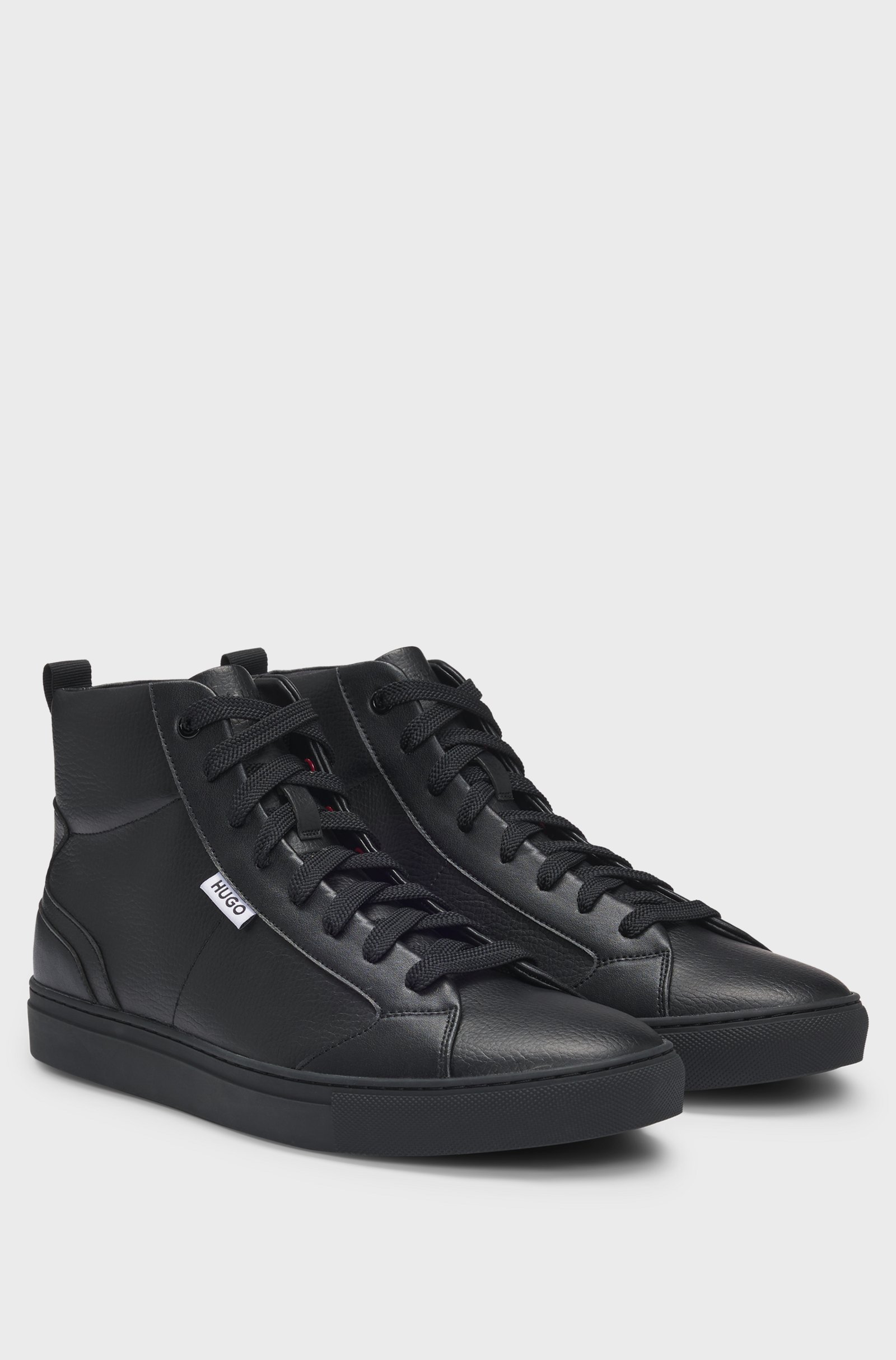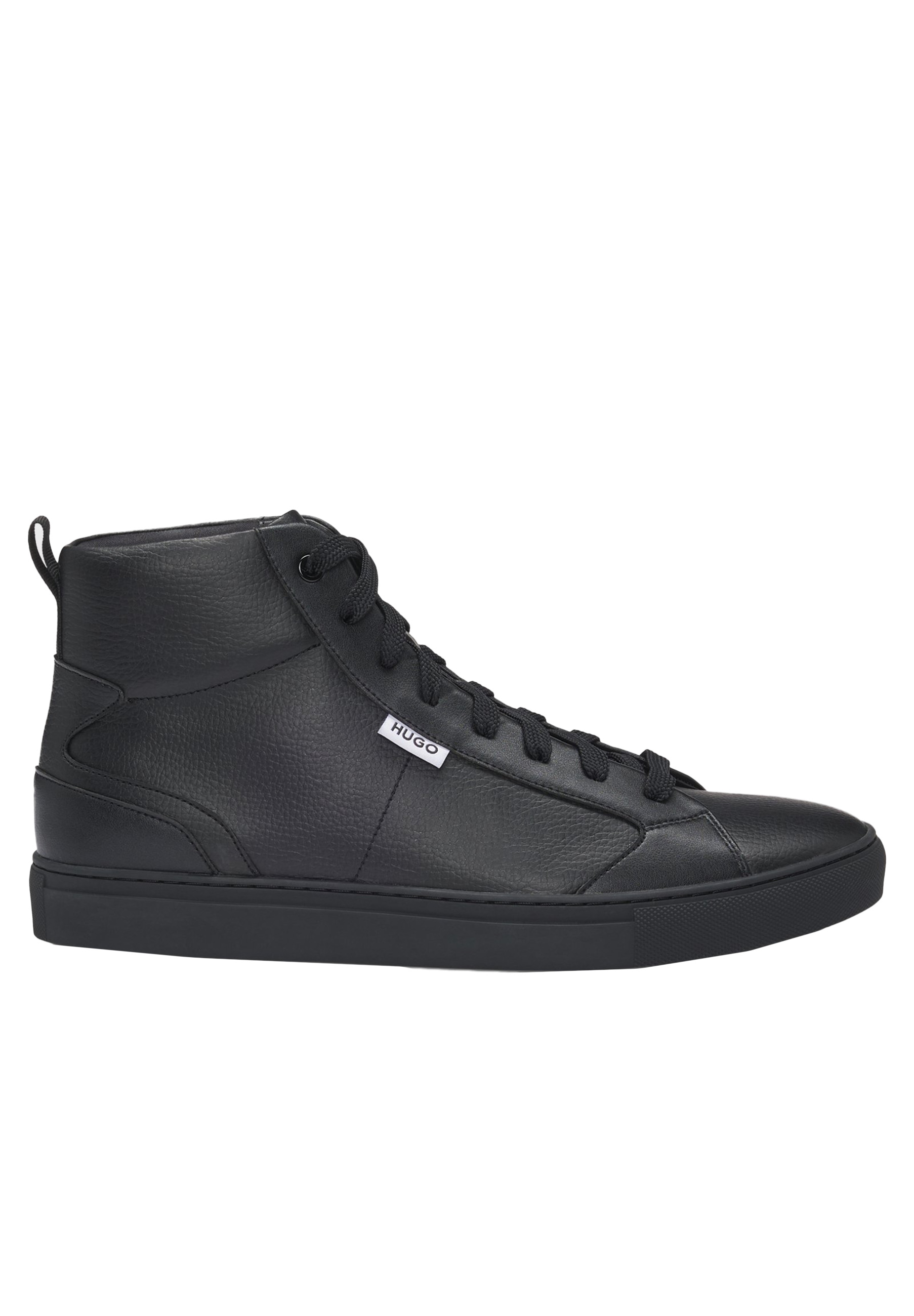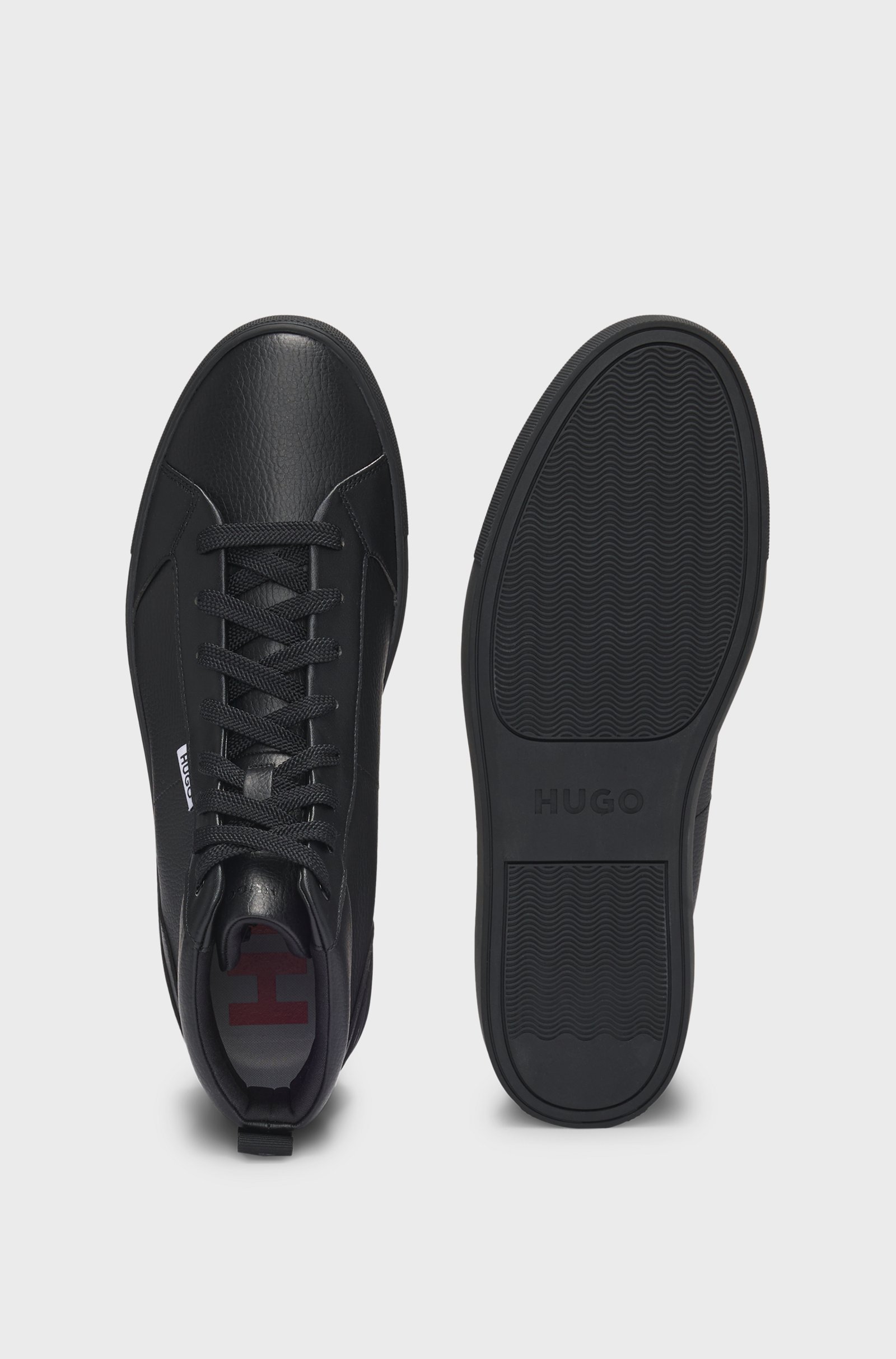 HUGO Sneakers mit Cupsohlen. Die Schuhe mit Signature-Logo-Etikett sind aus einem synthetisch beschichteten Textil mit genarbter Struktur gefertigt. Synthetisch beschichtetes Textil, manchmal auch als Kunstleder bezeichnet, ist ein Gewebe, das Echtleder ähnelt und/oder ein mattes, glänzendes, glattes oder strukturiertes beschichtetes Erscheinungsbild aufweist.