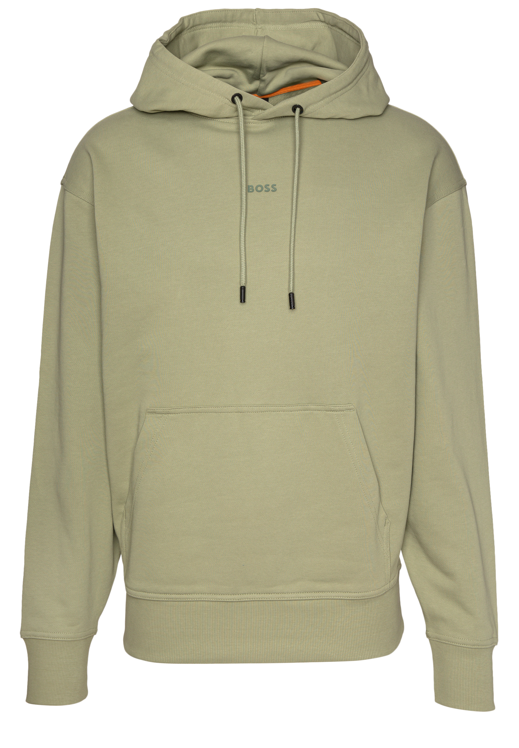 Charakteristischer BOSS Hoodie aus French Terry mit gerader Passform und kleinem kontrastfarbenem Logo-Print auf der Brust.