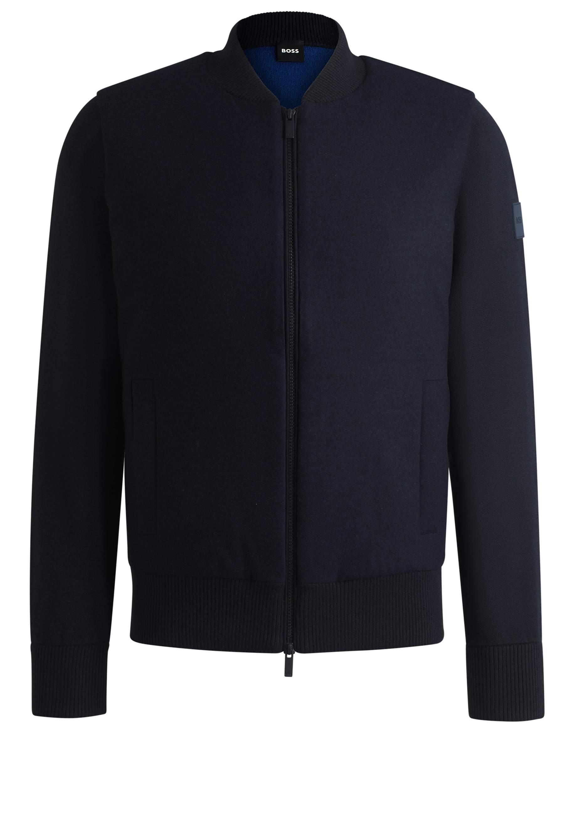 Gerade geschnittene BOSS Jacke mit Reißverschluss und wattierter Vorderseite. Die Outerwear punktet mit hoher Performance und ist aus verschiedenen Materialien gefertigt, darunter ein Flanell aus einem Material-Mix mit Woll-Anteil.