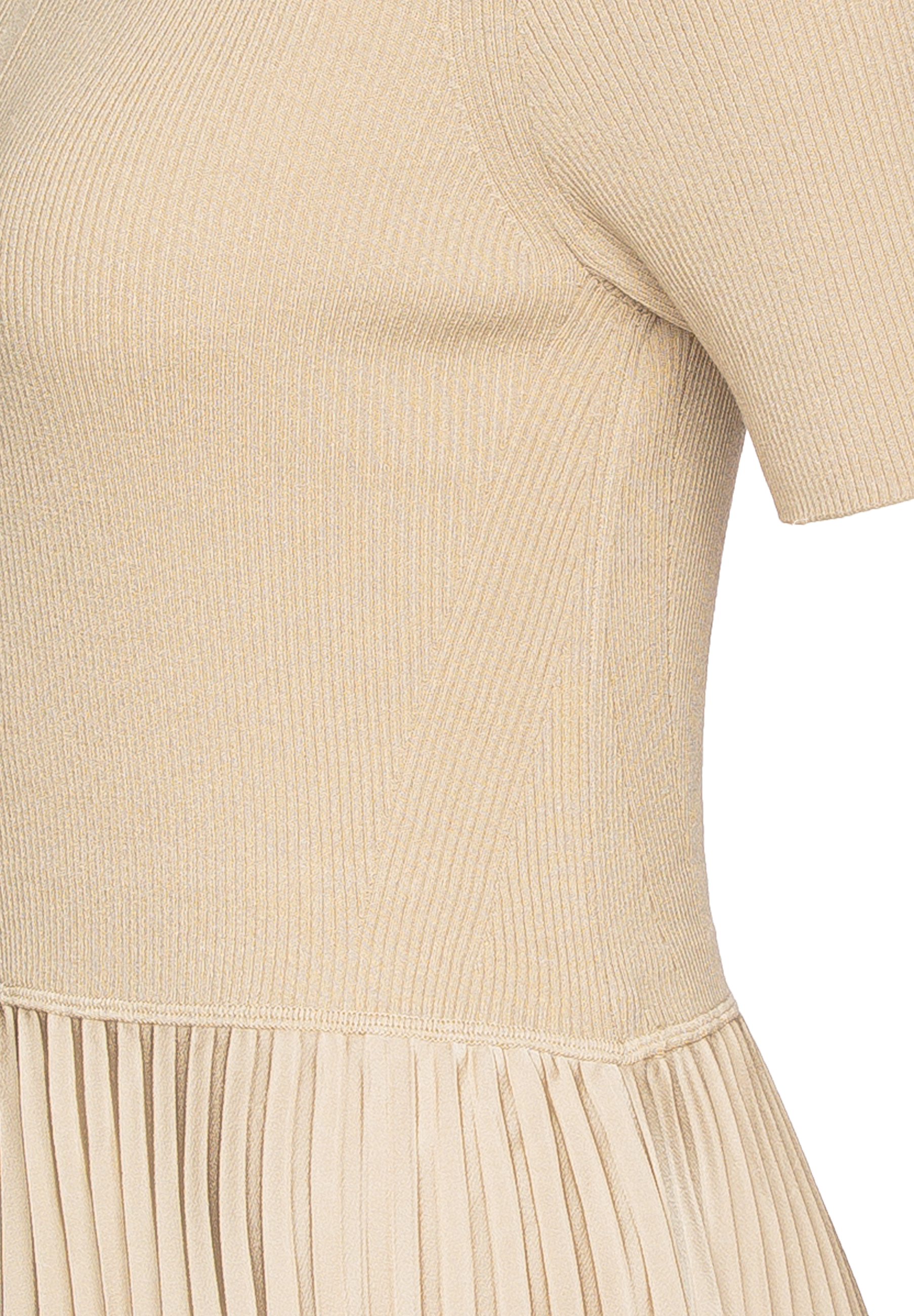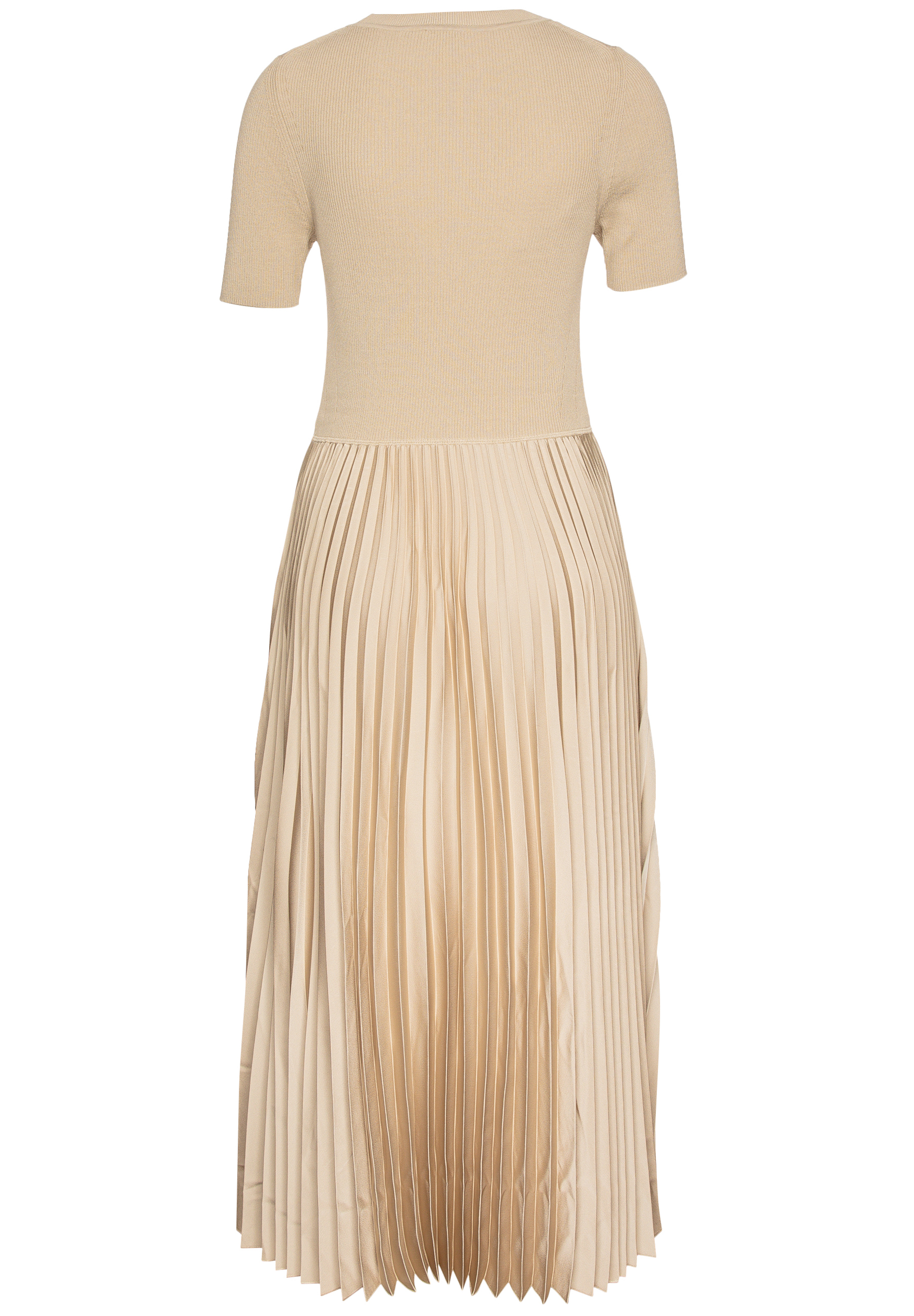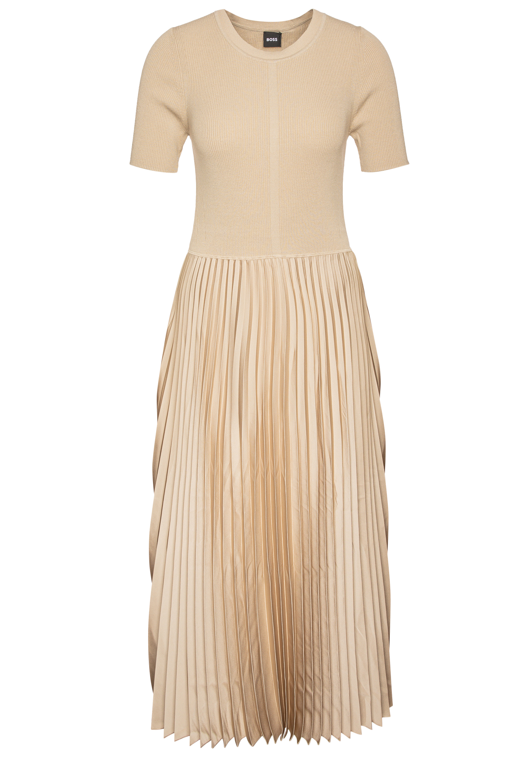 Figurbetontes BOSS Kleid aus einem Material-Mix. Der zeitlose Style besteht aus einem gestrickten Oberteil mit kurzen Ärmeln und einem fließenden Rock mit Plissee-Falten. Dieses Produkt wird mit Zellulosefasern gefertigt, die aus dem natürlichen Rohstoff Holz aus kontrolliert bewirtschafteten Wäldern gewonnen werden. Gemeinsam mit externen Organisationen setzen wir uns für den respektvollen Umgang mit Urwäldern und gefährdeten Wäldern ein.
