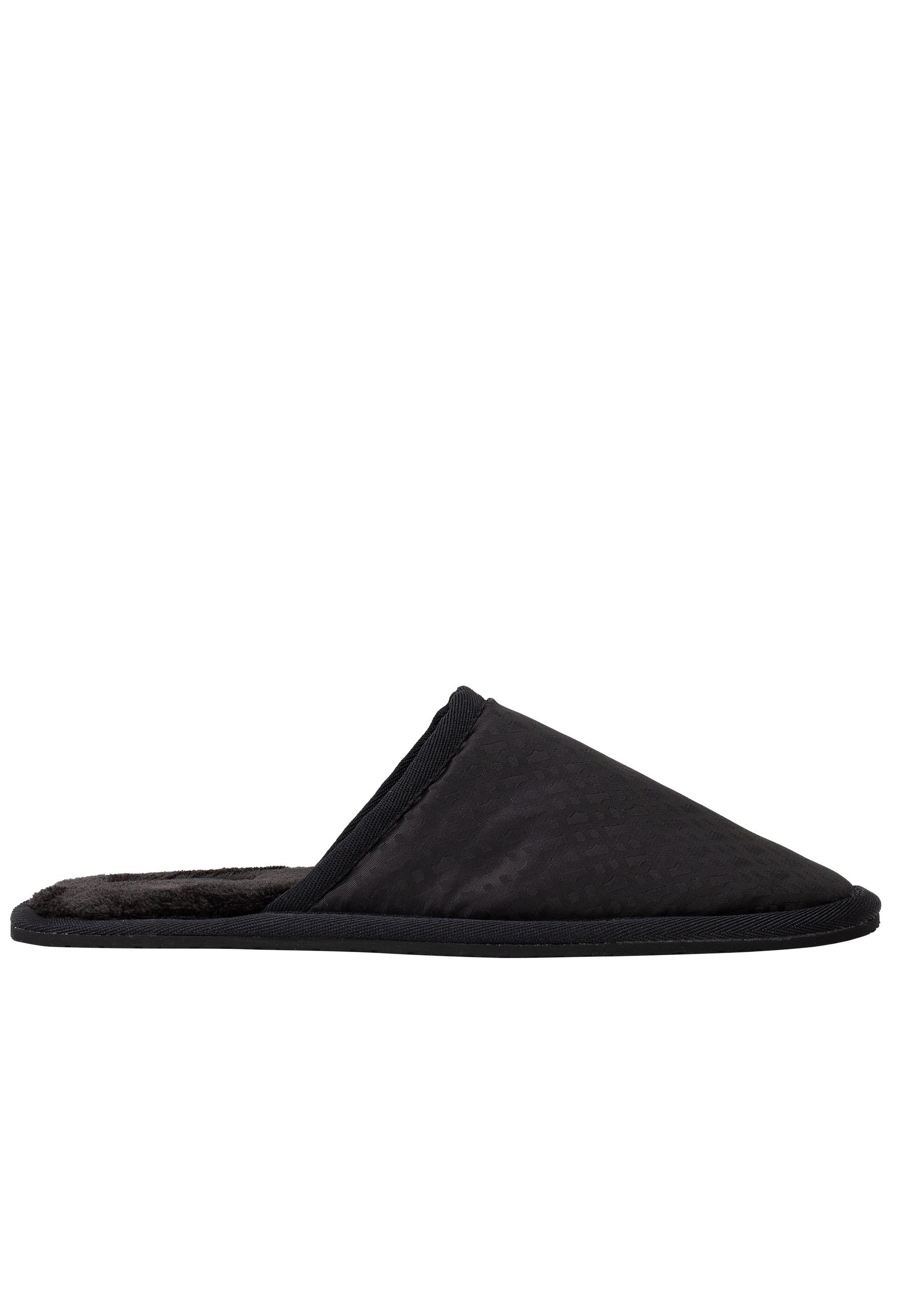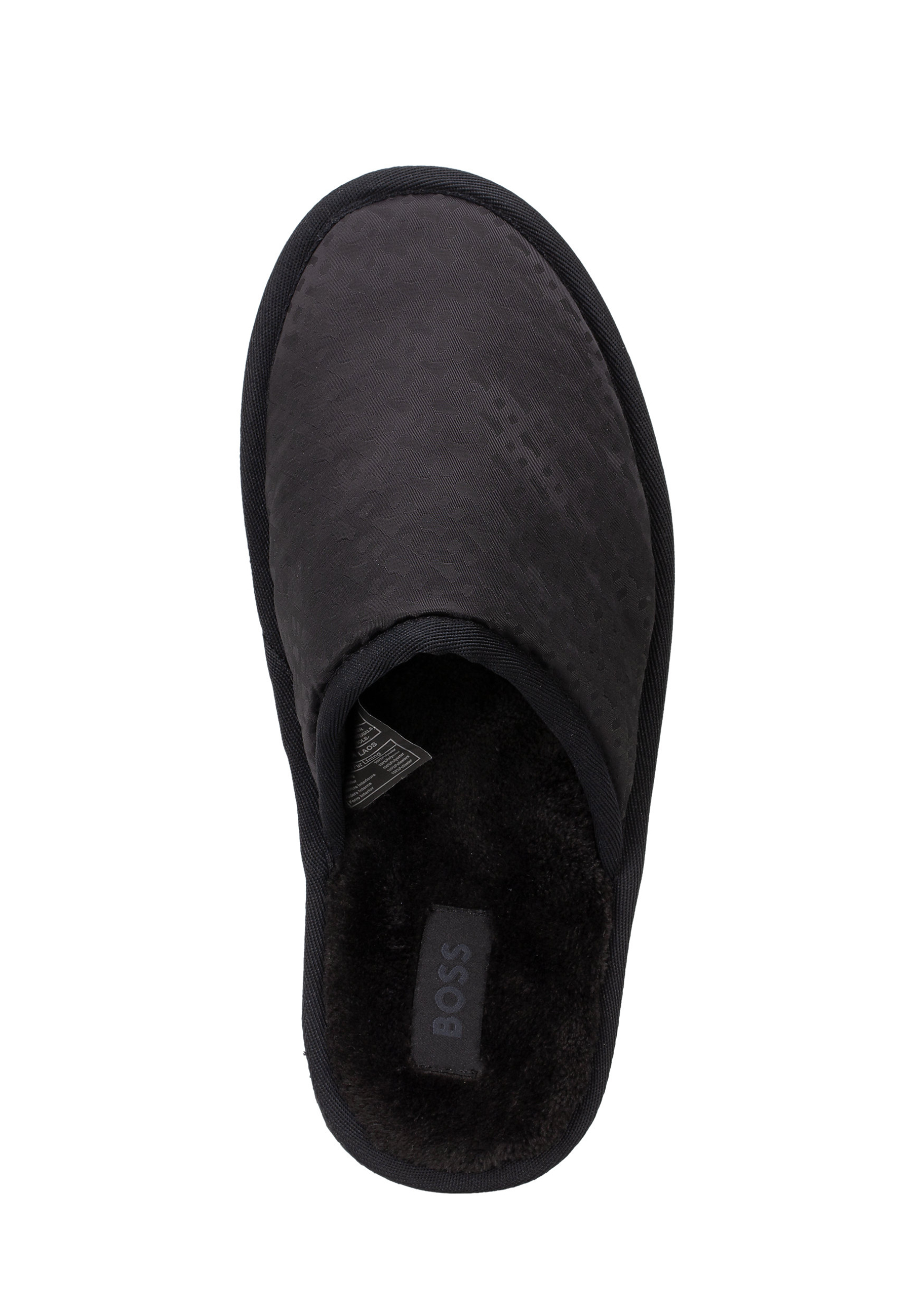 Elegante BOSS Hausschuhe mit dezentem Monogramm-Muster. Die Schuhe mit offener Ferse sind mit einem weichen Fleece-Innenfutter versehen.
