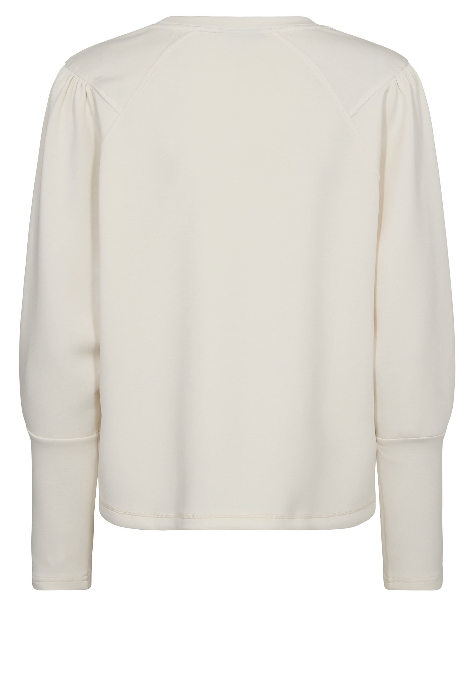 • Lange Ärmel mit deszenter Raffung an der Schulter