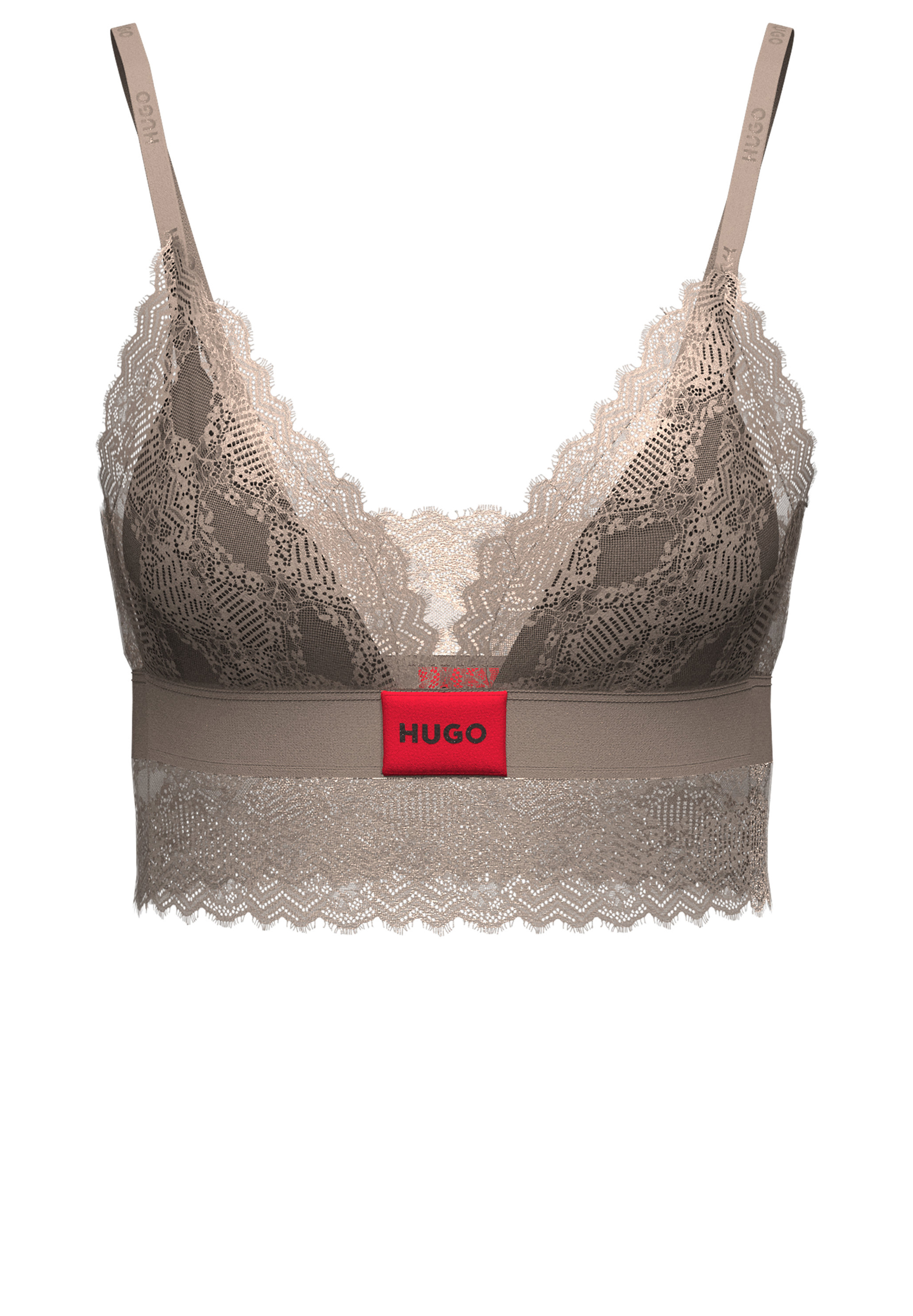 Femininer HUGO BH mit rotem Logo-Label. Das Accessoire mit verstellbaren Trägern zeigt sich mit eleganten Spitzenbesätzen.