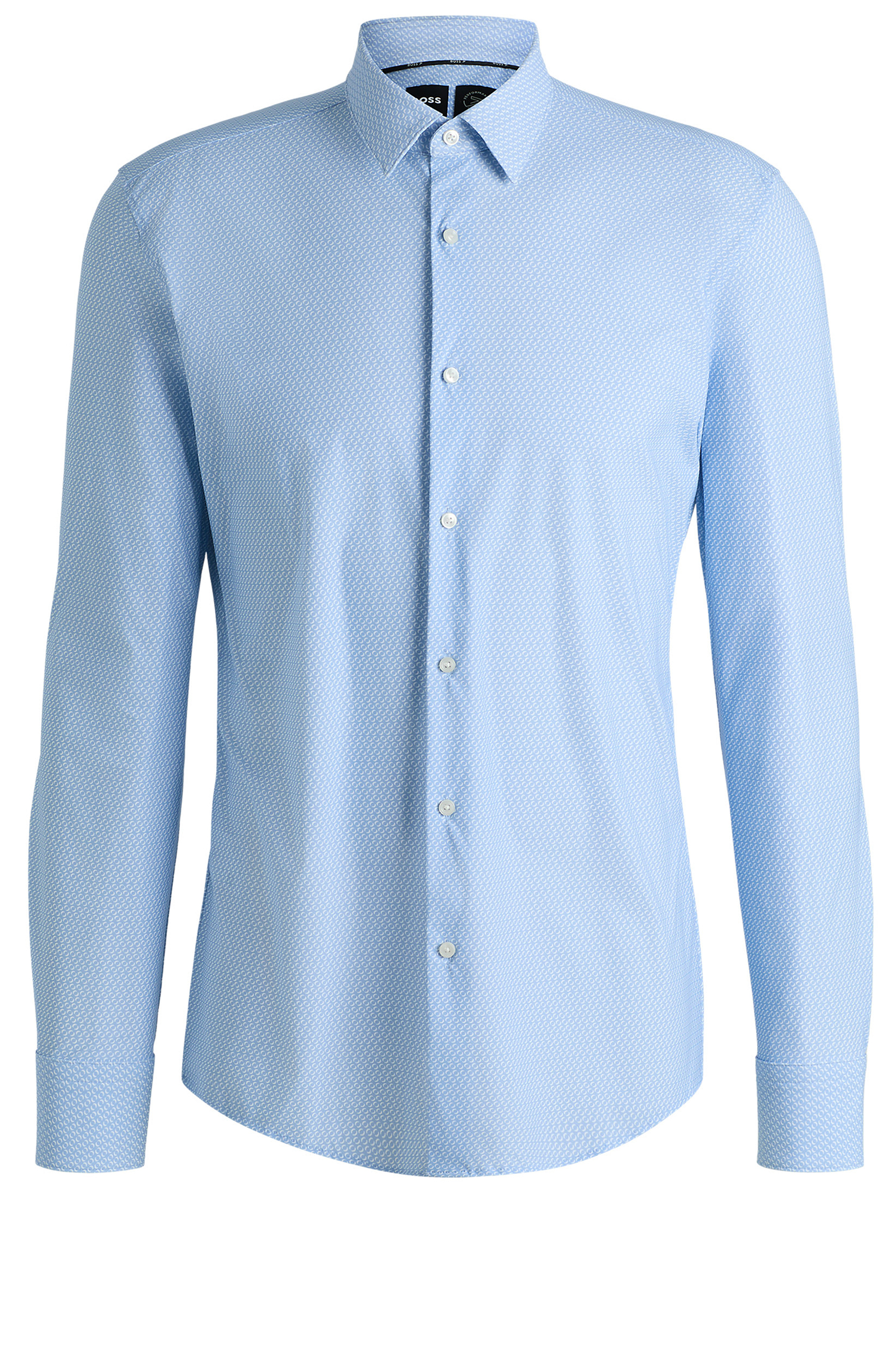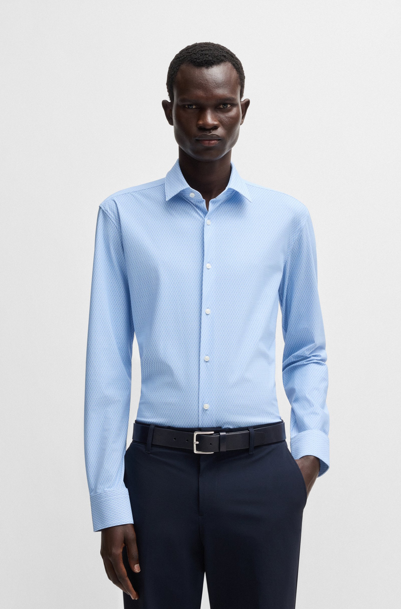 Das fortschrittliche BOSS Hemd bietet auch an langen Tagen optimalen Tragekomfort. Mit einem zeitgemäßen Motiv bedruckt und schmal geschnitten.