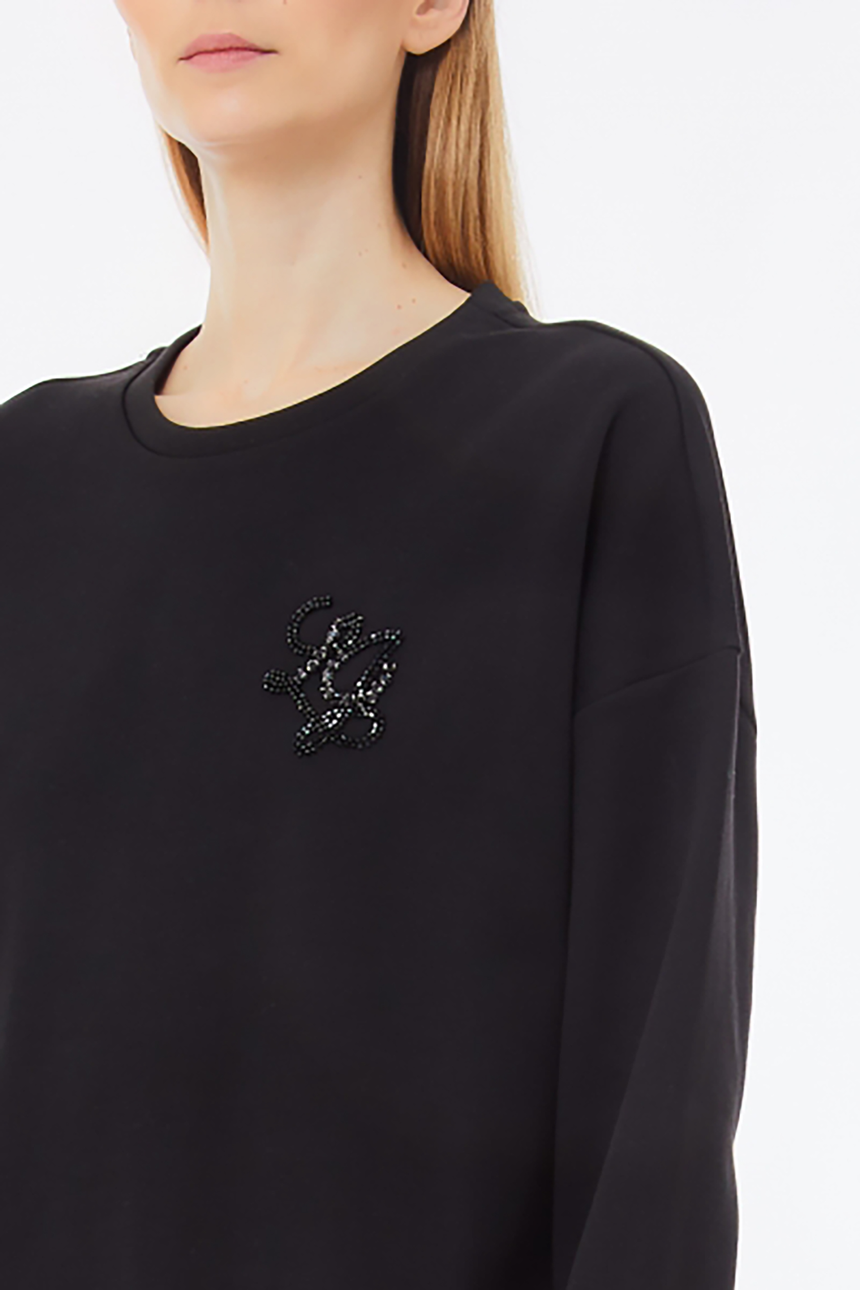 • Logo-Schriftzug mit Strasssteinen auf der Brust