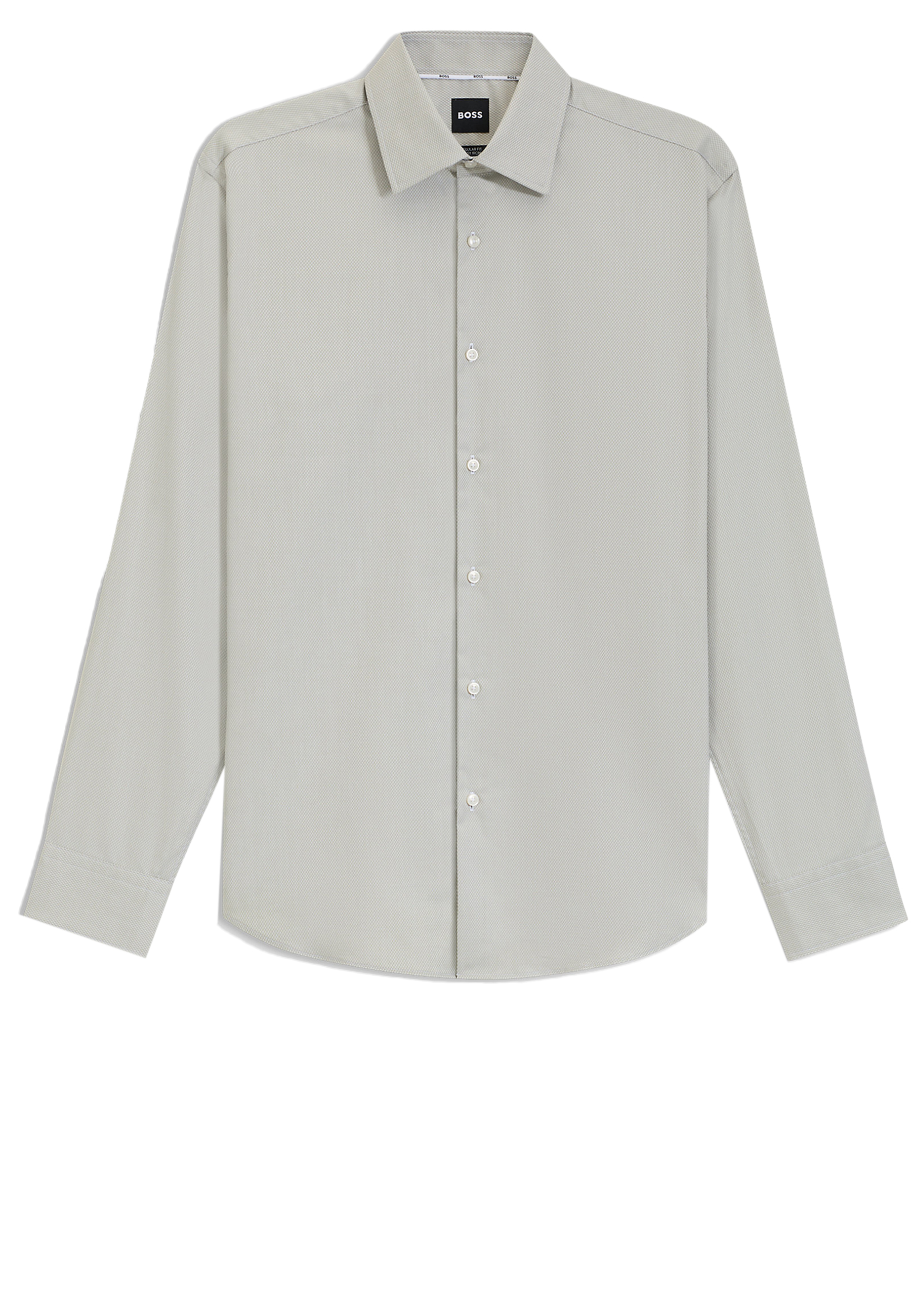 Elegantes BOSS Hemd mit gerader Passform und bügelleichtem Finish. Der Style aus elastischer Baumwolle besitzt eine feine Struktur.