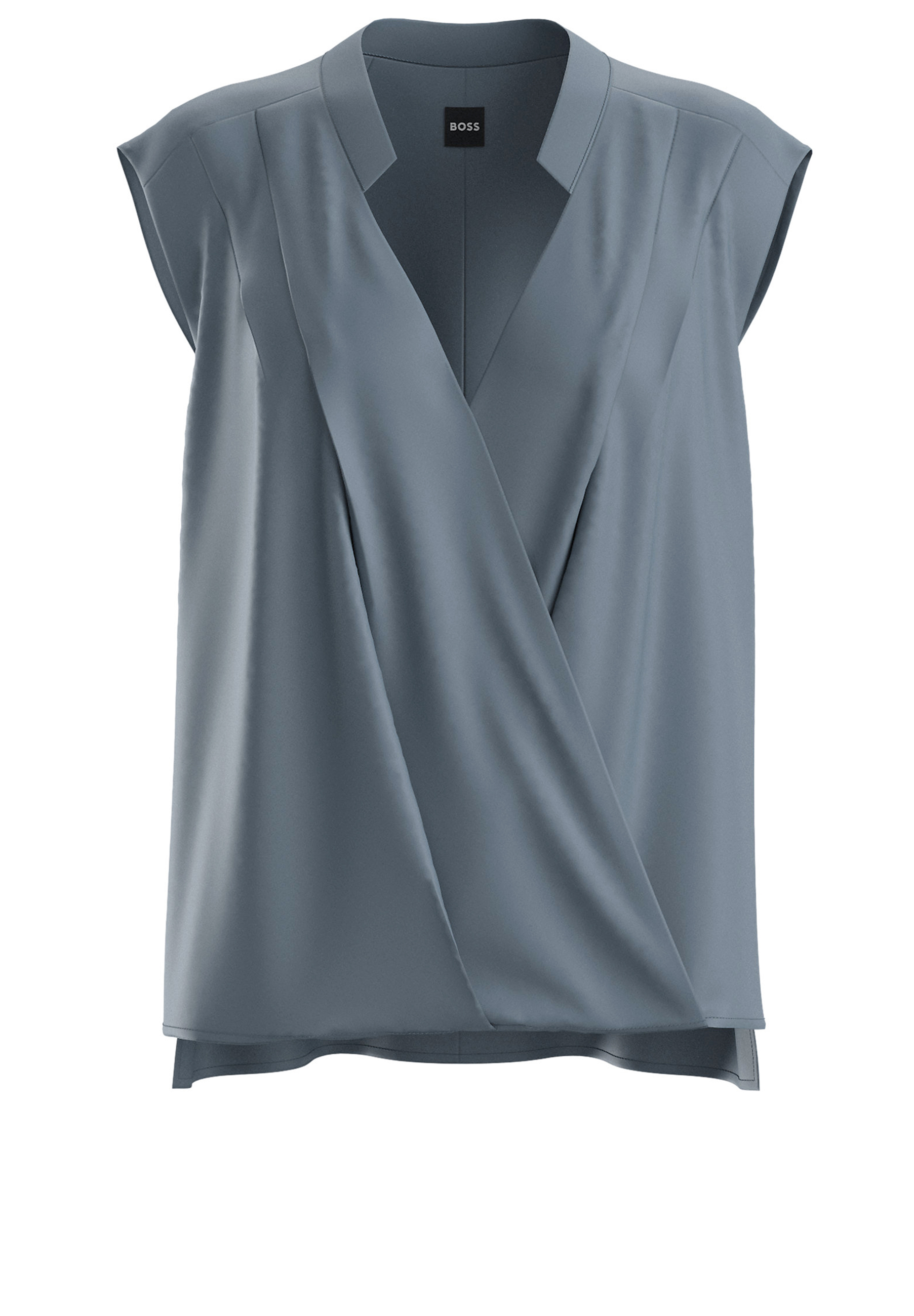Die gerade geschnittene BOSS Bluse mit Kragen-Detail ist aus drapiertem Satin aus elastischer Seide gefertigt. Zeitgemäße Wickelfront.