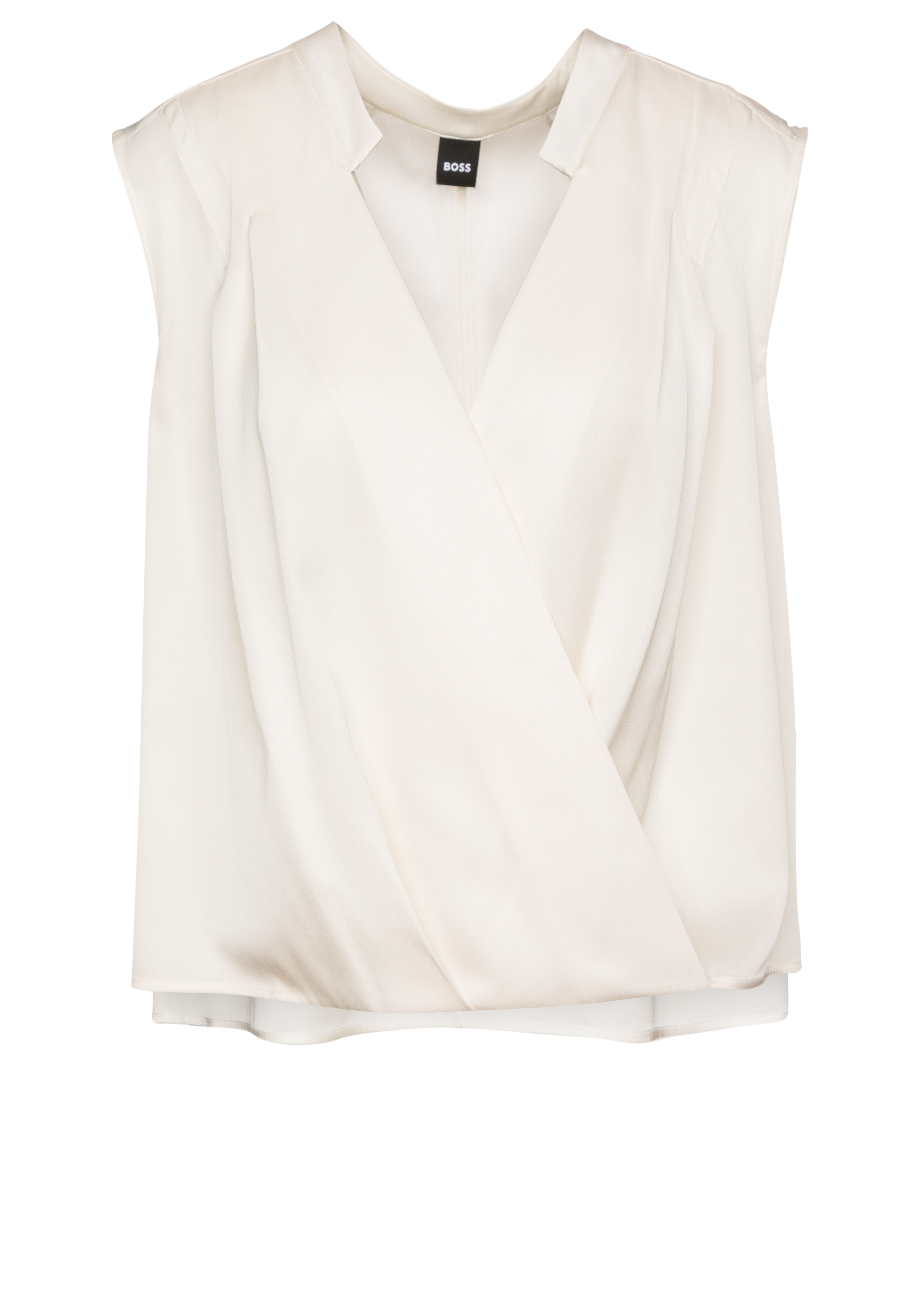 Die gerade geschnittene BOSS Bluse mit Kragen-Detail ist aus drapiertem Satin aus elastischer Seide gefertigt. Zeitgemäße Wickelfront.