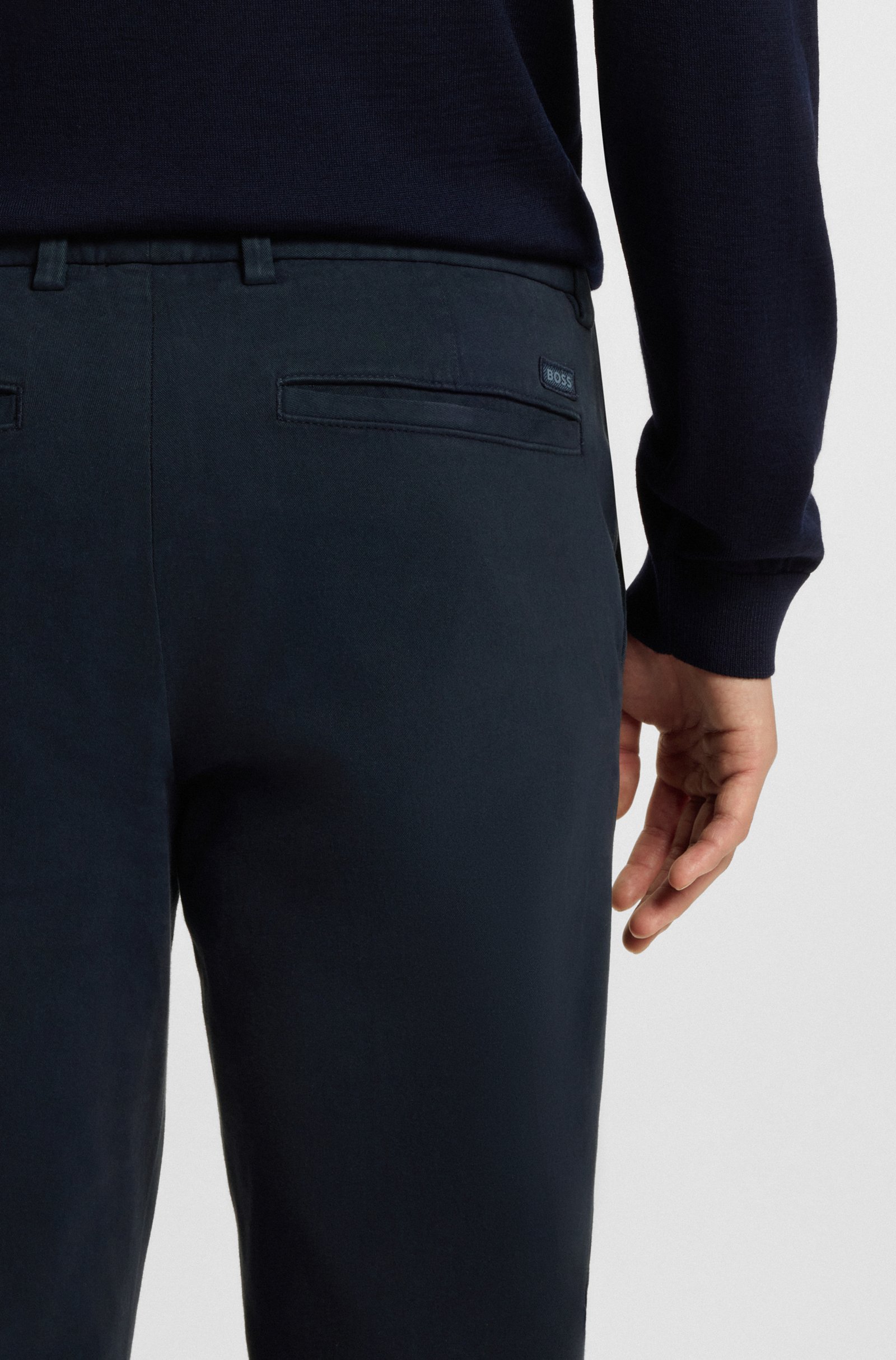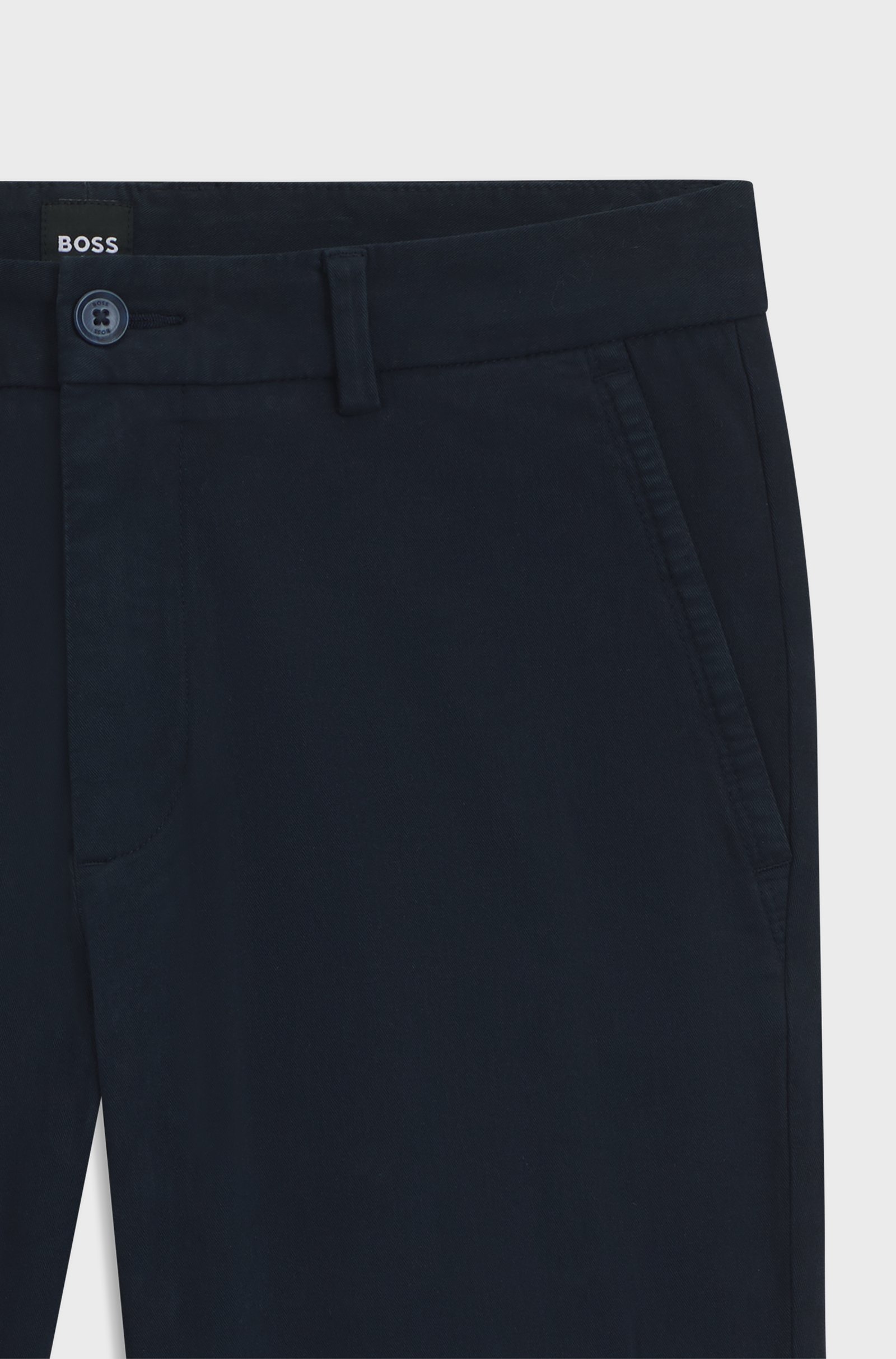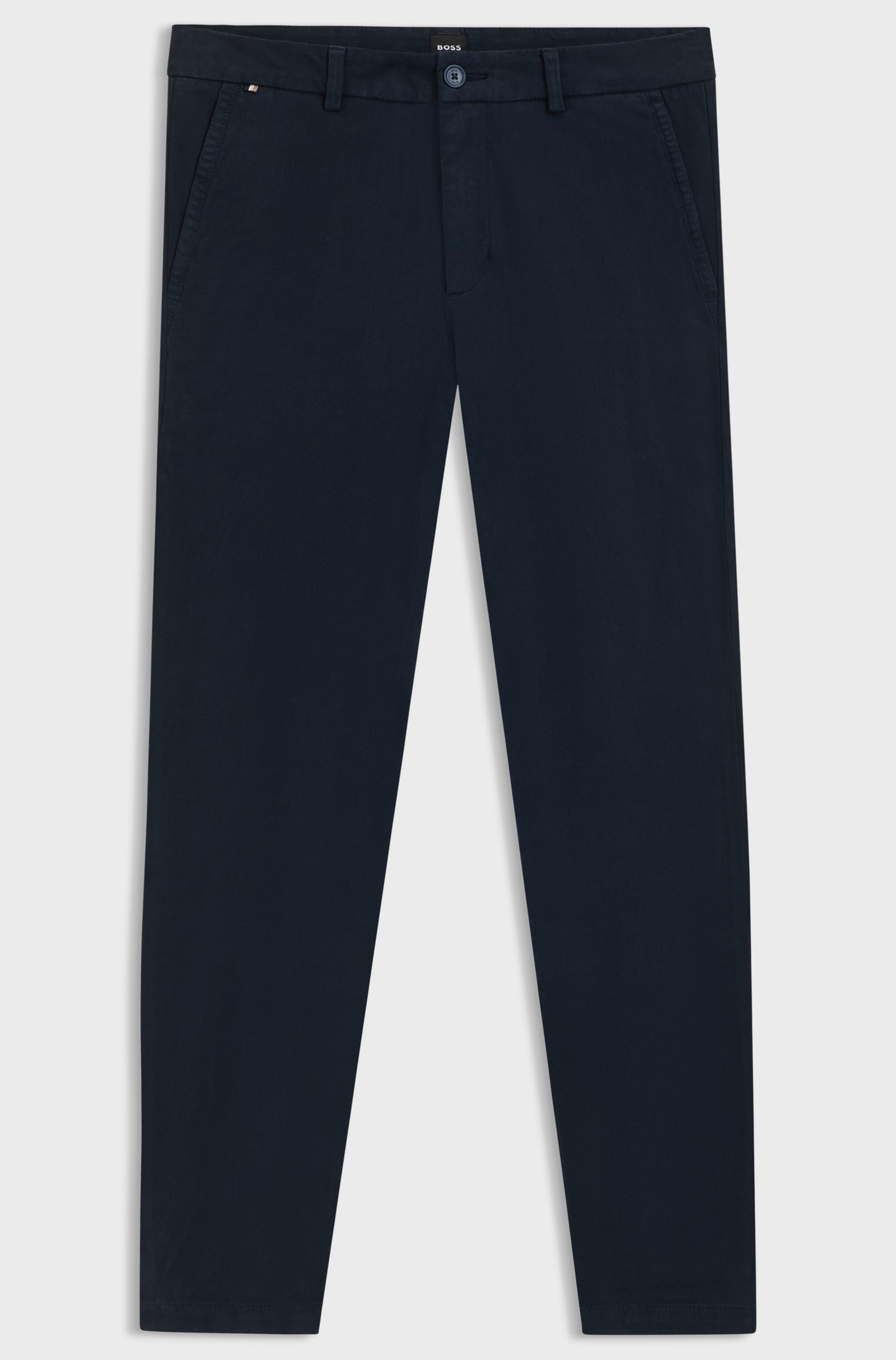 Die BOSS Hose aus Baumwoll-Twill mit Elasthan-Anteil und sanft gebürstetem Finish ist ein tolles Piece für Casual-Looks. Zeitgemäße schmale Passform.