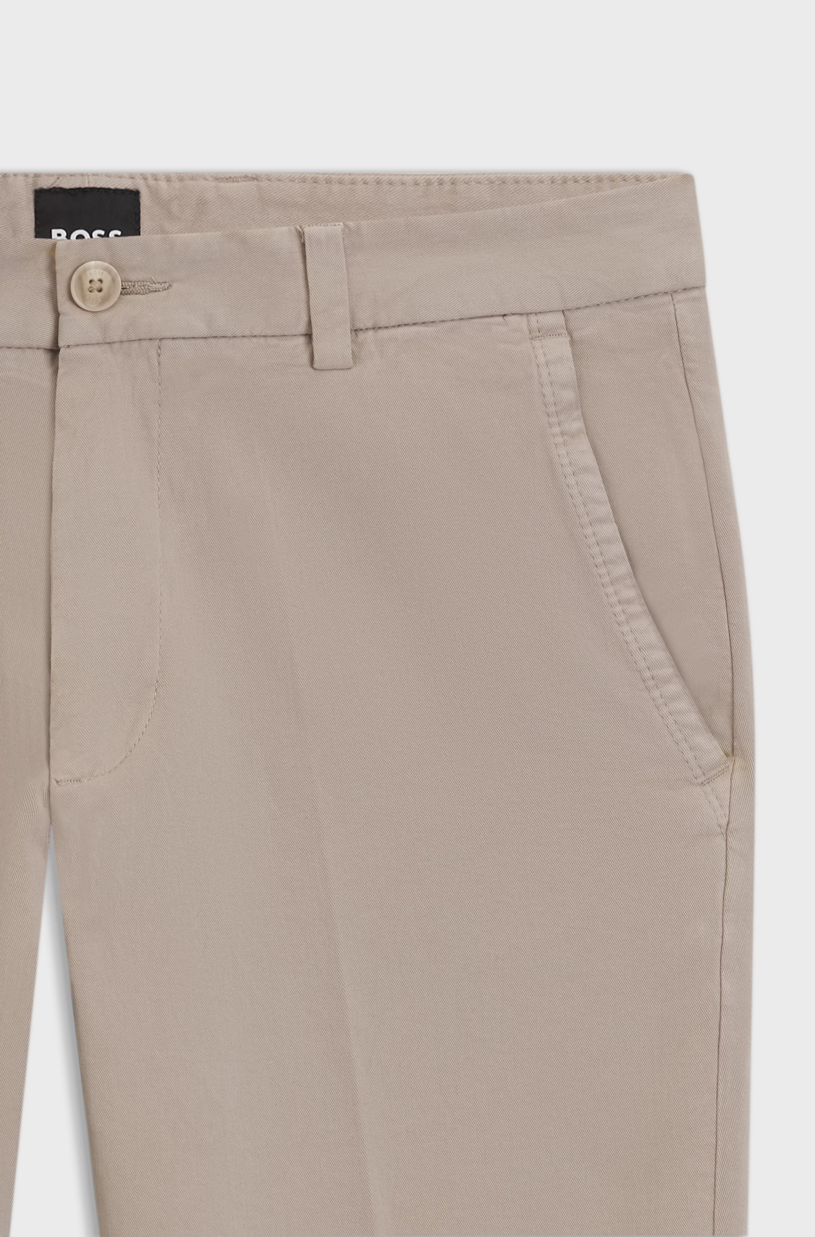Die BOSS Hose aus Baumwoll-Twill mit Elasthan-Anteil und sanft gebürstetem Finish ist ein tolles Piece für Casual-Looks. Zeitgemäße schmale Passform.