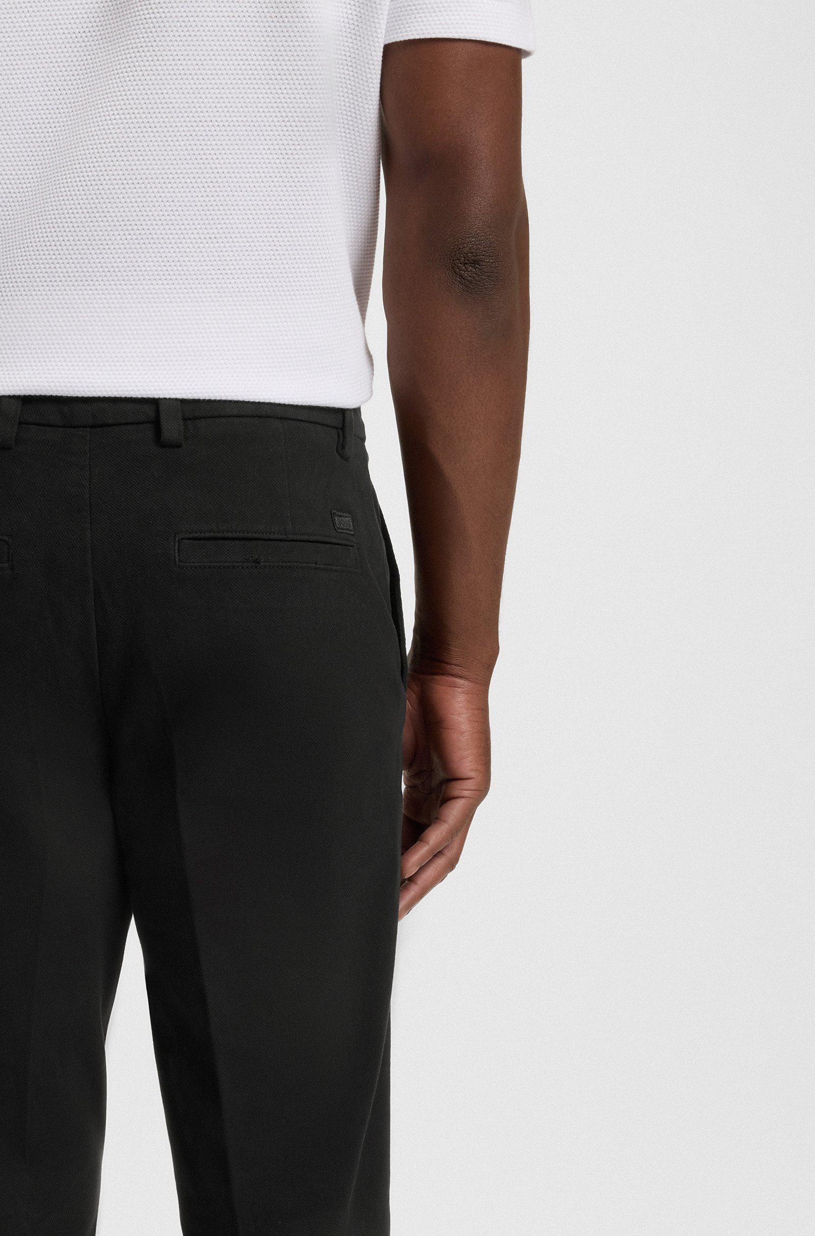 Die klassisch elegante BOSS Hose mit Vier-Wege-Stretch ist ein Must-have für Casual-Looks. Softer Baumwoll-Mix mit atmungsaktivem Finish. Schmale Passform.
